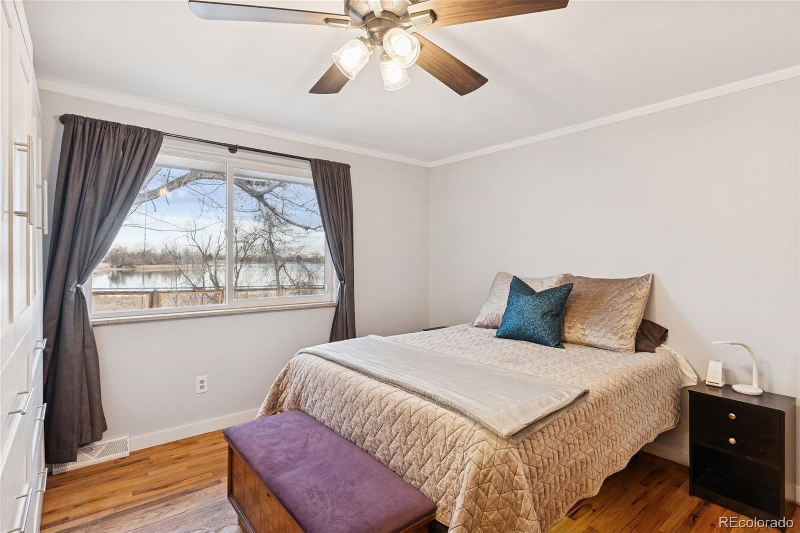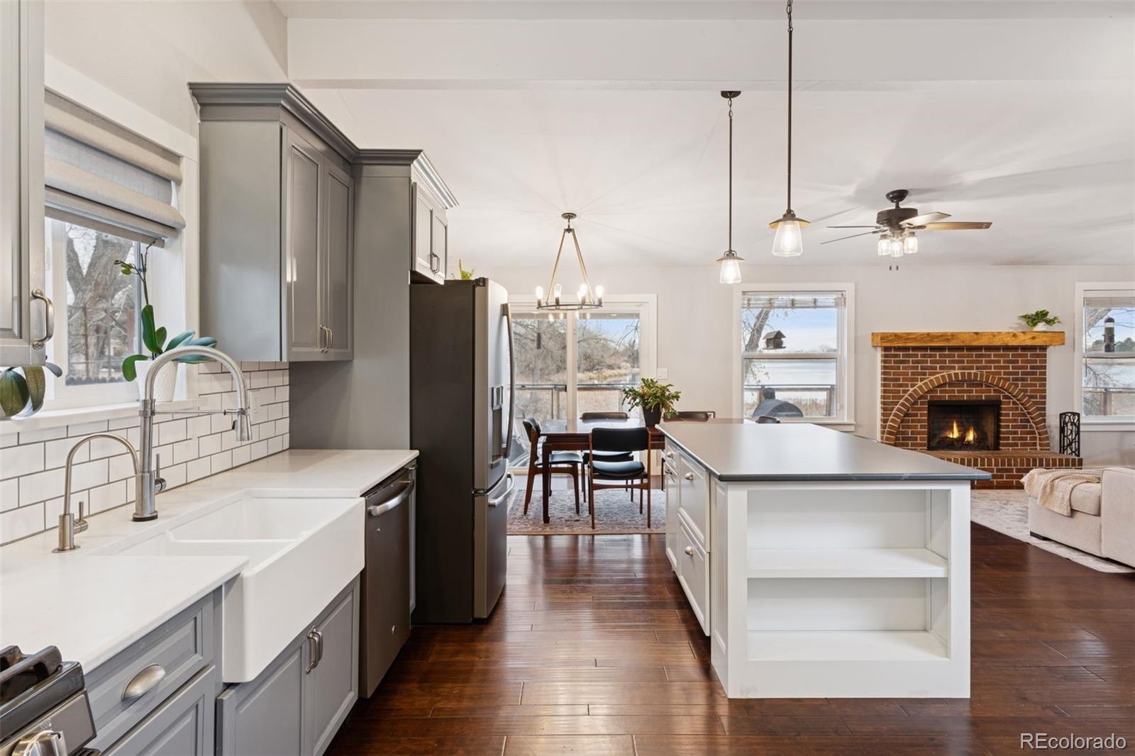 A rare opportunity to own true lakefront property, this exceptional Kendrick Lake residence offers direct access to the lake and one-mile path surrounding with sweeping water views. Enjoy fishing, walking, running, or biking year round directly out your back door. Inside, hardwood floors lead to a fully remodeled kitchen appointed with sueded quartz countertops, stainless steel appliances and custom, soft-close cabinetry, thoughtfully designed to maximize storage and functionality. Counter seating invites connection, while a cozy wood-burning fireplace anchors the living space. Wake up to unobstructed lake views from the primary suite which also features a beautifully renovated bathroom with a large, step-in Roman style double shower and dual vanities. The main level is complemented by two additional bedrooms both with oversized windows and updated full bathroom. The versatile basement includes another wood-burning fireplace, an egress window and private full bath, ideal as a guest suite, secondary primary bedroom or expansive recreation room. Outdoors, a fully fenced backyard with a custom see-through fence preserves uninterrupted lake views for truly spectacular sunsets, alongside a patio and sprinkler system. Homes in this prime waterfront position seldom become available, making this offering especially distinctive within the Denver metro area with no community HOA. Conveniently located within minutes of plentiful shopping and dining options at Belmar along with quick access to 6th Avenue for direct access to Denver within 15 minutes. OPEN HOUSE: SUNDAY 2/22, 12PM - 2PM. Watch virtual tour: https://youtu.be/14PkI5KC0Zk