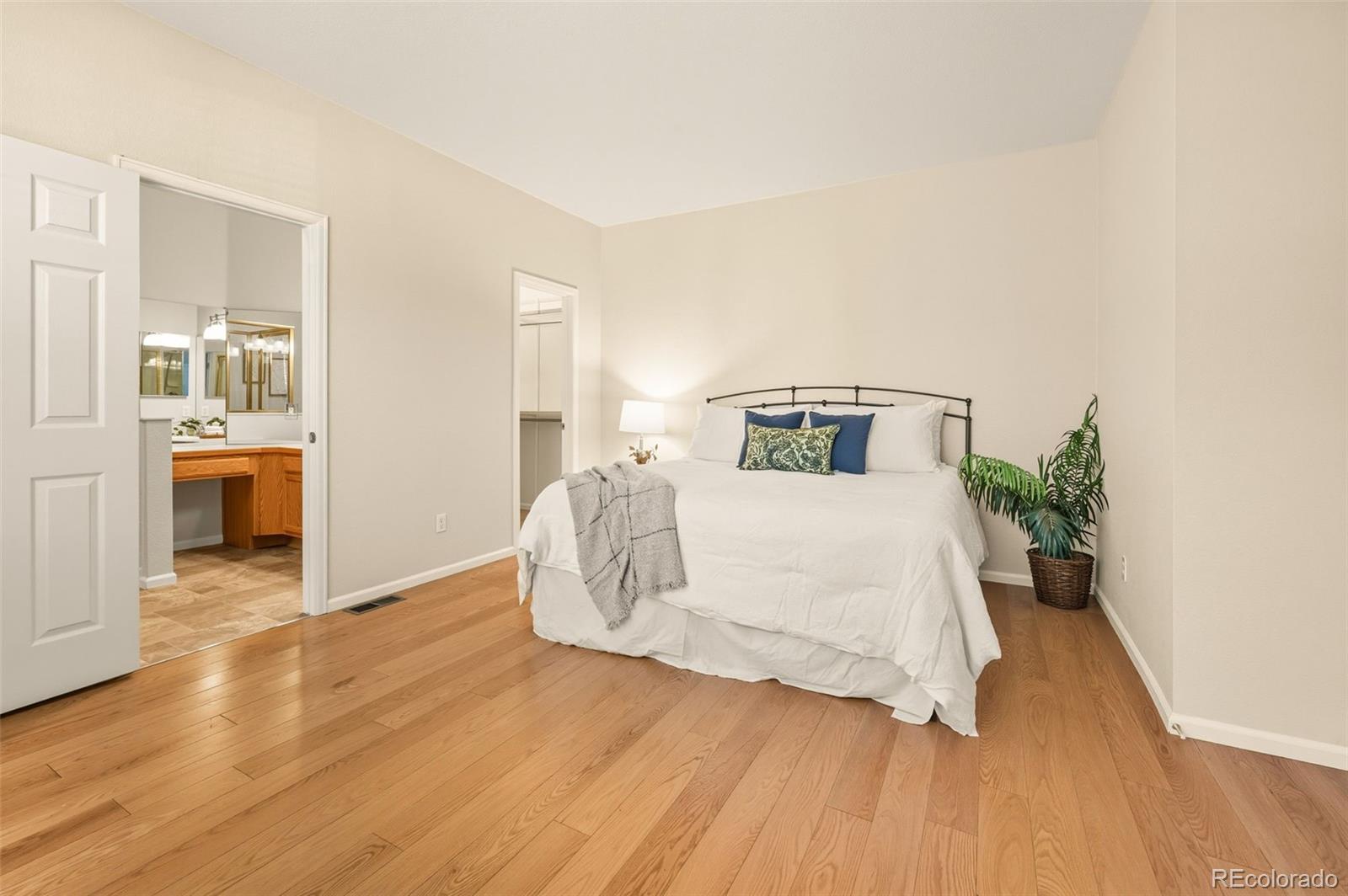 One of the best properties to hit the market in Northpark! This Rare Ranch-Style End-Unit Townhome offers 2 main-floor master suites, a spacious loft, and a professionally finished basement. Lovingly maintained, this home features gleaming hardwood floors throughout most of the main level. The inviting living room is filled with natural light from numerous windows and includes a cozy gas fireplace—perfect for chilly Colorado evenings. The beautifully updated kitchen boasts brand-new white quartz countertops, a new gas stove, side-by-side refrigerator, new sink and faucet, and abundant cupboard space. Step right out to your own private patio to enjoy your morning coffee. Upstairs, the versatile loft and half bath are ideal for a home office or quiet retreat. The professionally finished basement offers endless possibilities—gym, craft room, guest suite, or second office—plus a huge unfinished storage room and 2 crawl spaces for even more storage. Additional features include a custom closet organizers in both walk in closets, main floor laundry conveniently located off the garage, 2-car attached garage with opener, central air conditioning, and a radon mitigation system. As a resident, you’ll also enjoy community amenities including a pool, tennis courts, and park—all while being conveniently close to shopping and dining. This rare gem won’t last long!