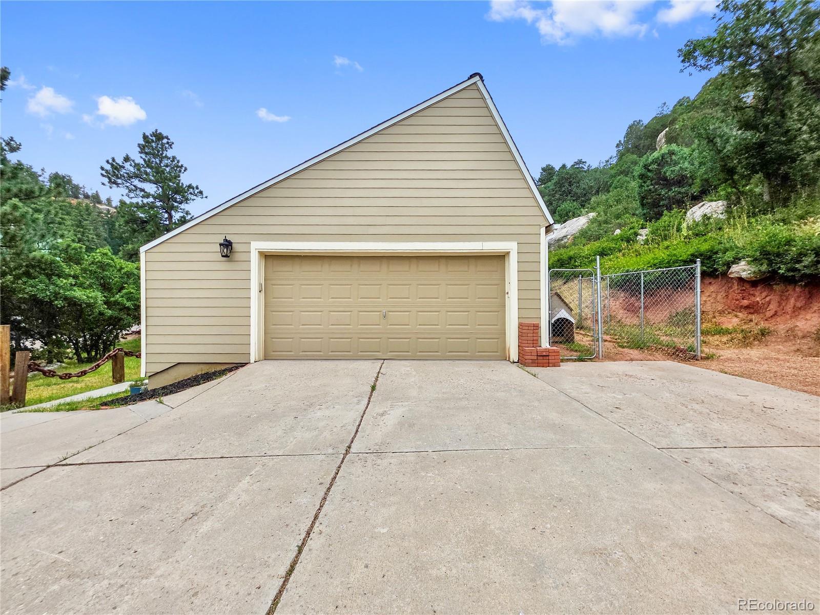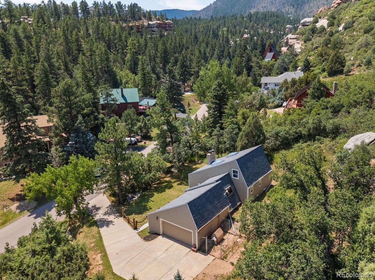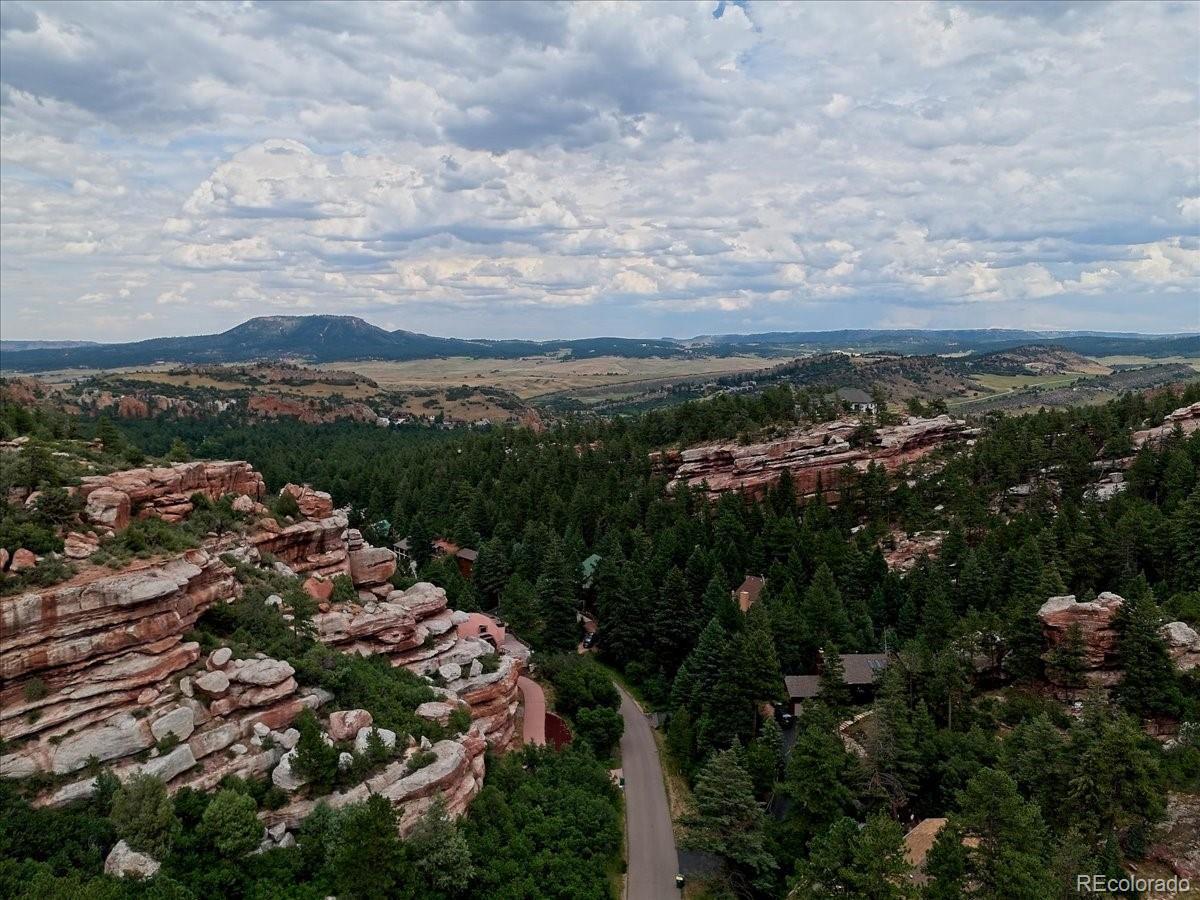 Experience nature entwined with architectural charm in this elegant 3-bedroom, 4-bath home nestled on one of the most unique cul-de-sacs of Perry Park – a historic sanctuary with endless walking trails. Gracefully set on an acre, the property backs onto Pike National Forest, treasured red rocks, pristine woods, and steps away from multiple trailheads. The multi-ton anchor chain fence, a unique attribute straight from the Seattle docks, cements this home's uniqueness in a compelling landscape. Two master bedroom suites, each with its own plush bathroom and walk-in closets, seamlessly open onto alluring ground-level patios, oozing easy indoor-outdoor living. The family room, a comforting sanctuary with an inviting wood-burning fireplace, is met harmoniously by an upper-level, airy living/great room, complete with vaulted ceilings, skylights and another beautifully tiled fireplace. The kitchen becomes the heart of this home, boasting a large island, sleek granite countertops, a walk-in pantry, new soft-close cabinets, polished ceramic tile flooring, and modern stainless-steel appliances. This newly painted home boasts vibrant architectural energy, complete with custom cable banisters and a grand loft for extra versatility, while fur babies are pampered with a fully enclosed chain link dog run. This serene residence strikes the perfect balance between tranquil living and the convenience of the nearby award-winning Perry Park Country Club, attracting the neighbors in their golf carts. The mesh of nature's echo and the cozy allure of two master suites with walk-in closets and the warmth of two fireplaces capture the quintessential Colorado lifestyle. Don't miss this hidden gem! Check out a video at the link below! https://elitedroneoptics.hd.pics/7085-Kiowa-Rd-1