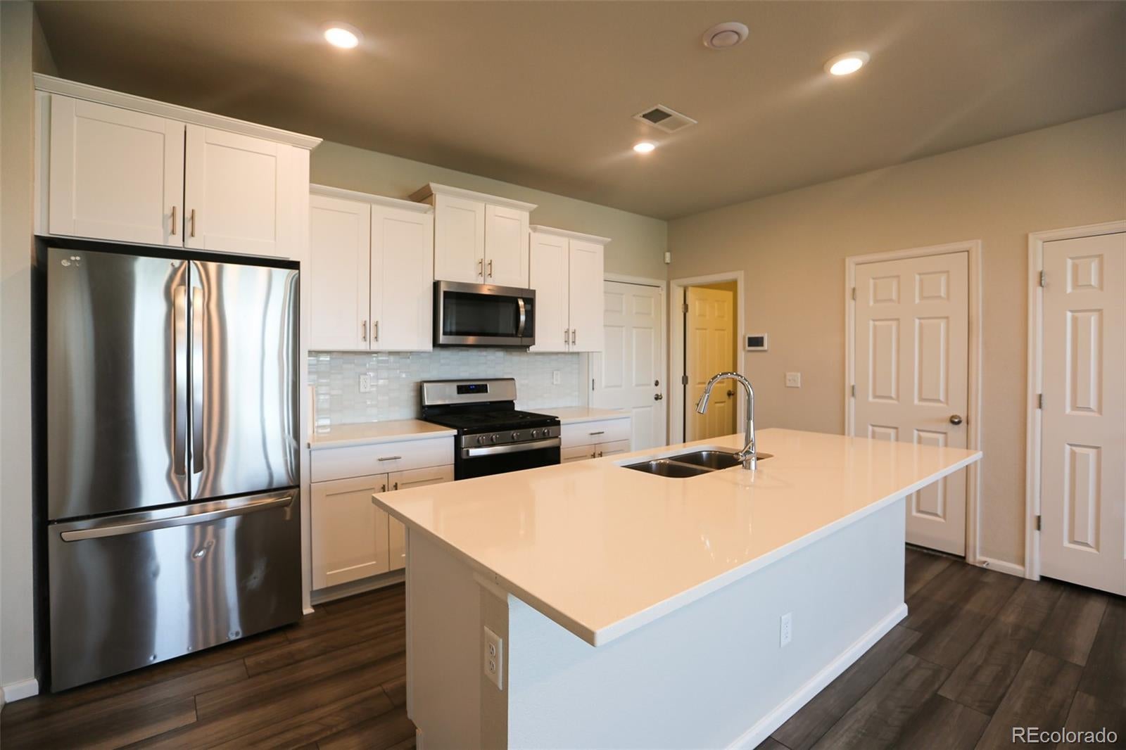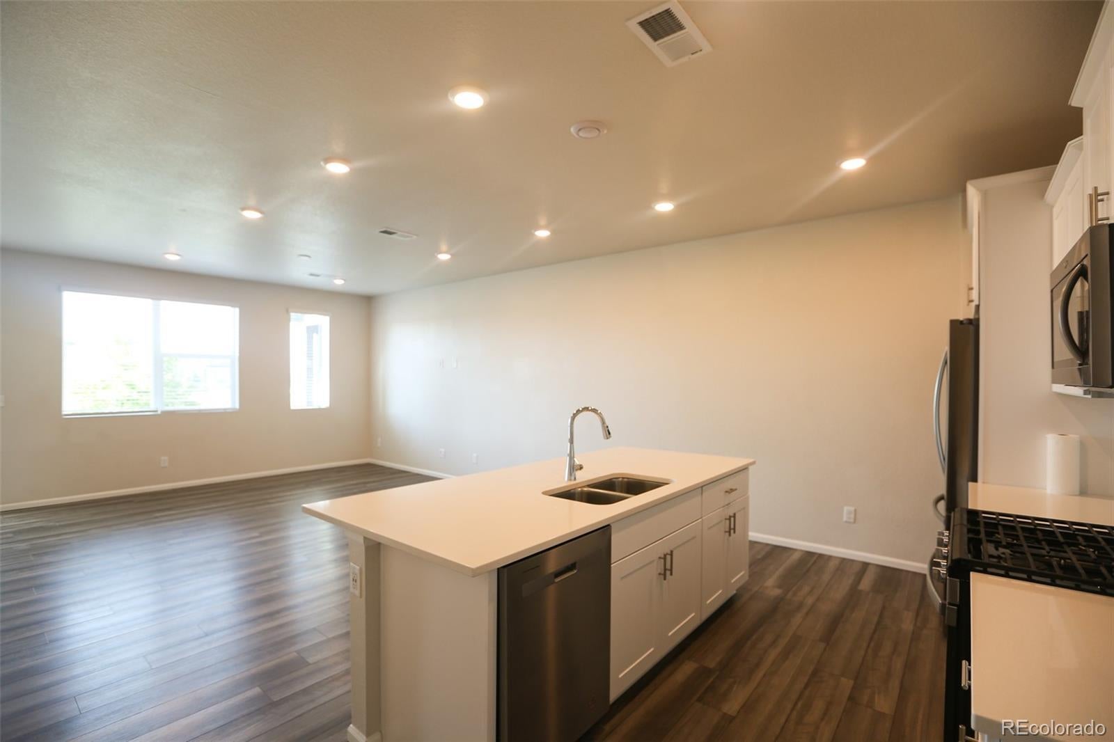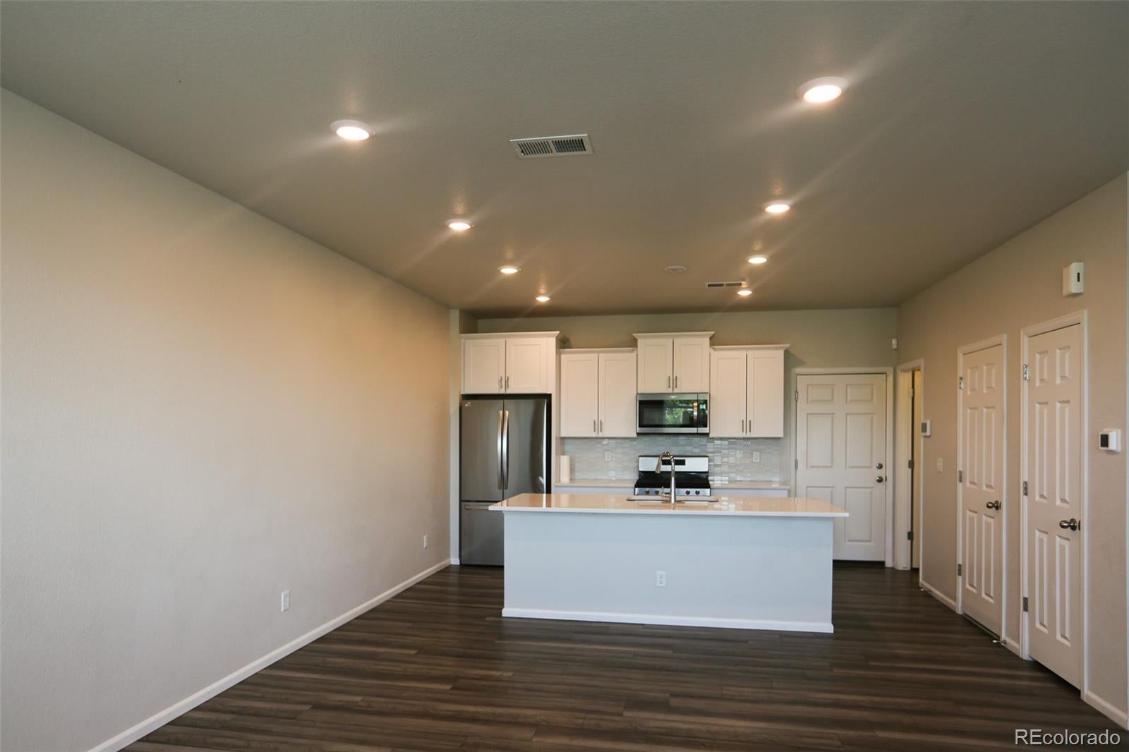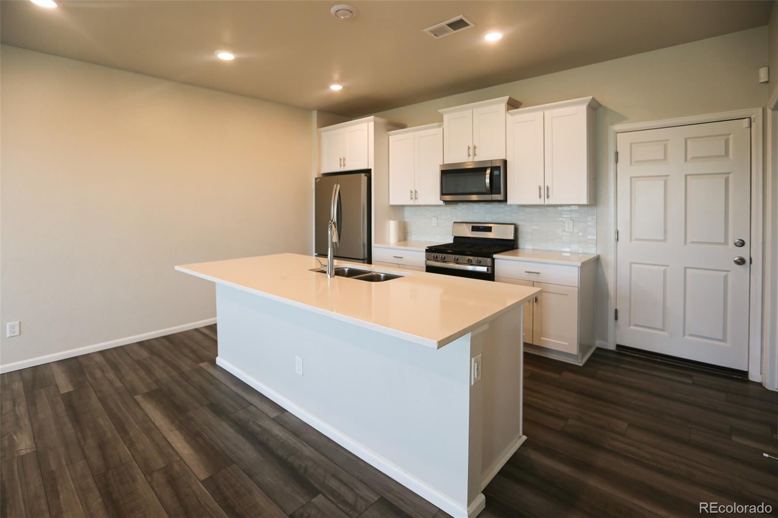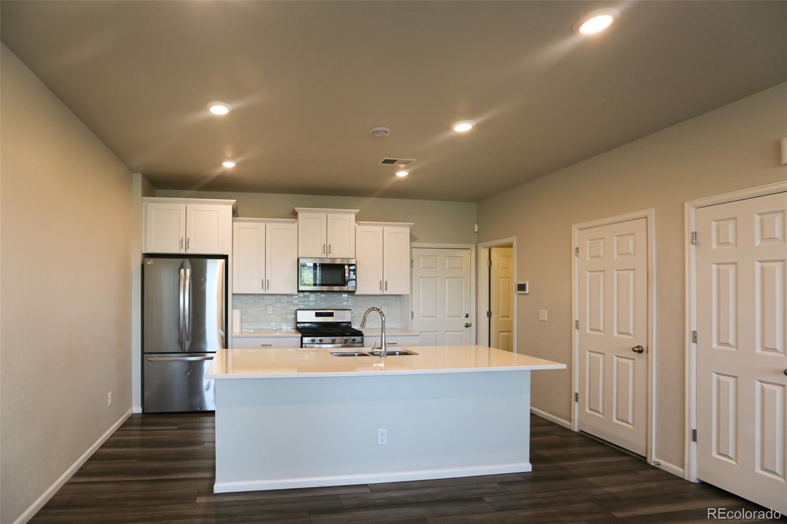 Discover the perfect blend of style and convenience in this updated, 3-bedroom, 3-bathroom townhome in Painted Prairie. The open-concept floor plan connects the spacious living area to the updated kitchen, which features stainless steel appliances and quartz countertops. New carpets and a sun-filled primary bedroom overlooking a green space, perfect for outdoor retreat, add to the appeal. Two additional bedrooms and a full bathroom offer ample space for family or guests. Perfectly situated next to open space, this home is moments from Denver International Airport, the Gaylord Rockies Resort, and the upcoming Future Town Center. This is an unbeatable opportunity for modern comfort and accessibility.