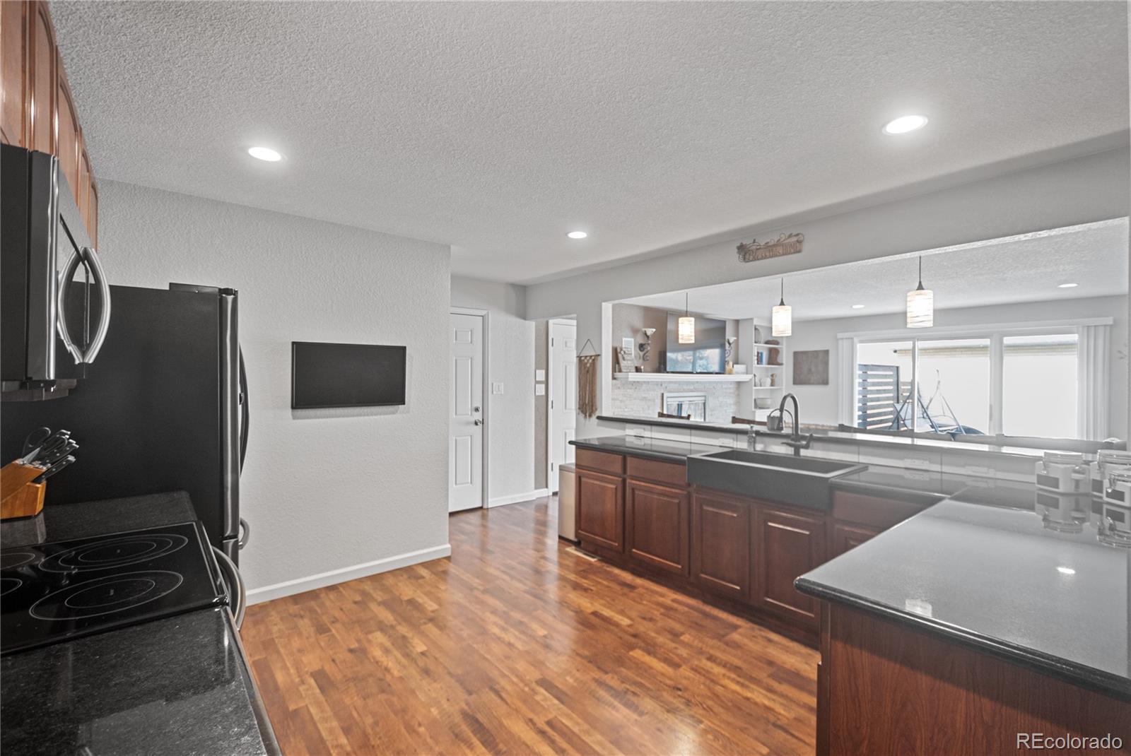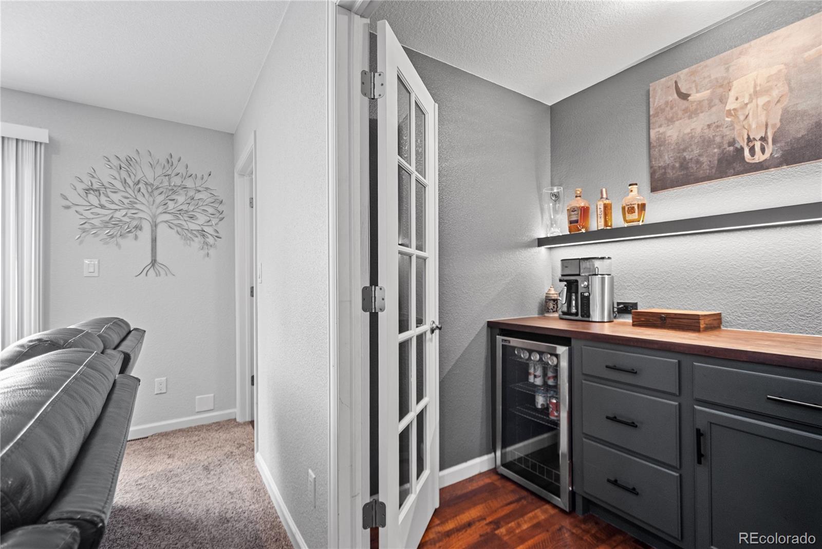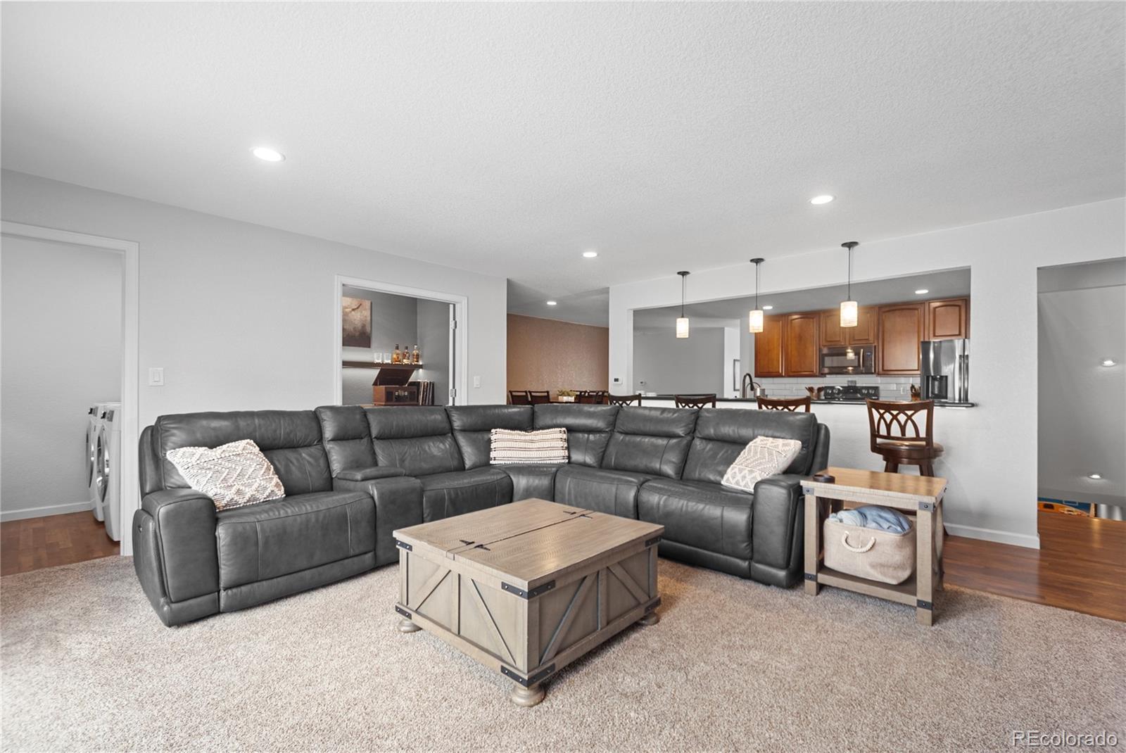 Welcome to this beautifully remodeled ranch-style home in Littleton, Colorado, where thoughtful design, modern upgrades, and everyday livability come together seamlessly. From the moment you enter, the open and intuitive layout feels both welcoming and functional. The home offers five total bedrooms, including three on the main level and two non-conforming bedrooms in the finished basement, providing exceptional flexibility for guests, home offices, or additional living space. The main-floor primary suite serves as a private retreat, complete with a walk-in closet and a well-appointed bathroom featuring dual sinks. At the heart of the home, the open-concept kitchen and living area is ideal for both daily living and entertaining. A gas fireplace adds warmth and ambiance, while a custom wine or bar area creates a natural gathering space. Just off the entry, a separate living room offers a cozy setting for quiet moments or conversation. The finished basement expands the living space further with a generous secondary living area, perfect for movie nights, game days, or hosting visitors. Situated on a 0.21-acre lot, the outdoor spaces are equally impressive. Front landscaping is enhanced with accent lighting and a drip irrigation system for ease of maintenance, while the backyard is designed for comfort and entertaining with a rear patio featuring misters for warm Colorado days. Inside and out, the home is elevated by a customizable Lutron lighting system, allowing you to tailor the ambiance to your lifestyle. Additional highlights include a single-car attached garage plus a detached 2.5-car garage, offering abundant space for storage, hobbies, or recreational vehicles. Ideally located near parks, trails, shopping, dining, and major commuter routes, this home delivers a lifestyle that is both comfortable and well-connected.