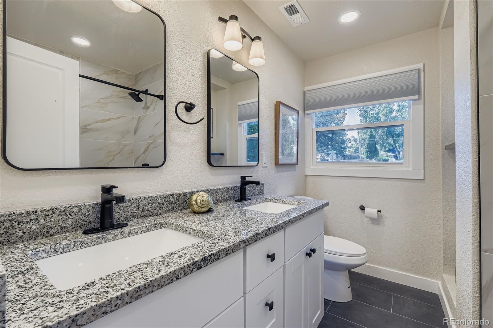 **Huge Price Adjustment!** Don't miss this beautifully renovated 1,800+ square-foot home that blends timeless charm with modern style. Every inch has been updated, giving you a move-in-ready home that looks and feels brand new. Step inside to a bright, open floor plan with fresh drywall and paint, new flooring, and energy-efficient windows that flood the space with natural light. The spacious living room flows into an upgraded kitchen featuring stone counters, tons of soft-close cabinetry on four walls, and brand-new stainless-steel appliances. A large counter doubles as extra prep space and casual seating, perfect for hosting and gatherings. Behind the kitchen lies an expansive family room with gas fireplace and vaulted ceiling, ready for entertaining or relaxing. The home offers five ample bedrooms (three conforming plus two non-conforming), with four on the main floor and one very large non conforming suite or bonus room in the basement. Each bedroom has dedicated closet space and new lighting fixtures. The main floor bathroom includes a double vanity and beautiful tub/shower with contemporary tile work. The second bathroom in the basement suite is equally stunning, fully redone with modern finishes. Enjoy a dedicated laundry room for everyday convenience. The remodel also includes updated electrical, plumbing, and insulation, giving you peace of mind for years to come. Outside, you’ll find a freshly landscaped (xeriscaped) yard ready for your creative touches. The covered front porch provides a welcoming spot to relax, while the fenced backyard with handy alley access offers plenty of room for outdoor entertaining or a future garden. A wide driveway and carport offer convenient off-street and covered parking. Located in a quiet, well-established neighborhood, this property is minutes from local shopping near Southgate, restaurants, parks, and schools. Commuters will appreciate easy access to major routes including I25 just minutes away.