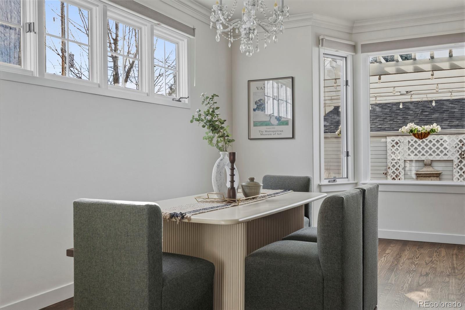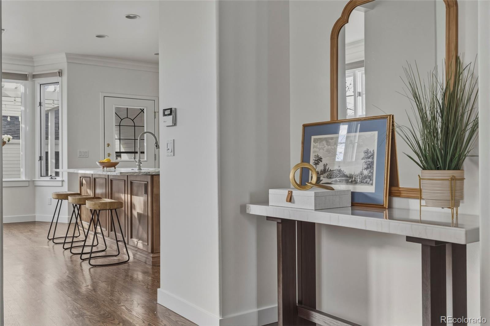 Welcome to an exceptional opportunity in Cherry Creek North — where refined design, thoughtful upgrades, and an enviable location converge. This meticulously maintained 3 bedroom, 4 bathroom townhome spans over 3000 sq ft and offers a versatile layout designed to accommodate both daily living as well as casual or formal entertaining. The main level features beautiful hardwood flooring and a large living space filled with natural light. A gas fireplace anchors the room, adding warmth and character, while a built-in sound system enhances the atmosphere. Designed for both function and style, the kitchen offers a generous island with counter seating, under cabinet lighting, and Thermador appliances. The dry bar adds a refined touch to the dining space. Upstairs, the primary suite features vaulted ceilings, a five-piece ensuite bath with soaking tub, a spacious walk-in closet, and two additional closet spaces for additional storage. The second bedroom also features vaulted ceilings with wood beams and includes its own ensuite bathroom. Outdoors, the secluded patio is a private extension of the home’s living space, thoughtfully designed for both relaxation and entertaining. Enjoy the tranquil water feature and the added privacy of a newly installed fence, creating a peaceful retreat in the city. A detached 2-car garage offers ample space for vehicles and additional storage. The finished lower level provides versatility, offering a generous secondary living space, a third bedroom, an additional bathroom, laundry room, and abundant storage. With close proximity to Cherry Creek North’s incredible shopping, galleries, dining, and coffee shops, this home provides the best of urban living with comfort, privacy, and timeless appeal in one of Denver’s most sought-after neighborhoods.