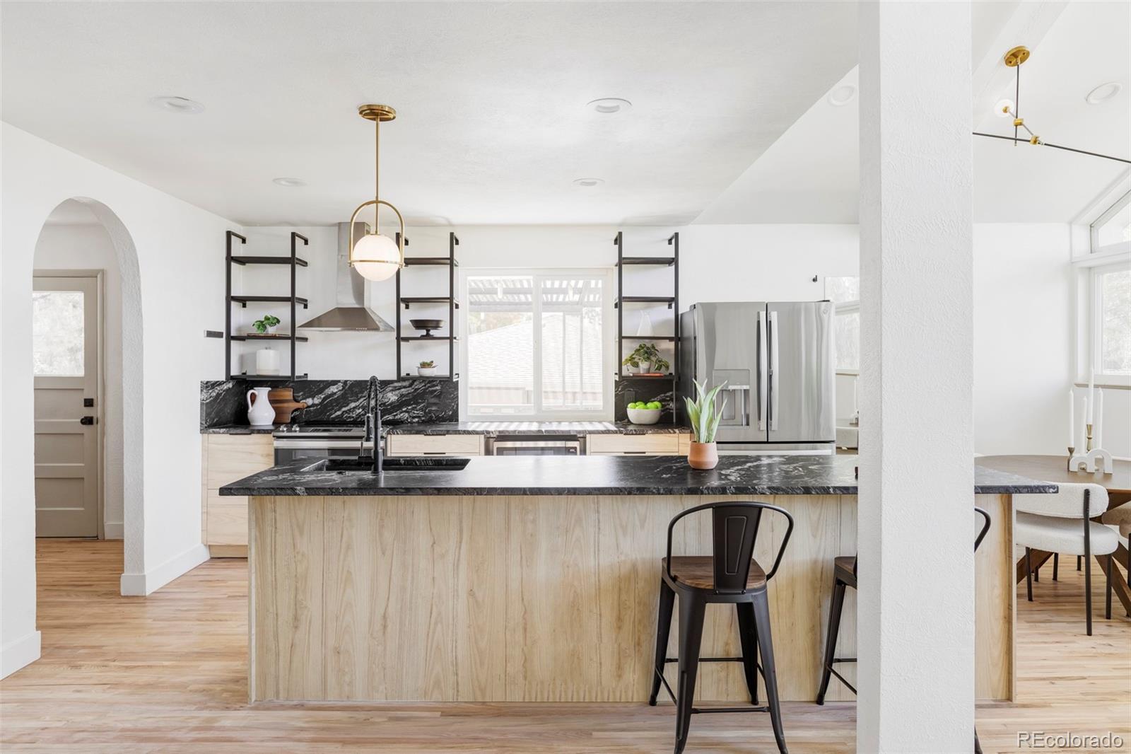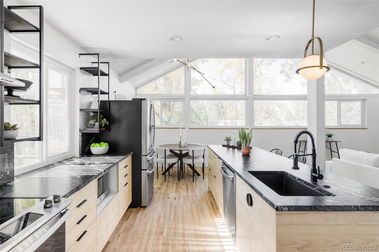 With exceptional potential for multi-generational living or rental income, this versatile Eastridge home merges style with opportunity. Thoughtfully updated, the main level showcases an open-concept layout with a bright living area, dining space, and modern kitchen featuring a butler’s pantry and laundry. Vaulted ceilings and a wall of windows infuse the home with natural light, creating a stunning, airy atmosphere. The main floor hosts a true primary suite with a private bathroom and two additional bedrooms, while the lower level includes its own kitchen, living room, three bedrooms, full bath and laundry — ideal for guests, extended family, or short-term rental opportunities. Connected by an attached garage, the home sits on a generous lot with a spacious backyard and patio for outdoor enjoyment. Perfectly positioned near Cherry Creek Reservoir and the Denver Tech Center, this property balances modern comfort, flexible living and investment opportunity — all in one inviting home.