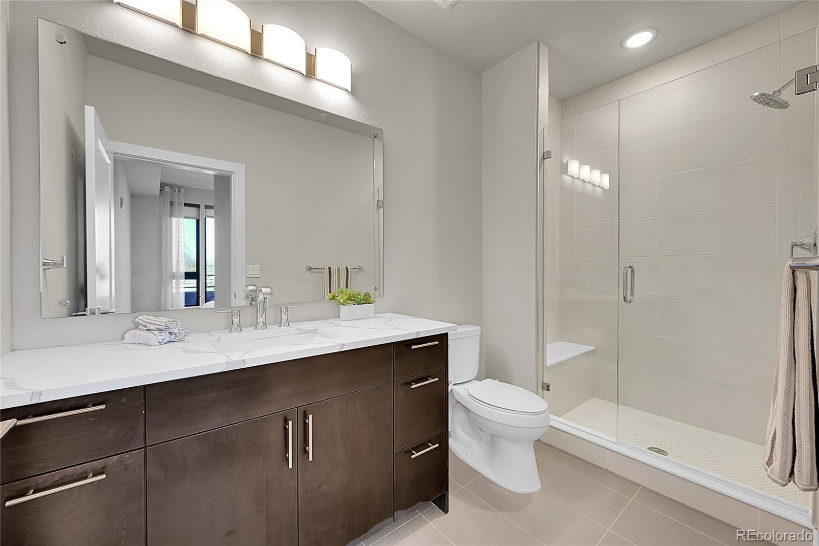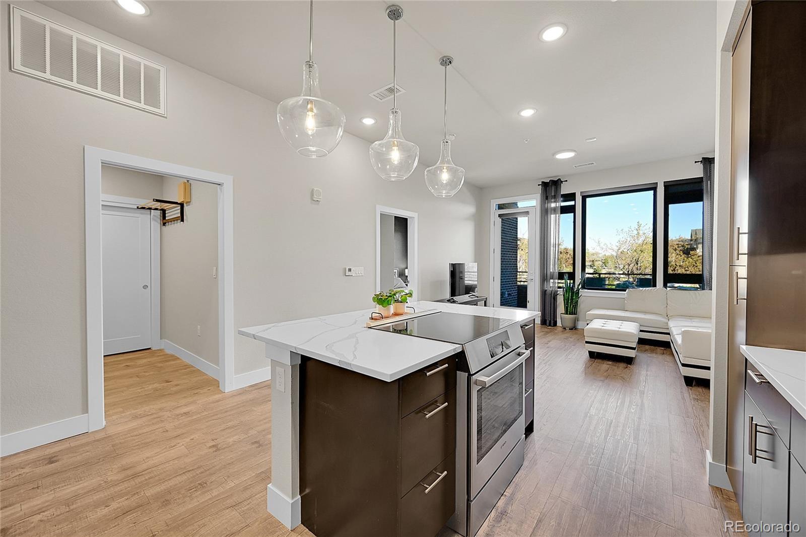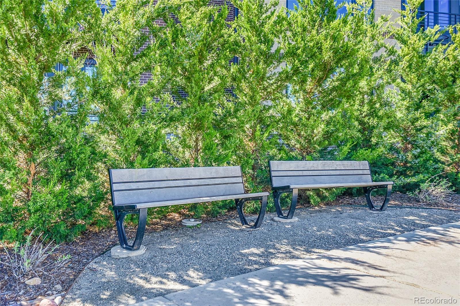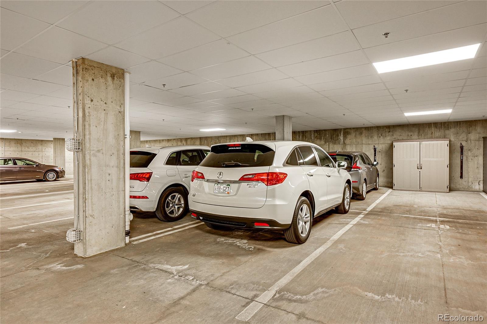 Luxury Condominium in Denver's Lowry neighborhood with an open floor layout and numerous upgrades! This is a great opportunity for a low maintenance living. Previously a builder's model, this home has all the bells and whistles! 10' ceilings and floor to ceiling windows allow maximum natural light exposure and create the perfect space you can call home. Upgraded Espresso kitchen includes thoughtful storage and sleek finishes. Bosch gourmet appliance package with induction and convection cooking, soft close cabinets, 14" deep upper cabinets & deep drawer and pantry storage, quartz countertops and modern style tile backsplash! Private primary suite includes an accent wall, luxury bath finishes and large walk-in closet. Spacious flex room can be used as an office, a flex space or a non-conforming bedroom. This room features built-ins for the office and a hide-a-way bed so you have options to choose from! Endless upgrades also include decorative curtains, window coverings and built-in shelving/storage in the laundry room! Enjoy quick and easy access to your 2-car underground garage parking and storage space! EV charges available in the garage. Your front door is just couple steps away from the main entrance and the elevator to the garage and storage space. Enjoy your spacious covered patio looking out to the beautiful private park with art galore! Such as beautiful and peaceful space for taking a walk or a cozy read outside! The building has secure entrance and is just steps to Crestmoor Park to the West and new Boulevard Shops and restaurants to the East, so much within walking distance to enjoy! Additionally, drive just 3 mins to Lowry Town Center with a mix of eateries, cafes, retails stores and shops, under 10 mins to Cherry Creek Shopping Center and within 30 mins to DIA. This home is a true gem! Welcome Home!