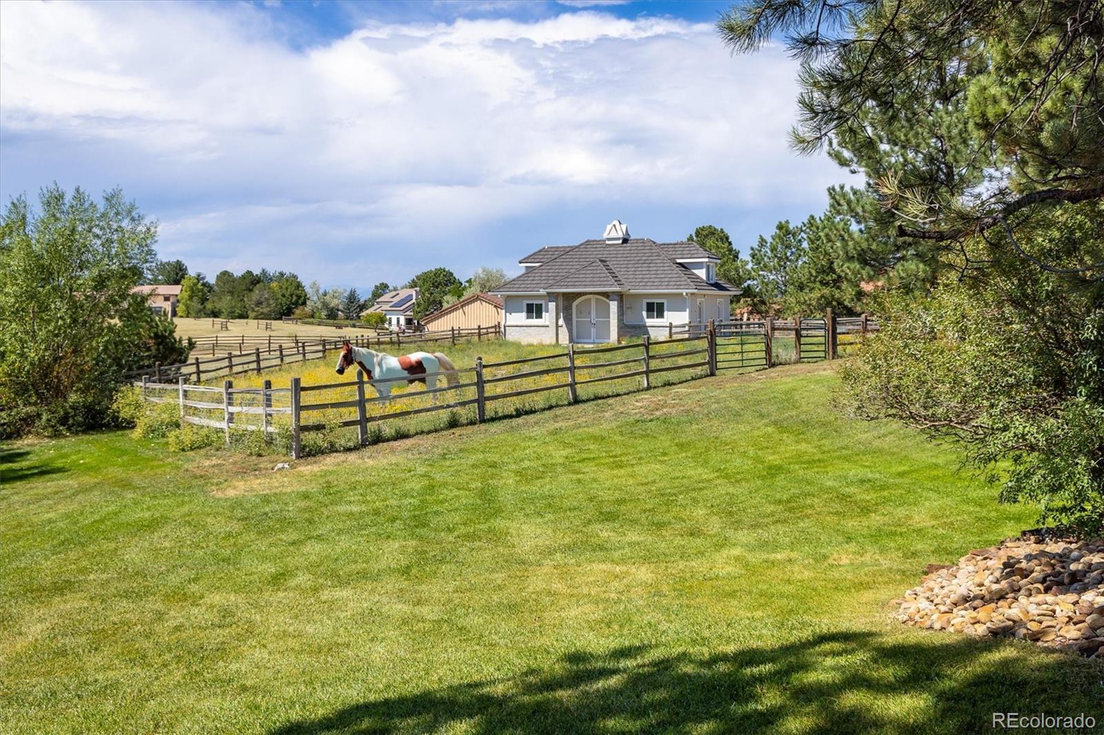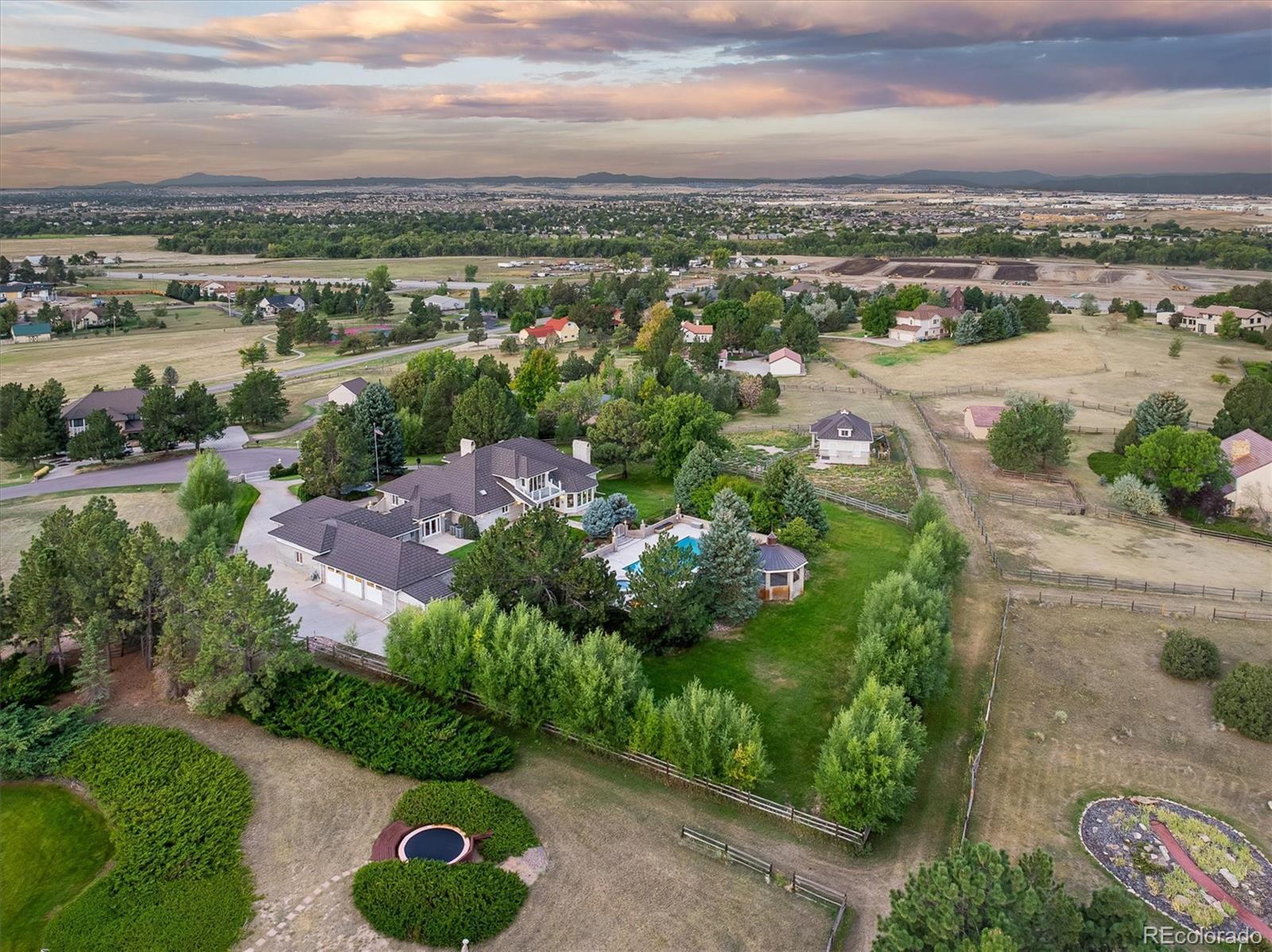 Discover luxury living in Centennial’s exclusive Chenango community at 17575 E Kettle Place. This custom-built 6-bedroom, 5-bathroom estate perfectly blends privacy, mountain views and high-end design. Nestled on acreage with a gated driveway on a quiet cul-de-sac, this property captures breathtaking panoramic views of the Colorado Rockies from Long’s Peak to Pikes Peak. The gourmet kitchen is a chef’s dream, featuring Viking, Sub-Zero, and Wolf appliances, Crystal Cabinetry, and generous prep and storage space. Entertain in style in the formal dining room, vaulted great room, and sunroom designed for year-round enjoyment. The Architectural Digest-worthy Primary Suite showcases a nano glass wall, two private decks, coffee bar, custom walk-in closets, and a spa-inspired bath with a Carrera Italian marble soaking tub and steam shower. The finished walkout basement includes a custom bar, media area, steam shower, and ample room for gatherings. Car enthusiasts will appreciate the 9-car garage with 2 lifts, while equestrians will love the barn with wash bay, heated tack room and room for your horses to roam. Step outside to your private resort-style oasis complete with a heated pool, hot tub, built-in outdoor grill, smoker, fire pit with plenty of space to gather around, and a copper-roof gazebo. Perfect for entertaining or relaxing under Colorado’s blue skies. No need to travel to a resort when you have your very own right at home. Major updates include new HVAC, windows, reverse osmosis system, a $500,000 new roof, and a state-of-the-art security system. Conveniently located near Centennial Airport, E-470, downtown Parker, DTC, shopping, and dining, this home delivers both luxury and accessibility. Experience the best of Colorado luxury living, schedule your private showing today to see this Chenango estate now offered at $2.9 million.