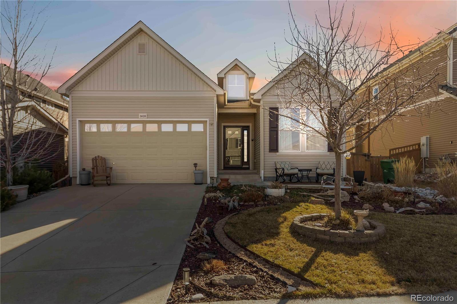 Discover effortless single-level living in this beautifully maintained Castle Rock home on Sky Church Drive, perfectly designed for low-maintenance Colorado living. This inviting residence features an open-concept great room with abundant natural light, designer-inspired neutral paint, and stylish flooring that creates a warm, cohesive feel from the front door to the back patio. A generously sized main-floor primary suite, convenient guest bedroom and bath, and easy garage-to-kitchen access make everyday living simple, accessible, and functional. The bright kitchen offers ample cabinet storage, solid countertops, and a spacious dining area ideal for casual meals or entertaining friends and family. Thoughtful decorator touches—updated lighting, modern hardware, and clean, uncluttered lines—give the home a fresh, move-in-ready feel buyers are seeking in today’s market. Large windows frame neighborhood views and bring in natural light year-round, while the open layout allows flexible furniture arrangements for work-from-home, relaxation, or hosting. Outside, enjoy a small, low-maintenance yard that’s perfect for a lock-and-leave lifestyle, complete with a cozy patio space for morning coffee or evening sunsets. With minimal exterior upkeep required, you can spend more time exploring nearby trails, parks, and Castle Rock amenities instead of doing yard work. This home is ideal for downsizers, first-time buyers, or anyone wanting a smaller, easy-care home without sacrificing comfort, style, or modern convenience. Schedule your showing and experience low-maintenance, single-level living in one of Castle Rock’s most desirable areas.
