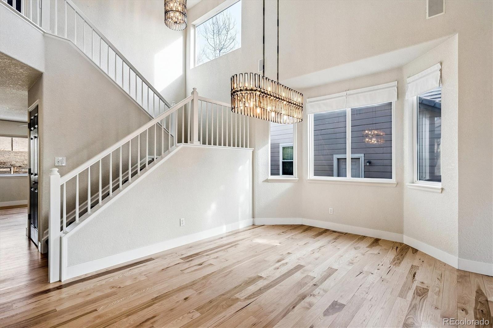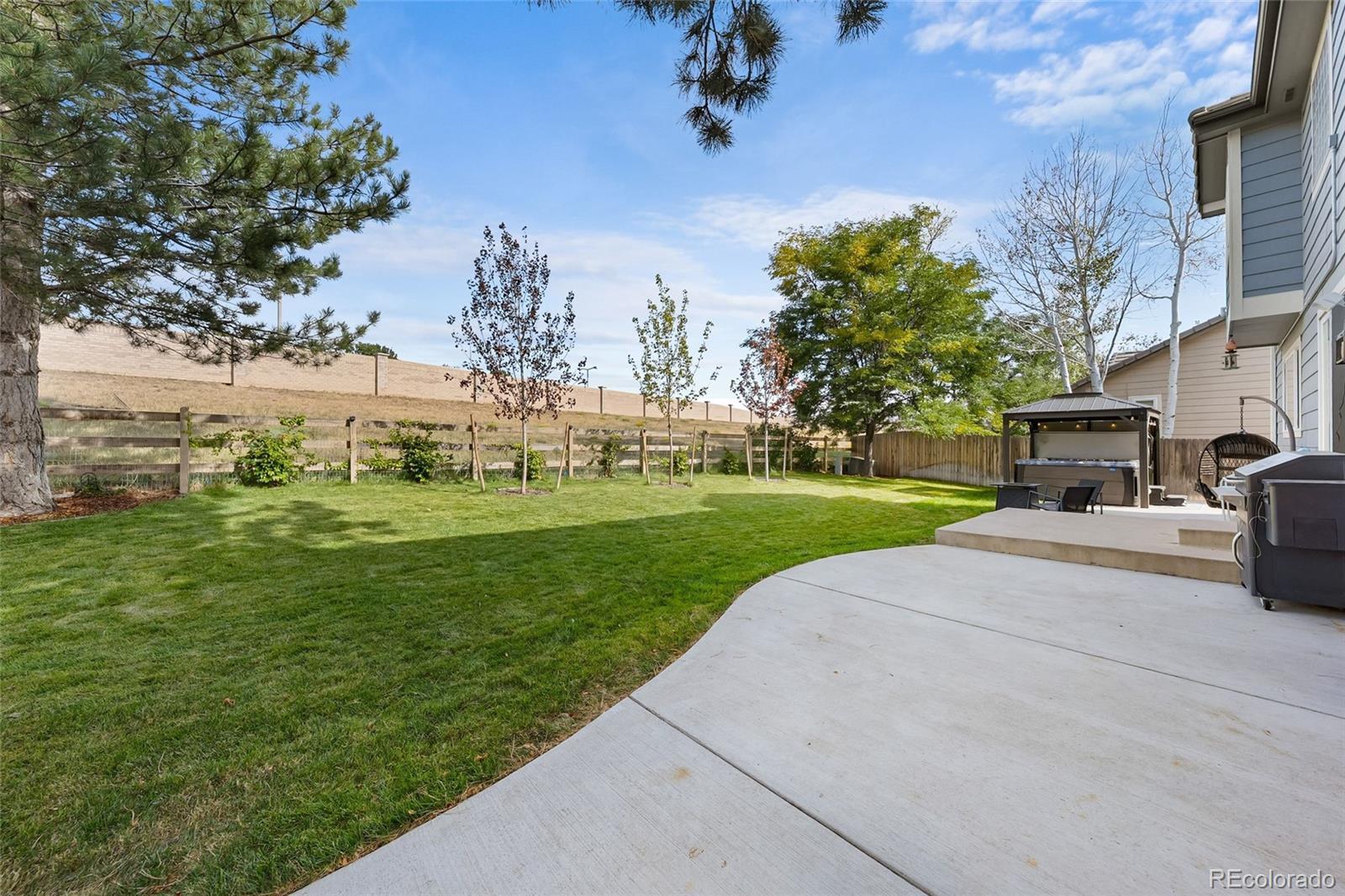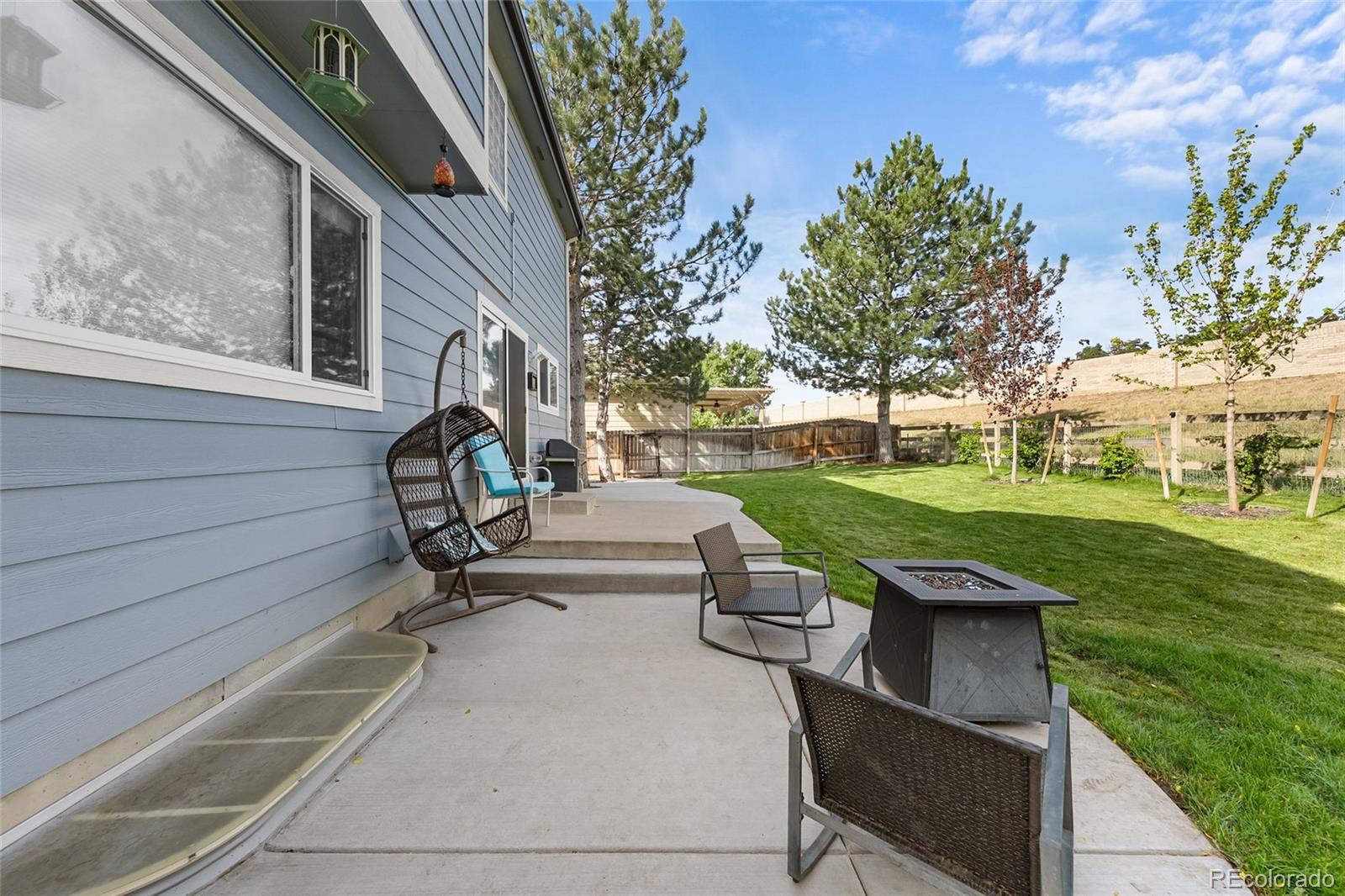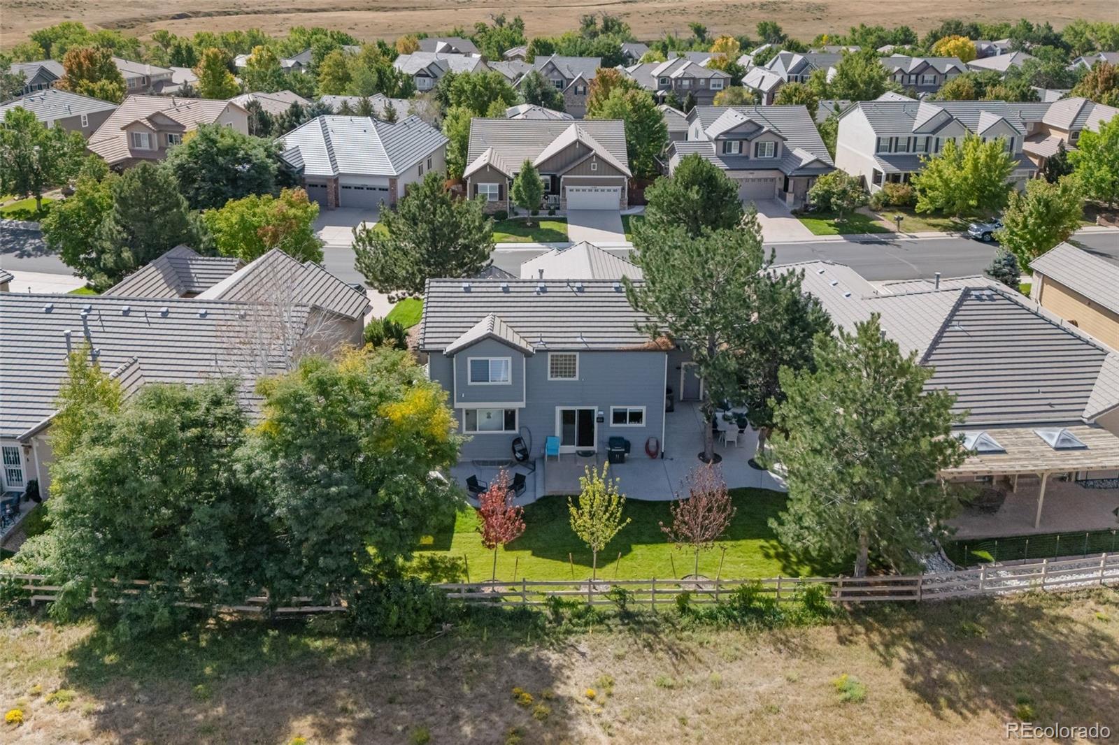 Discover the ultimate move-in ready home abundantly updated for effortless modern living in prime location backing to open space. Fresh natural pine hardwoods flow throughout the bright, open layout adorned with Arhaus lighting and LED smart technology. The spacious living & dining flow seamlessly into the family room with a cozy gas fireplace and opens to the updated kitchen with quartz countertops, a premium induction range & appliances, and deep stainless sink. Enroute to the oversized 3-car garage with lighting and storage, you’ll find the updated half bath and convenient laundry with utility sink and cabinetry. Retreat to your private spa-like primary bathroom complete with a new luxurious dual-shower-head steam spa and elegant Restoration Hardware vanities and fixtures, in addition to the large walk-in closet. The expansive upstairs loft may serve as an office, craft, play or school area. Two bedrooms and a full bathroom complete the upstairs. The outdoor oasis is unbeatable—a large backyard backing to peaceful open space, framed by towering pine trees, a massive patio pre-wired for a hot tub, and a custom turf dog run with auto-waterer and retractable awning, vibrant new plantings including Crimson & Autumn Maples and climbing Boston Ivy along the fence. A solid low-maintenance house with a certified concrete tile roof, fresh exterior paint in 2025, new high-efficiency furnace, AC, tankless water heater, radon system, and more. Sophisticated touches shine through with custom light fixtures throughout, classic carriage lights, a charming lamppost, and dazzling JellyFish lighting across all front eaves for all-season display. Over $160k in recent updates! The practical unfinished basement provides endless storage and rough-ins ready for future expansion. Smart technology throughout house. Phenomenal location just minutes from I-25 and the best retail, dining, and entertainment in Lone Tree and Parker, the light rail station, and local trails & parks.
