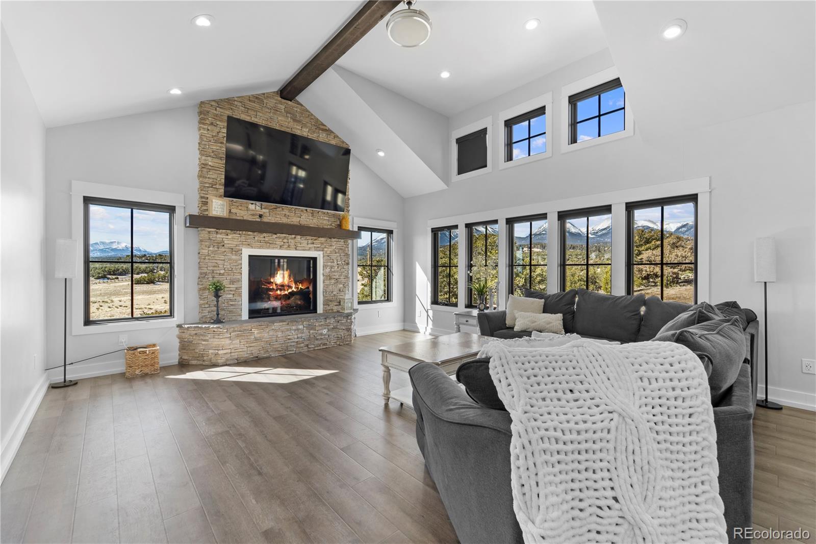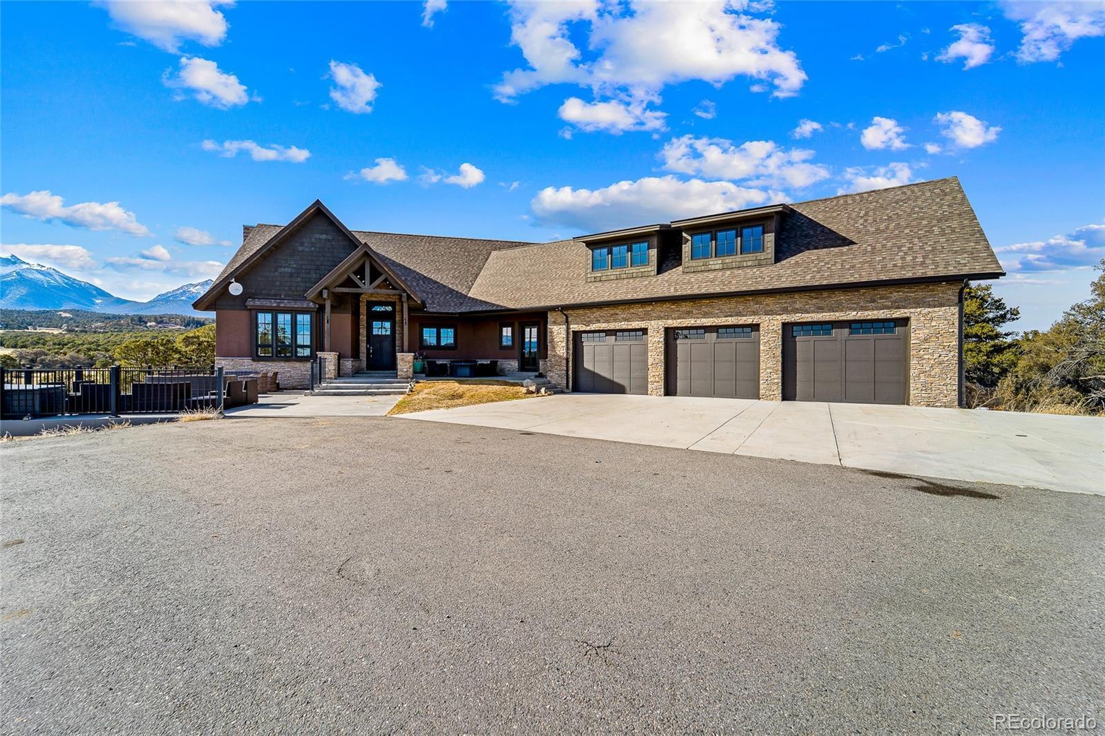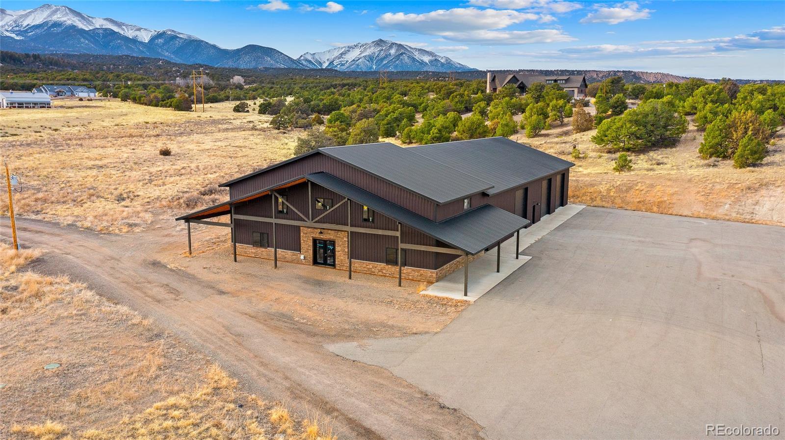 35 ACRES OF PURE PRIVACY & 360° ROCKY MOUNTAIN VIEWS – A ONE-OF-A-KIND COLORADO ESTATE. This 5-bedroom, 4-bathroom, 5,264 sq. ft. estate sits on 35 acres of breathtaking Colorado landscape, offering unmatched privacy, panoramic mountain views, and endless possibilities. The chef’s dream kitchen features custom countertops, high-end stainless steel appliances, an oversized island, and custom cabinetry, perfect for entertaining. The primary suite is a private oasis with a spa-inspired ensuite, soaking tub, walk-in shower, dual vanities, private deck access, and a custom walk-in closet designed for maximum organization and elegance. Three laundry units throughout the home provide exceptional convenience, and a dedicated dog washing station adds a thoughtful touch. The 8,000+ sq. ft. pole barn is fully equipped with plumbing and electrical, offering limitless potential to be converted into a barndominium for additional living space, a 15+ car garage, or workshop. The bonus pool house is equipped with brand-new appliances, cabinetry, and rough-ins for an additional bathroom, creating the perfect opportunity for a guest house or entertainment space. An expansive deck and covered patio provide the ultimate setting to enjoy unrivaled 360-degree Rocky Mountain views. The entire property is fully fenced, featuring two septic systems and a well, ensuring self-sufficiency and flexibility for expansion. The oversized attached garage and detached workshop offer ample storage for vehicles, outdoor gear, or creative projects. Located in Highland Estates, this home delivers the perfect blend of privacy and accessibility, just minutes from world-class skiing, fly fishing, hiking, biking, and downtown Salida’s fine dining, art scene, and boutique shopping. Whether you are looking for a private luxury estate, a multi-functional investment, or an unparalleled Colorado retreat, this property offers endless possibilities.