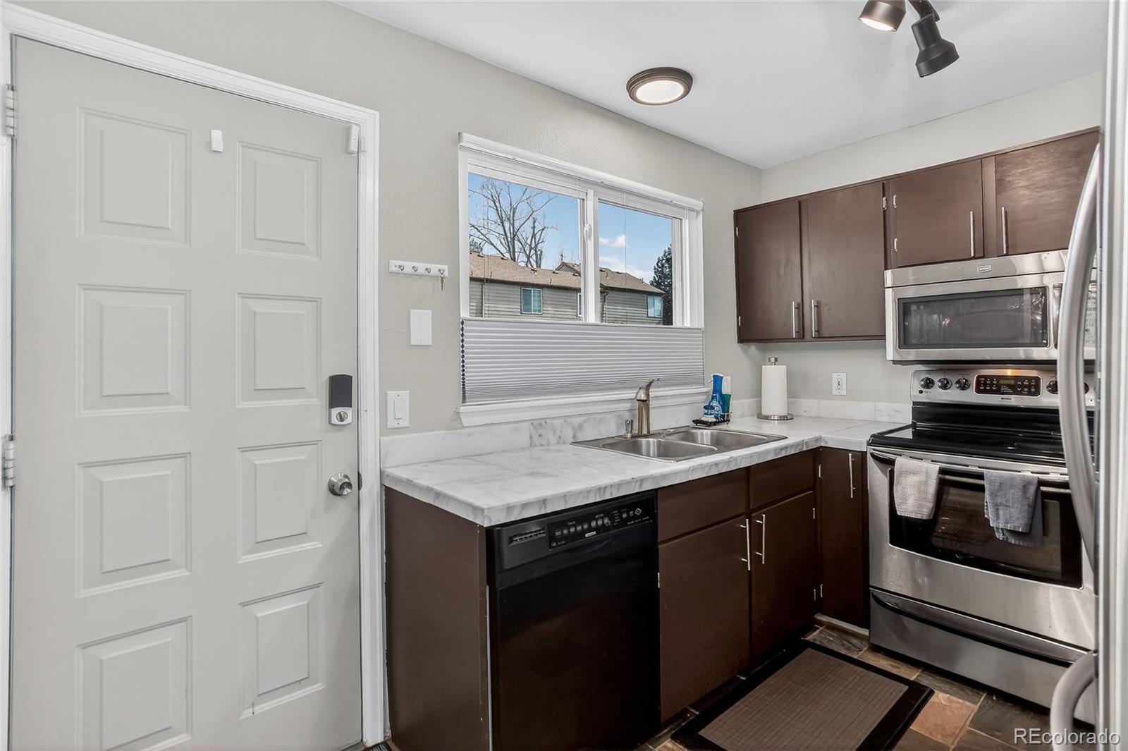 Welcome to this beautifully updated townhome in the heart of Highlands Ranch! Enjoy quick and convenient access to C-470, along with close proximity to shopping, restaurants, and everyday amenities*Plus, the elementary school is within walking distance — a rare and valuable convenience*This thoughtfully designed 2-bedroom, 2½-bath home features two true primary suites, each offering its own private bathroom*One suite includes a full bath, while the other boasts a beautifully updated ¾ bath*Both bathrooms have been remodeled with gorgeous, high-end finish work that adds style and sophistication*The kitchen shines with new marble countertops, newer stainless steel appliances, and durable slate flooring — perfect for both everyday living and entertaining*Washer and Dryer are included*Engineered hardwood floors flow through the family and dining rooms, creating warmth and elegance*A custom rock surround and mantle highlight the cozy wood-burning fireplace, making the living space both inviting and distinctive*Upgraded track lighting enhances the ambiance, while newer windows throughout bring in abundant natural light and improved efficiency*Step outside to enjoy the private trex deck along with the convenience of two assigned parking spaces*Mature landscaping throughout the complex creates a serene and well-maintained setting*As part of the Highlands Ranch Community Association, residents enjoy access to four incredible recreation centers — each with its own unique personality — offering pools, fitness facilities, classes, sports courts, and year-round activities*This move-in-ready home combines location, updates, and lifestyle — don’t miss the opportunity to make it yours!