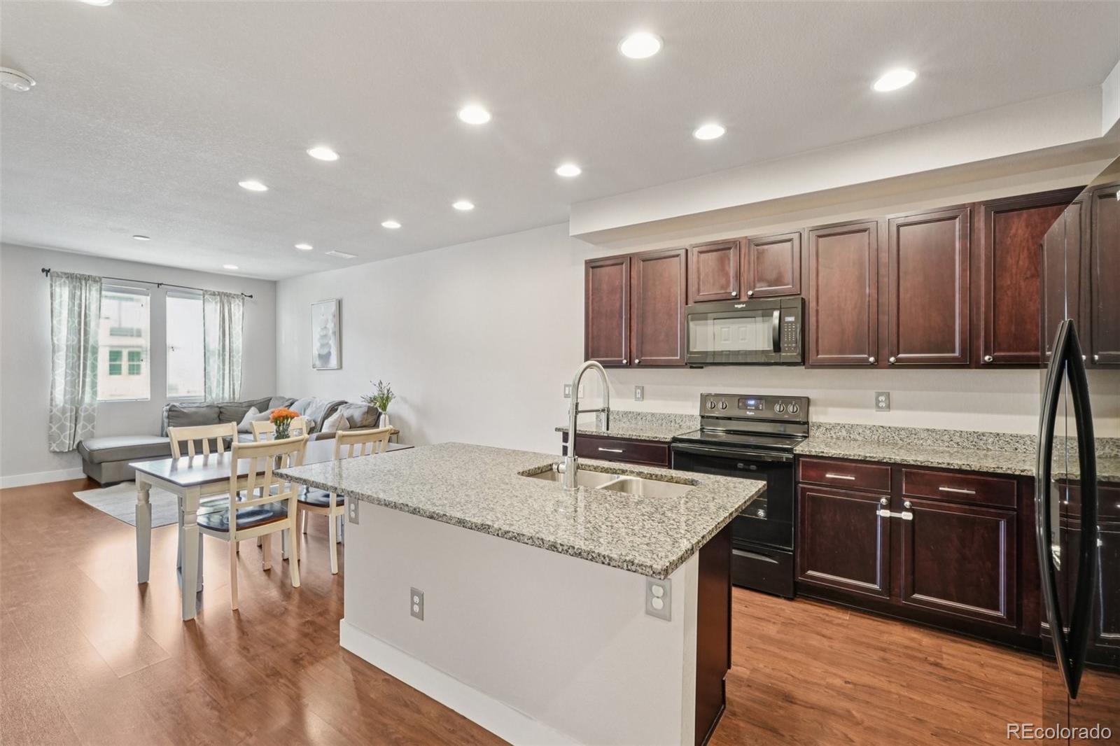 This home now includes a $5,000 seller concession that can be applied toward a rate buy-down or closing costs, creating a valuable opportunity for eligible buyers. Located in Denver’s sought-after Avion at Denver Connection community, this three-bedroom, three-bathroom townhome features 1,538 square feet of modern living space and an attached two-car garage. From the moment you arrive, the home feels balanced, bright, and move-in ready. The main level connects the living, dining, and kitchen areas in one continuous flow, centered by a generous island with seating and granite counters. A large pantry enhances storage and practicality, while natural light fills every corner to create a warm, welcoming atmosphere. Upstairs, the primary suite offers a peaceful retreat with dual sinks, a true walk-in closet, and large windows that bring in natural light. Two additional bedrooms and baths provide flexibility for guests, family, or a dedicated home office. Community amenities elevate everyday living with a resort-style pool and hot tub, a vibrant clubhouse known as The Hub, dog park, walking trails, and a planned ten-acre city park that will continue to build long-term value. The HOA ($221 per month) covers exterior maintenance, snow removal, landscaping, and water helping keep ownership low-maintenance and predictable. Positioned minutes from DIA, with quick access to the A Line Light Rail and Downtown Denver, this home combines comfort, location, and community connection—an exceptional opportunity for today’s Denver buyer. This home also qualifies for a $7,500 grant plus 1% of the purchase price, creating a powerful opportunity to own in Denver.