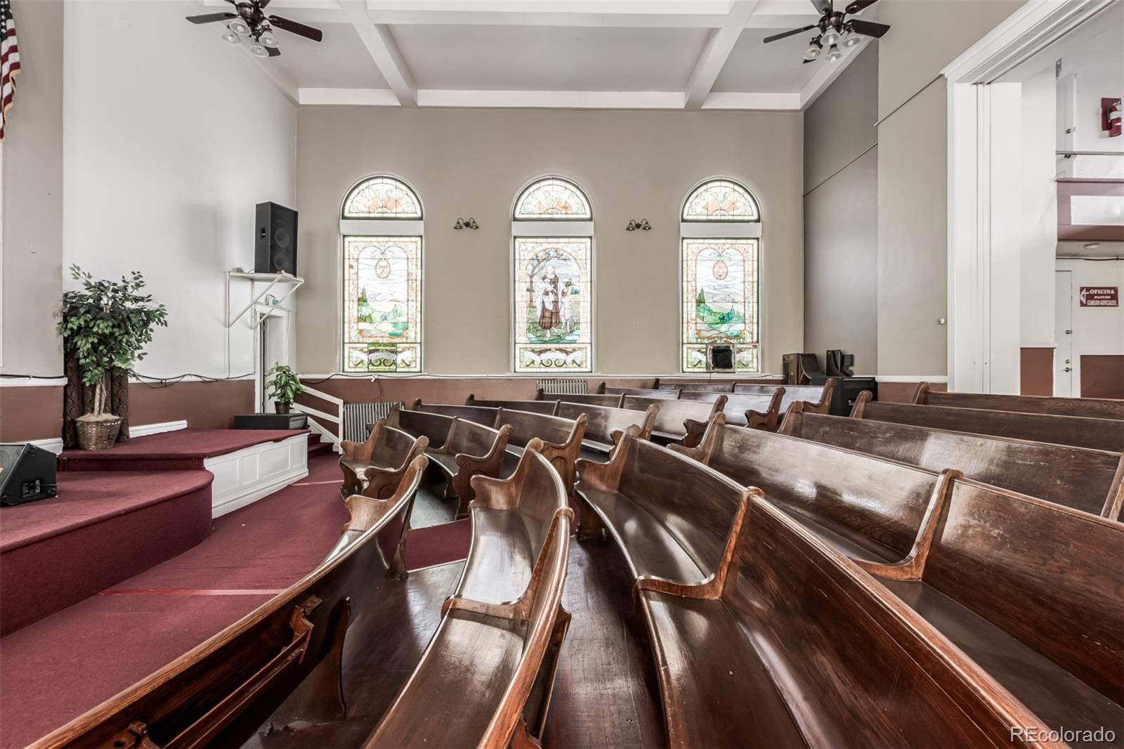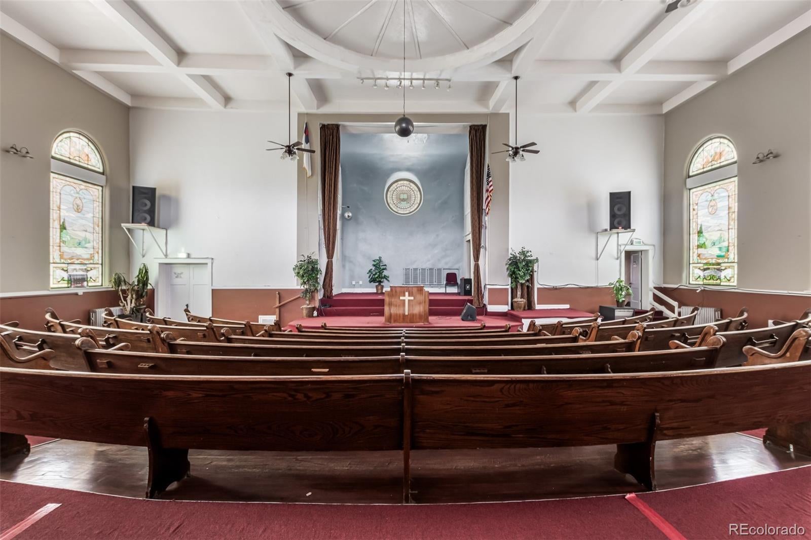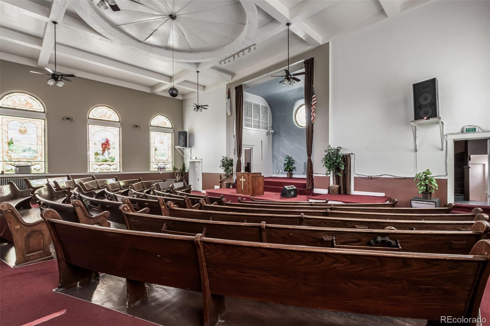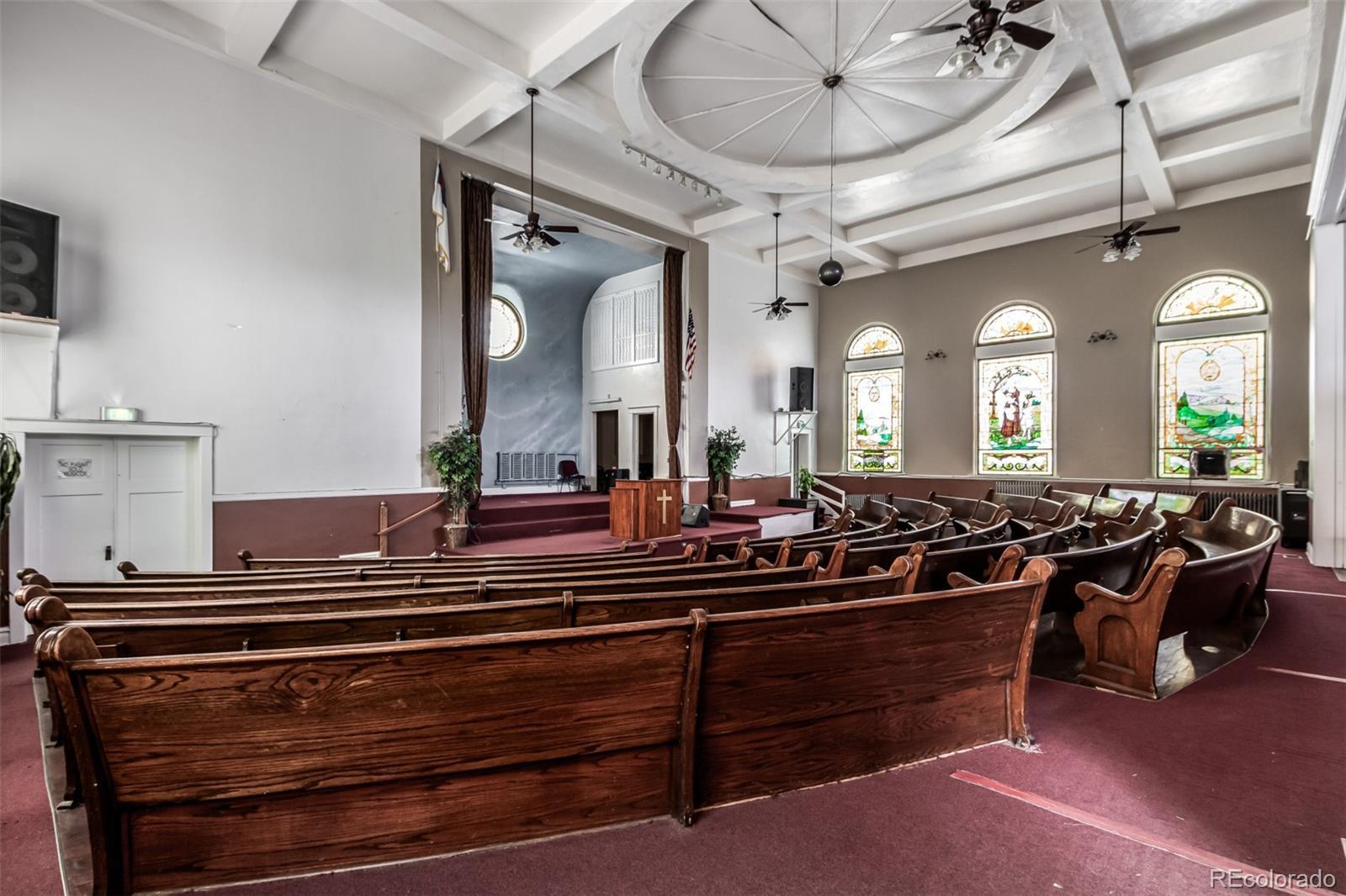 New Price $800,000. Discover a unique investment opportunity at 2601 West 34th Avenue, Denver, Colorado. This exquisite and historically significant property nestled in the heart of Denver's Potter Highlands District featuring a mix of Victorian, Craftsman, and cottage-style homes. This architectural masterpiece, originally constructed in 1914 and thoughtfully renovated in 1990, stands as a testament to timeless design and offers unparalleled potential. Spanning an impressive 11,175 square feet across three levels on a 7,440 square foot corner lot, this former church captivates with its commanding exterior. Ornate Greek-style columns and breathtaking original stained-glass windows frame a facade that echoes the grandeur of a bygone era. Step inside to discover a sanctuary of space defined by soaring vaulted ceilings that enhance the magnificent interiors. A dramatic mezzanine level, complete with original theater-style seating, creates an inspiring atmosphere perfect for large gatherings, artistic performances, or creative collaborations. The full basement, equipped with a modern kitchen, updated systems, and six bathrooms offers a world of possibilities for community events, private studios, or unique personal use. Boasting U-TU-B zoning, this property offers incredible flexibility for a myriad of ventures, from a dynamic creative hub or vibrant community center to a distinctive and expansive residential conversion. Its prime location, just 10 minutes from Downtown Denver, provides effortless access to the city's myriad amenities, including the Convention Center and Empower Field at Mile High. Excellent public transportation links and convenient highway access further enhance its appeal.