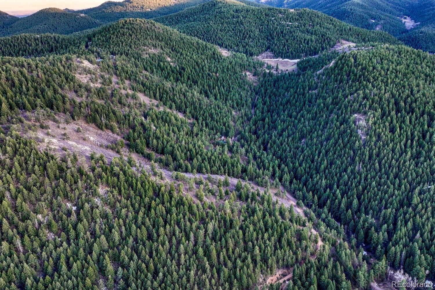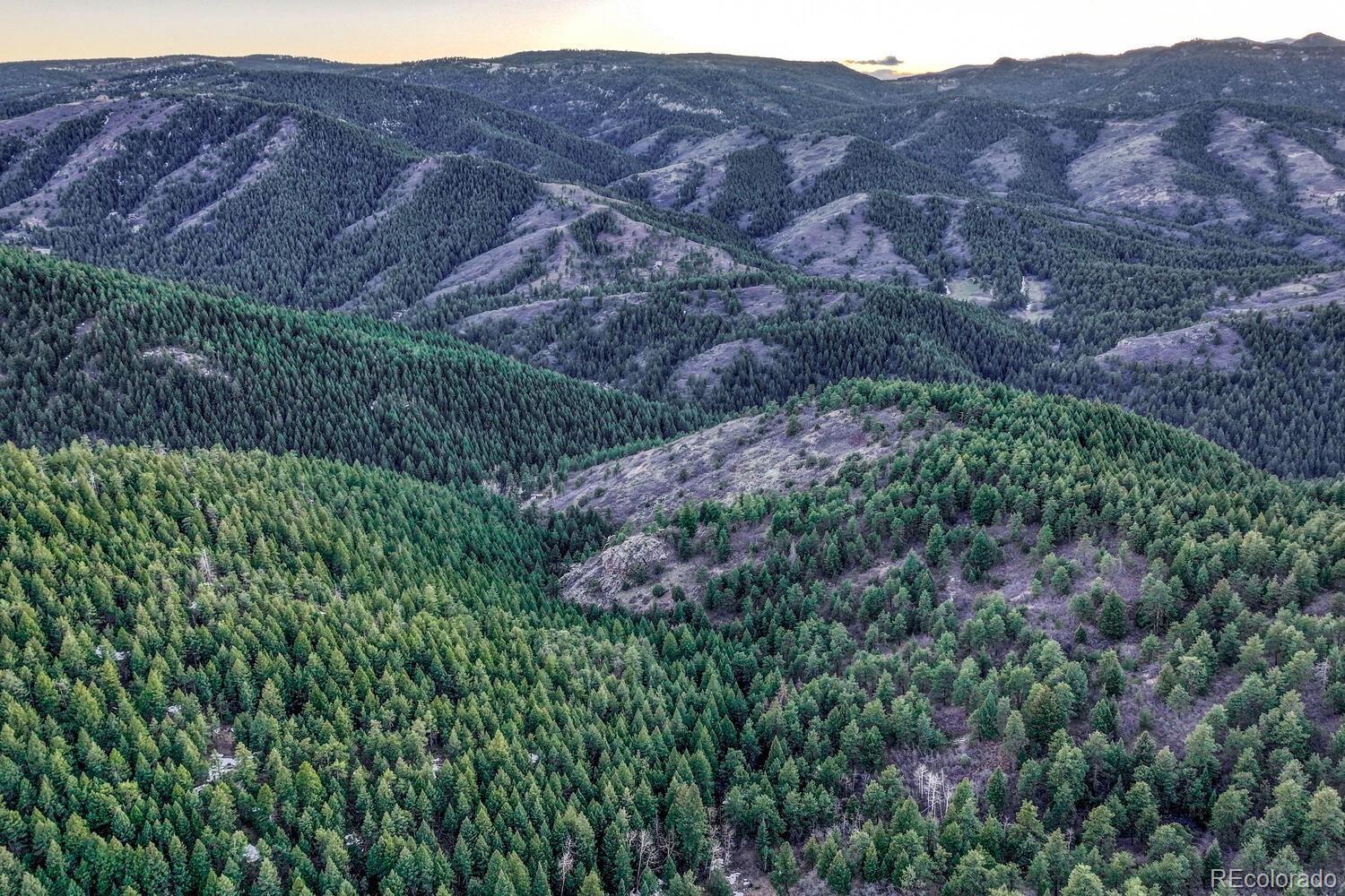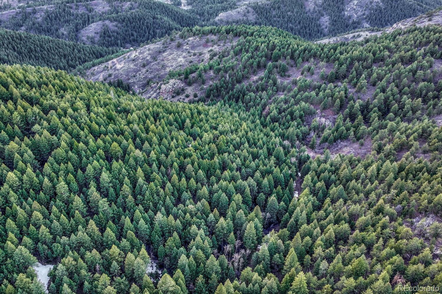 Secluded 37.96 wooded acres with level and gently sloped building sites. Enjoy rock outcroppings, aspen groves, seasonal stream, and views across the valley. Location is outside of Littleton, 20 minutes to C-470 and Kipling. Electric service is available. There is access via permanent easement.