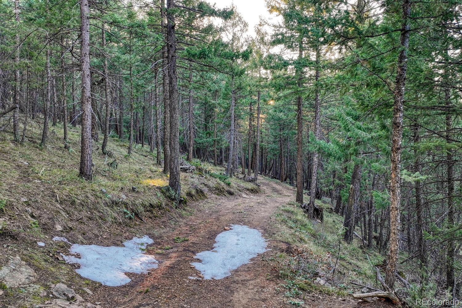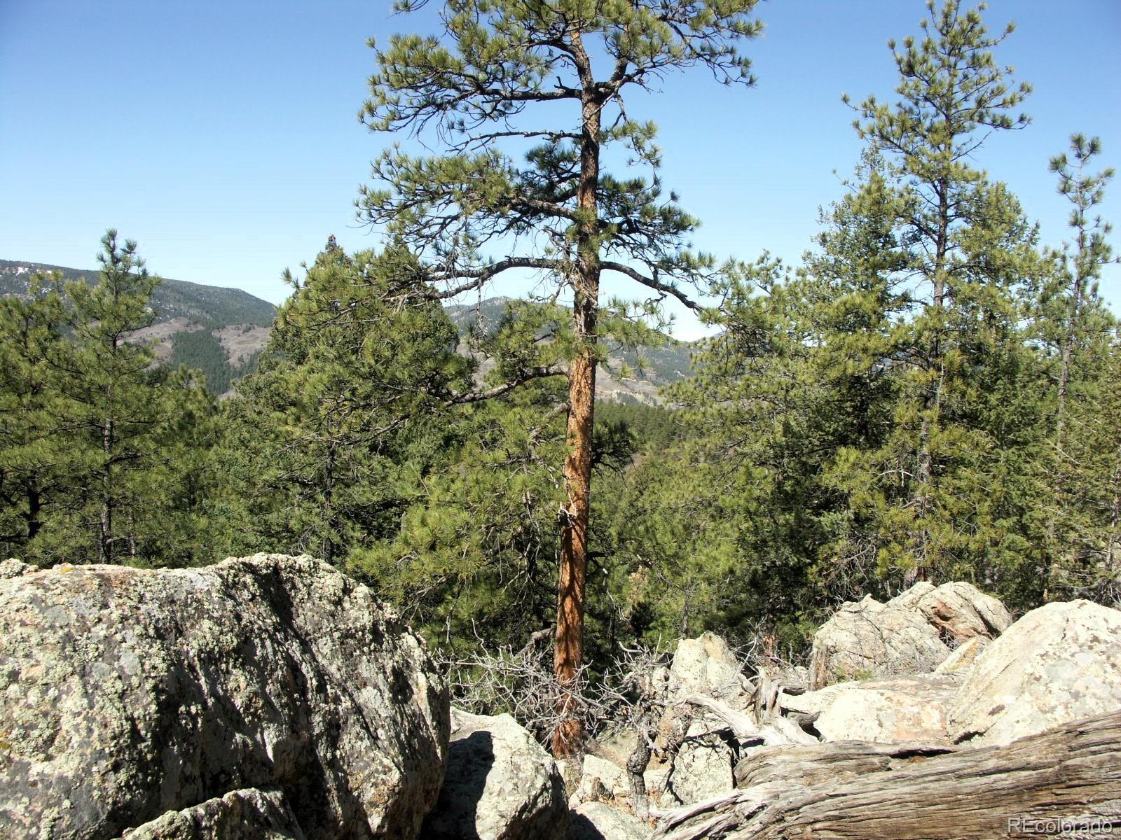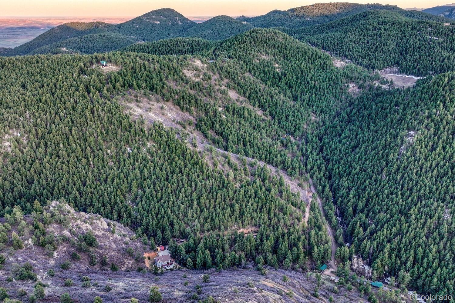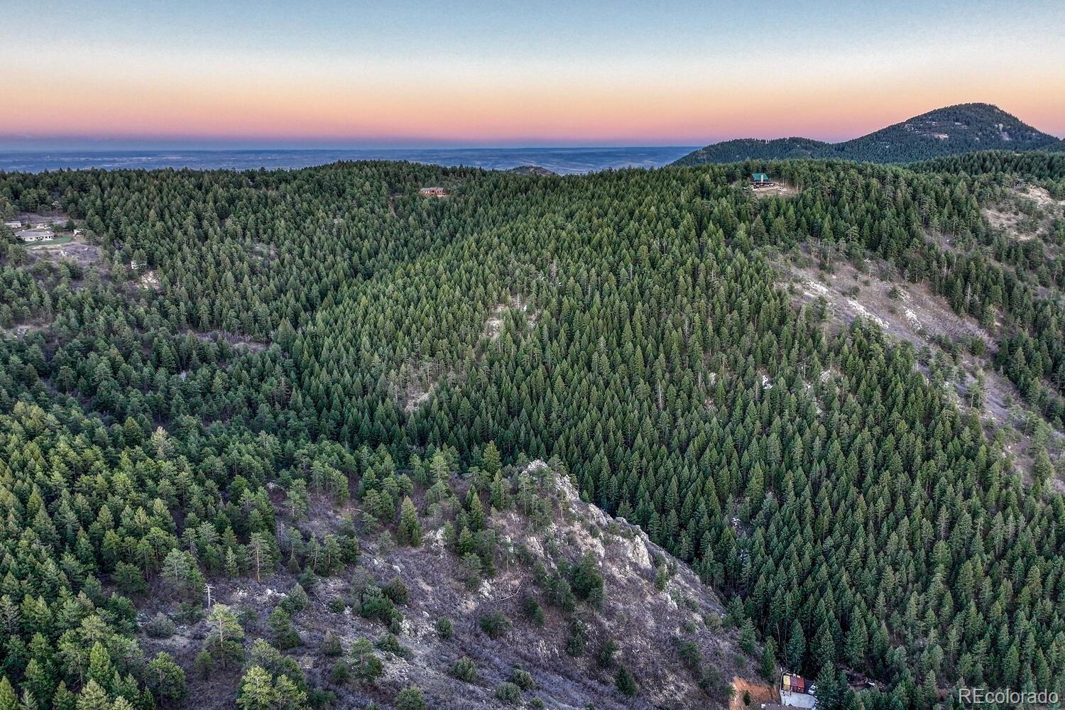 Secluded 37.96 wooded acres with level and gently sloped building sites. Enjoy rock outcroppings, aspen groves, seasonal stream, and views across the valley. Location is outside of Littleton, 20 minutes to C-470 and Kipling. Electric service is available. There is access via permanent easement.