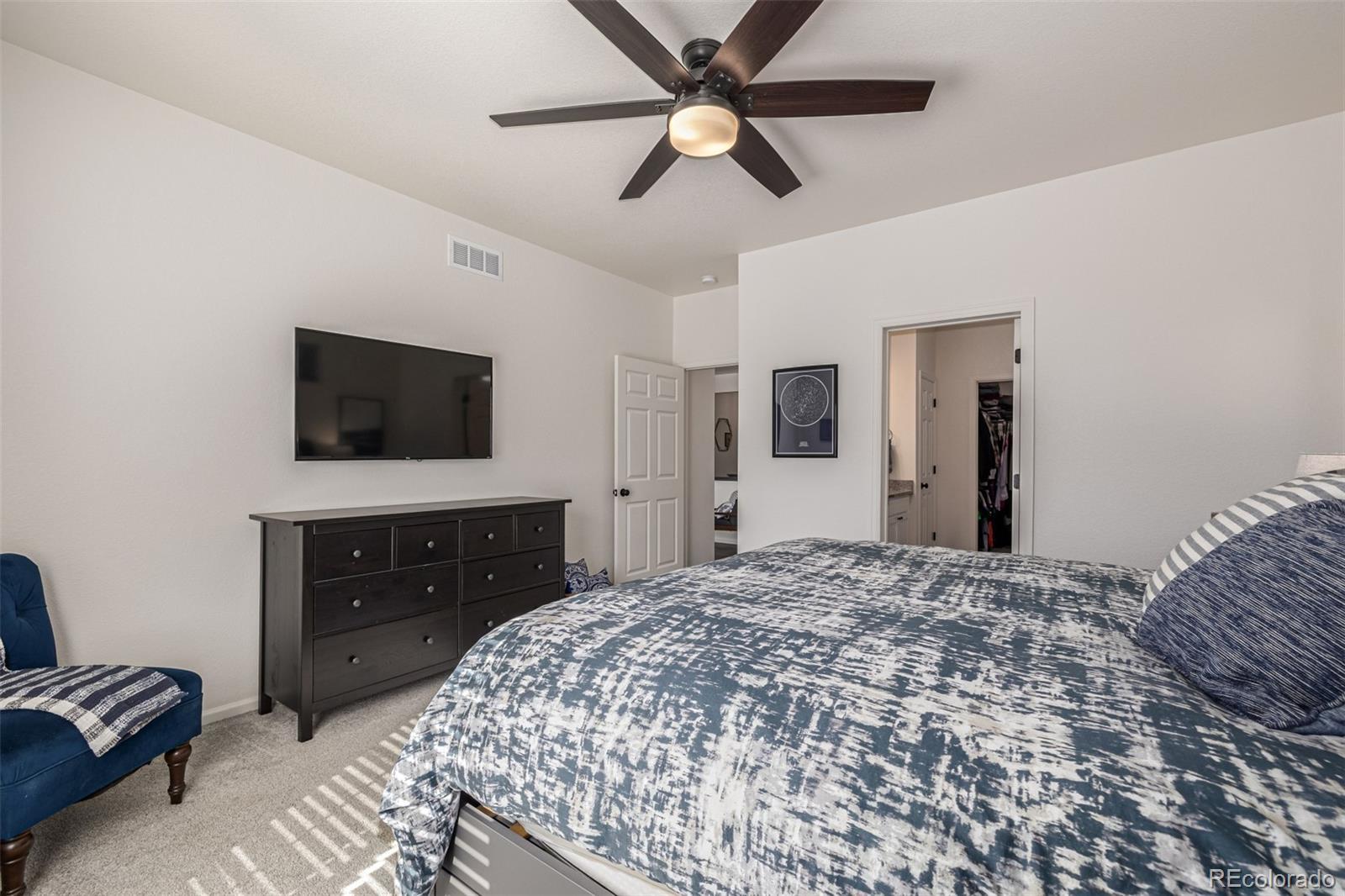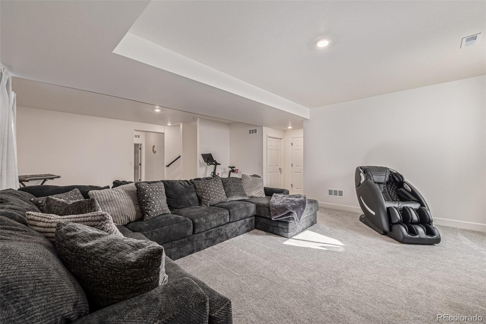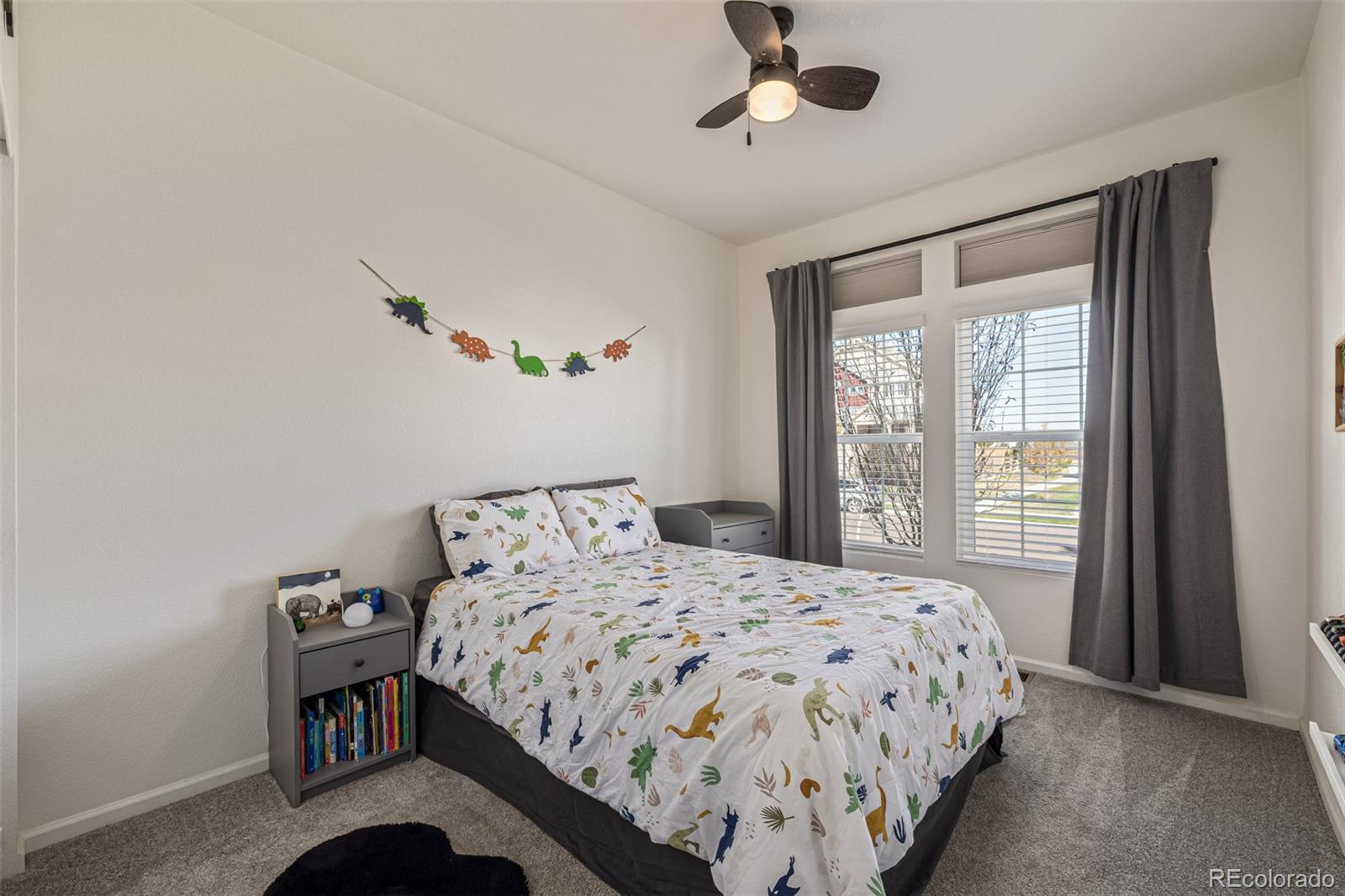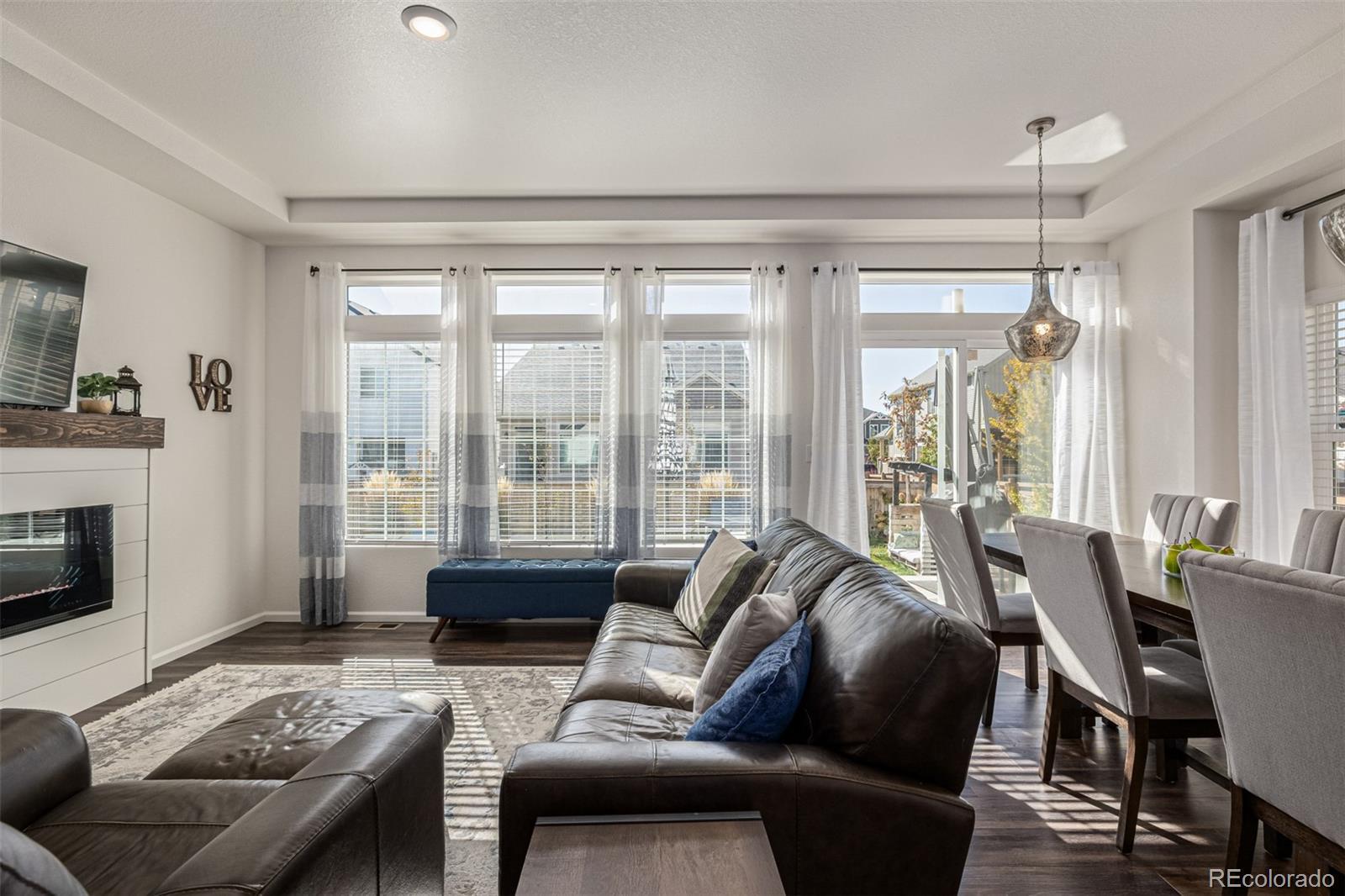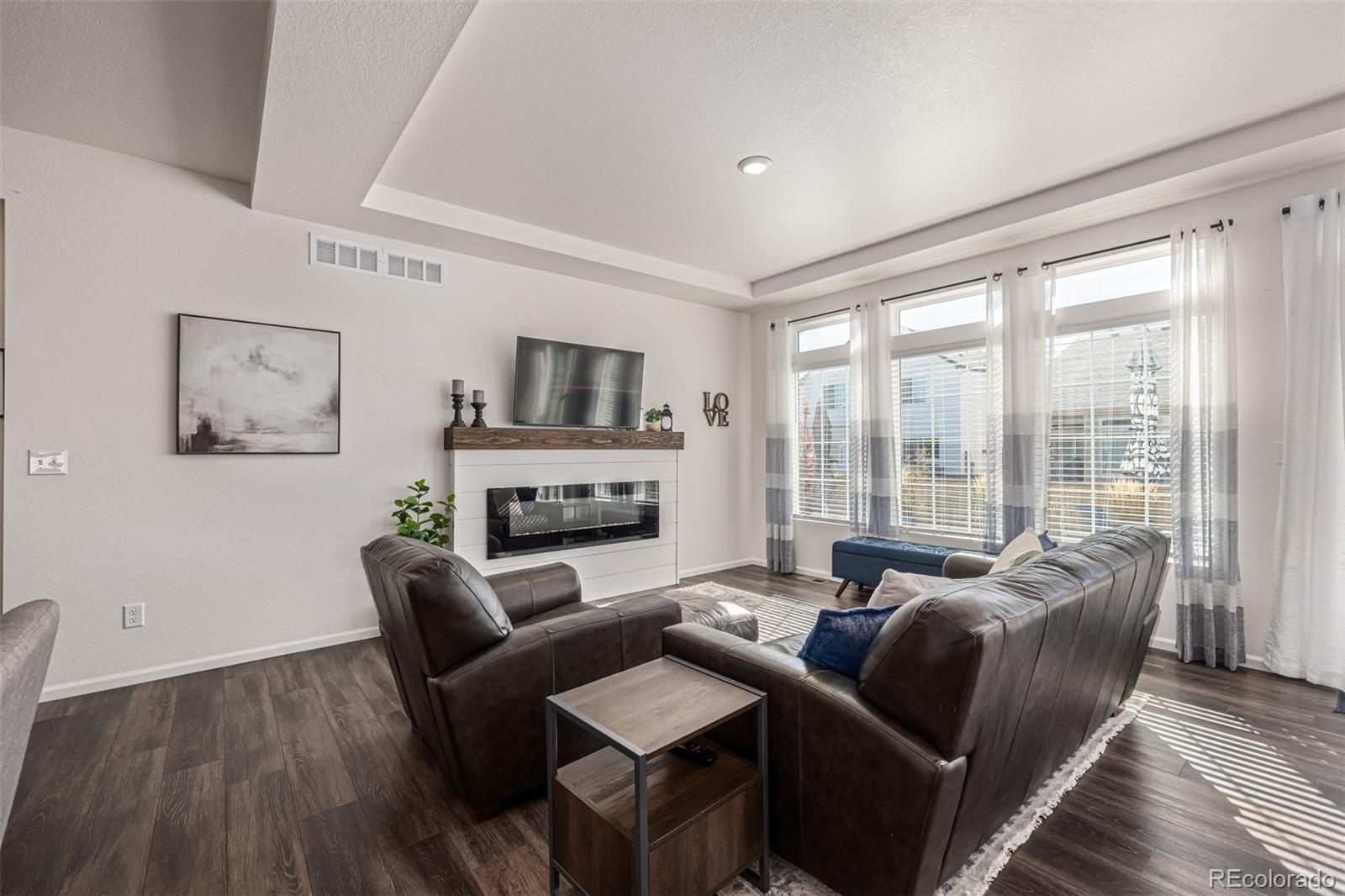Stunning ranch floorplan situated next to a greenbelt. This is main level living at it's best. Featuring 4 bedrooms and 3 bathrooms this home has enough space for guests, entertaining and enjoying all that Colorado has to offer! Highly upgraded chefs' style kitchen that includes an oversized kitchen island, black stainless steel appliances, soft close cabinets and upgraded flooring. The expansive great room has an electric fireplace and has an open layout concept. The owners' suite features a spa style en-suite bathroom with a huge walk in closet. Laundry is conveniently located next to the guest bedroom and full bathroom. the basement is finished featuring 2 additional bedrooms, large living room and a guest bathroom. Additional features include an oversized garage, whole house humidifier, EV-pre wire, large solar array and your back yard oasis with oversized patio. Located in amenity rich Reunion you will enjoy a clubhouse, pool, parks, trails, fitness center and coffee shop. Close to E-470, Buffalo Run golf course, Shopping and dining. This home truly has it all! Set your showing today!