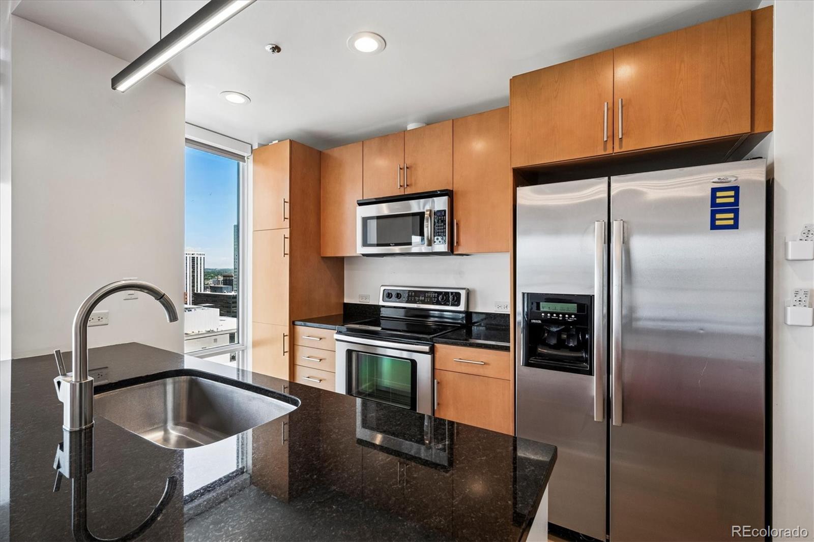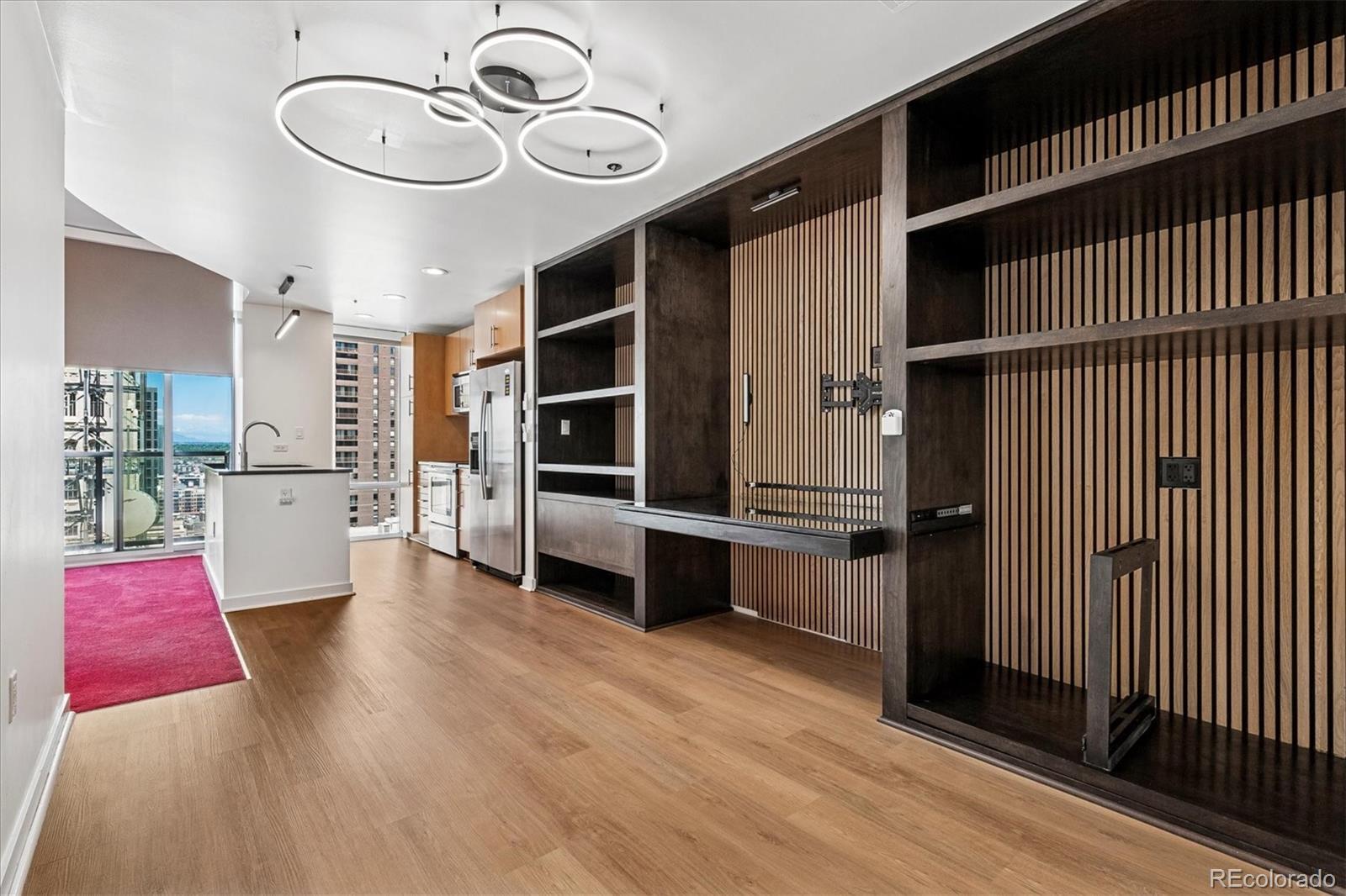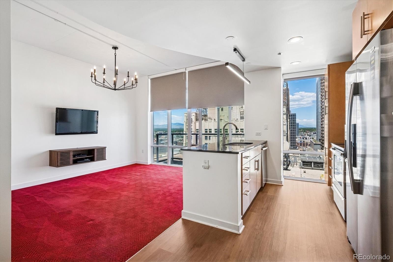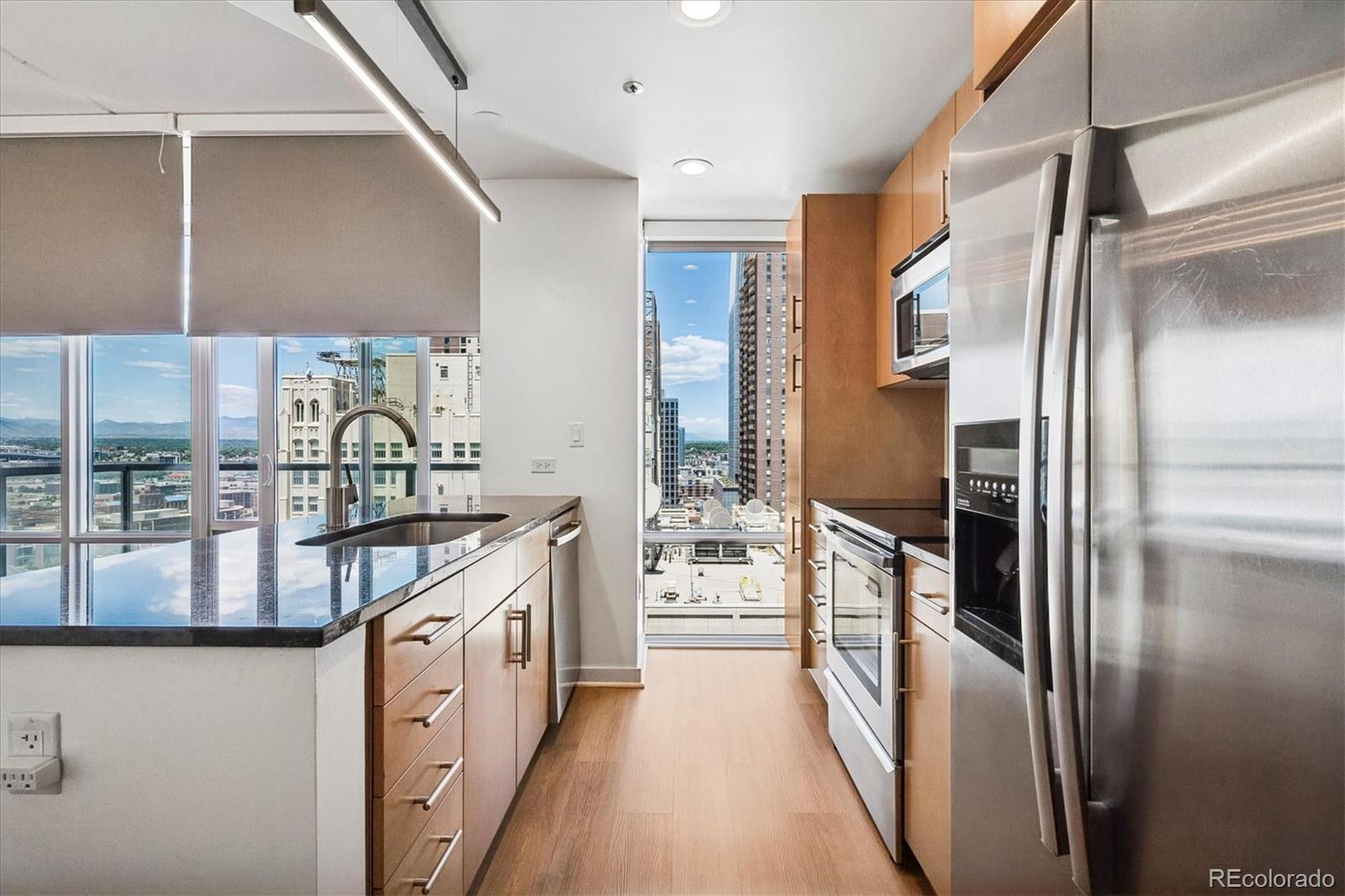 Welcome to Elevated Living at the Spire Denver * A spacious 21st floor residence in one of Denver’s premier high-rise communities * This sleek and modern 1-bedroom, 1-bathroom condo offers a lifestyle of convenience, comfort, and breathtaking city and mountain views from the private balcony * Deeded parking space (#428) in secure garage * The kitchen offers contemporary cabinetry, granite countertops, stainless steel Whirlpool appliances, and brand new flooring * Living room with newer light fixture and expansive floor-to-ceiling windows * Retreat to the private bedroom with walk in closet adjacent to the full bath with oval soaking tub * The dining room has a custom built in desk that pulls out into a table to maximize the use of the space * In-unit Whirlpool washer & dryer are included * Storage unit #262 * 14 month Blue Ribbon Home Warranty * The resort style building amenities include: 24-hour concierge & security, Rooftop pool and hot tubs, fitness center, theater room, lounges, co-working spaces, guest suites, and dog-friendly areas * LEED-certified and sustainably designed * Prime Location just steps from Denver Performing Arts Complex, Larimer Square, Union Station & Light Rail, Restaurants, bars, & shops * Your high-rise haven awaits * Spire #2105 delivers a premium lifestyle with views that never get old *