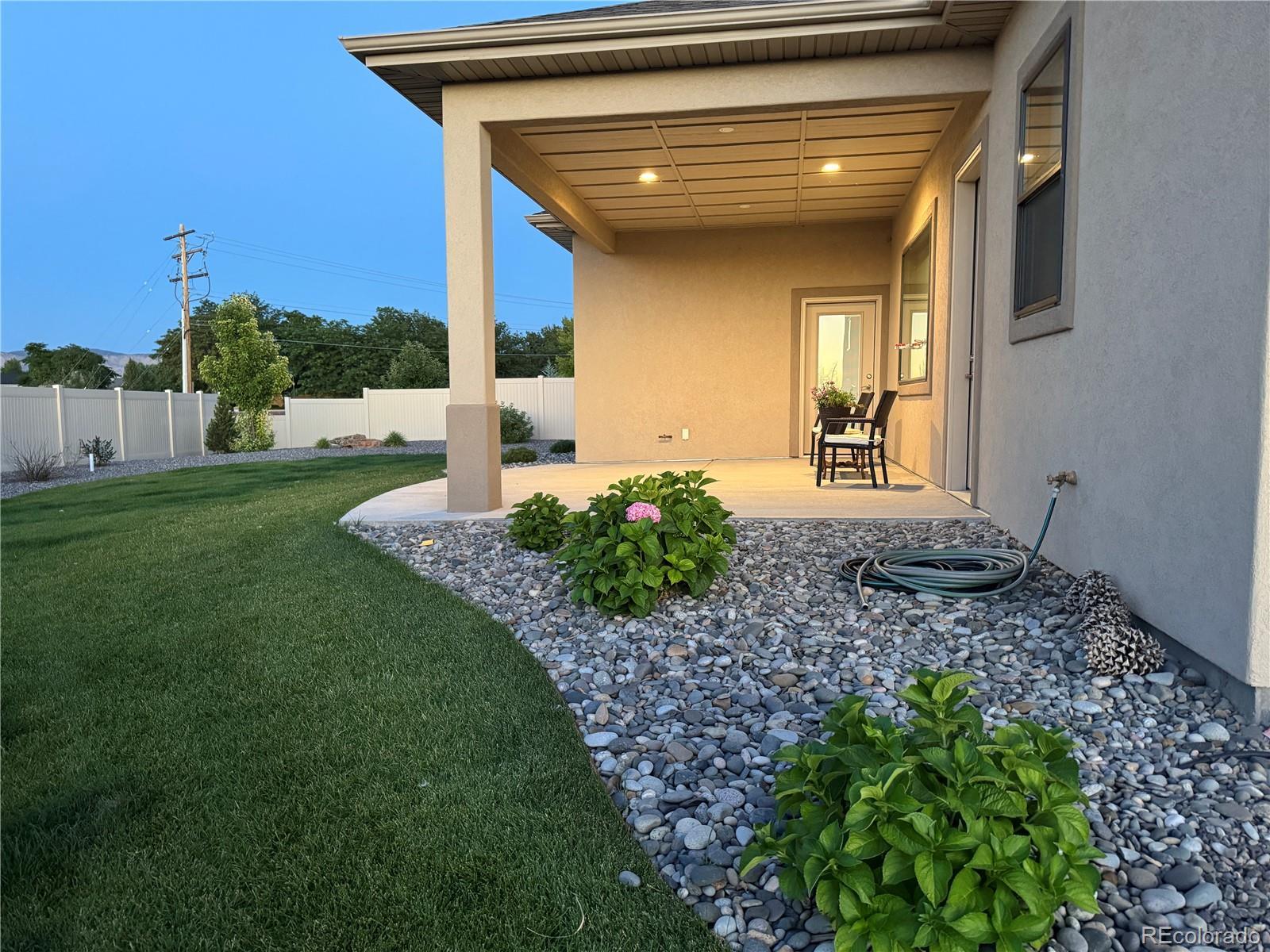Stunning high quality patio home in South Montrose built by Coker Homes! There are SO many upgrades: Hunter Douglas blinds - all with remote controls; upgraded Kitchen Aid appliances with double oven; Amish cabinets including both sides of the kitchen island; stone gas fireplace to the ceiling; two tone paint throughout the home; luxury vinyl tile; master tiled shower with pebble flooring; 10-foot ceilings with heating filters in the ceiling; recessed lighting in all rooms; motion lights in laundry and both bathrooms; oversized master bedroom with very large walk in closet; oversized two car garage with beautiful flooring covering and easily fits two cars with room for equipment and storage; covered patio with lighting and gas hook up; and beautiful wrought iron front door that opens with a screen door built in. The kitchen features dovetailed drawers with soft close slides. Shelves in the kitchen cabinets pull out for easy access to pots and pans. This home is so inviting and zero entry from both the front door and garage. There are mountain views to the east. The layout features a desirable split bedroom plan, offering privacy with guest bedroom and a full bath on one side, and a grand primary suite on the other. The third bedroom (nonconforming without a closet) has a queen bed in it. Very unique property - the HOA includes all mowing, fertilizing and snow removal in winter. The fee also includes the irrigation water for the yard. Fully fenced yard with extensive landscaping including sprinklers. The home is located at the end of a cul-de-sac with very little traffic. This home is close to all shopping including grocery stores, Home Depot, Walmart and Target. The Montrose Recreation Center is only one block away. Make this your easy get-a-way home with no worries! Videos available upon request.