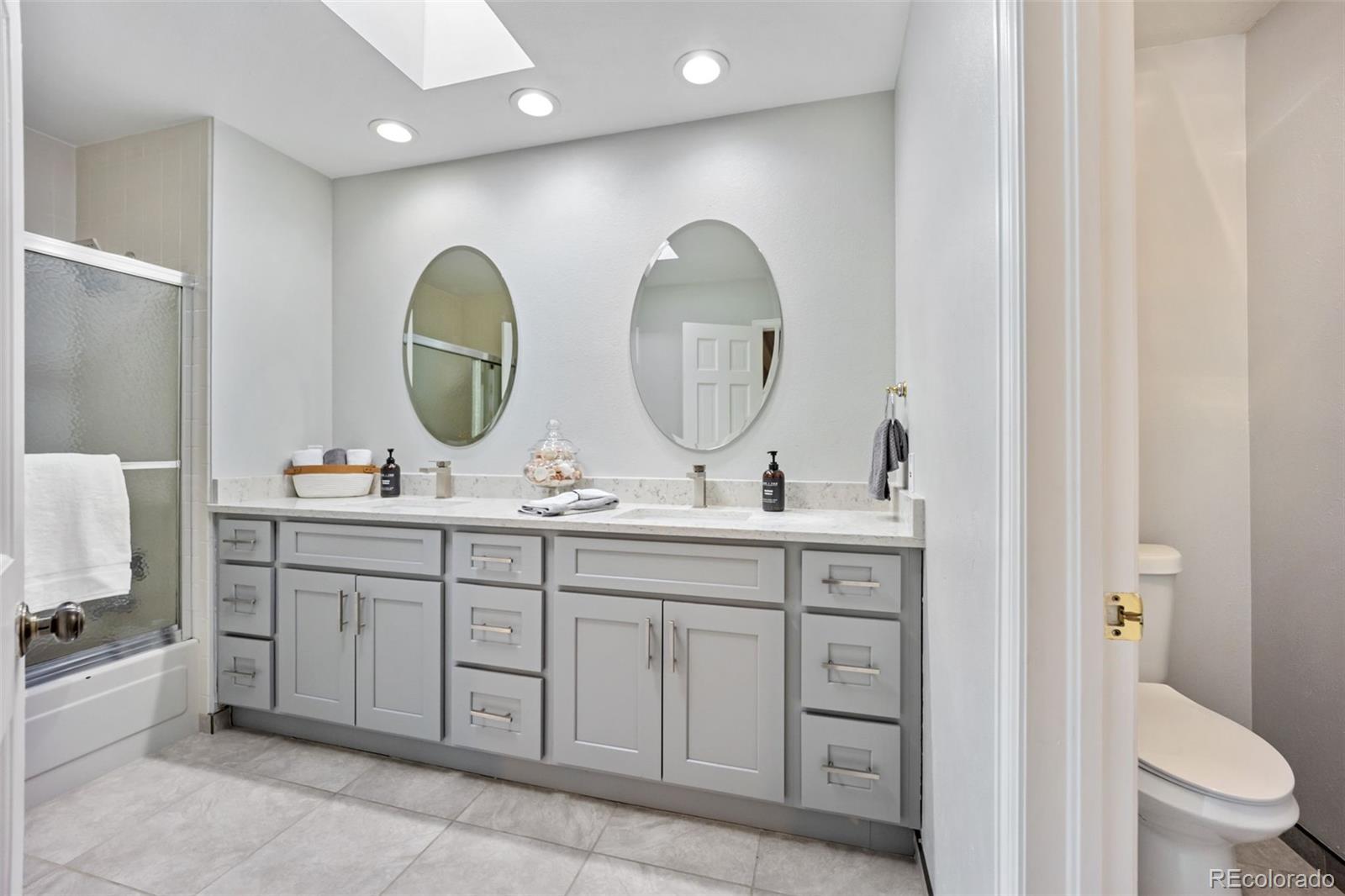 Located on a quiet cul-de-sac in the heart of the Denver Tech Center in Greenwood Village, this two-story brick French Provincial offers privacy, space, and walkability, situated on a fenced .3-acre lot in the Cherry Creek School District, close to light rail, shopping, dining, parks, recreation, and business centers. The exterior features a 3-car attached garage and covered deck. Inside, the home has been refreshed with new interior paint, new carpet, no popcorn ceilings, new chandeliers, recessed lighting, and luxury vinyl wood flooring. Extra-wide staircases, vaulted ceilings, and skylights enhance the open, bright, spacious feel throughout. The main level includes a formal dining room, breakfast nook, and a large kitchen with island seating, pantry, under-cabinet lighting, true double ovens, glass cooktop, and generous counter space. Also on the main floor are a living room with gas fireplace, family room with gas fireplace and wet bar, office, and laundry. Floor to ceiling windows add a ton of natural light, many windows have plantation shutters. The primary suite features a sitting room with gas fireplace, dual walk-in closets, and a spa-style bath with a double-headed steam shower. A loft separates the primary suite from three additional bedrooms with built-in desks and walk-in closets, plus a Jack-and-Jill bath and an additional full bath. The finished basement offers luxury vinyl flooring, a conforming bedroom with egress window and double walk-in closets, a large media/rec/gym room, a full bath, and a bonus non-conforming bedroom with closet, along with extensive unfinished storage. One of the largest homes in the area with 7,001 total square feet, dual-zone heating and cooling with two furnaces and central air, and a layout ideal for entertaining or quiet evenings at home. Greenwood Village provides complimentary trash and recycling, plus an annual Recreation Reimbursement Program.