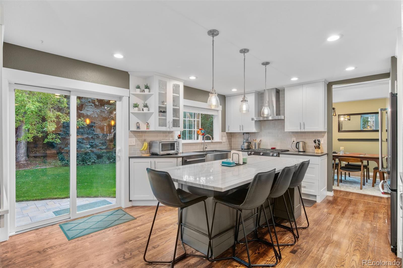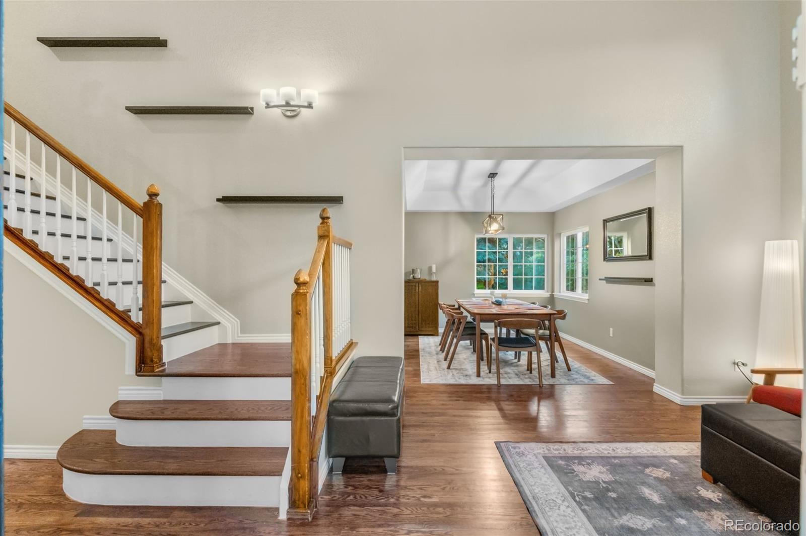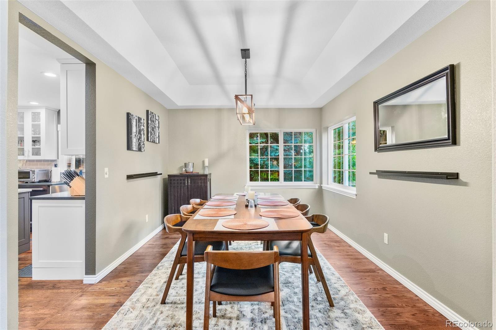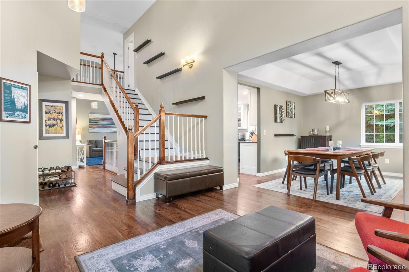 MUST SEE GEM in the highly desired Indian Peaks community! Inside you’ll find a stunning remodeled kitchen with custom cabinets, upgraded countertops, and refinished hardwoods, along with fresh paint throughout. The bathrooms have been tastefully updated, the powder room refreshed in 2024, and newer flooring runs upstairs and down. The finished basement adds a spacious family room, bedroom, and bath. Spacious office space on the main floor. Step outside to a newly landscaped yard with a large patio, pergola, and patio amazing for entertaining or just enjoying Colorado nights! Roof was replaced in 2019 and new AC in 2021. Steps away from Arapahoe and 95th retail shops with tons of options for restaurants, cafes, the YMCA, and a brewery! Do not forget about being walking distance to the amazing Indian Peaks Golf Course!