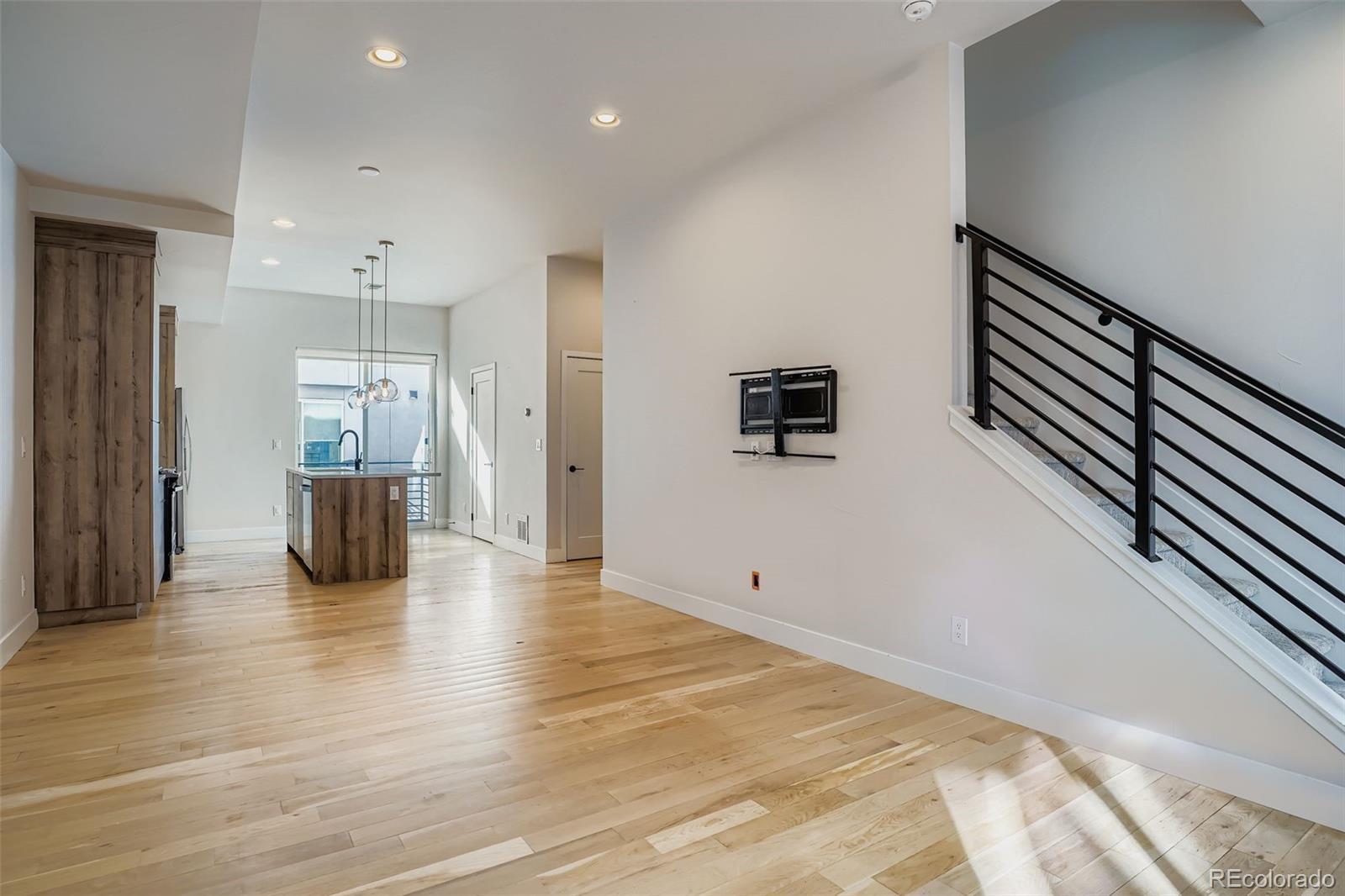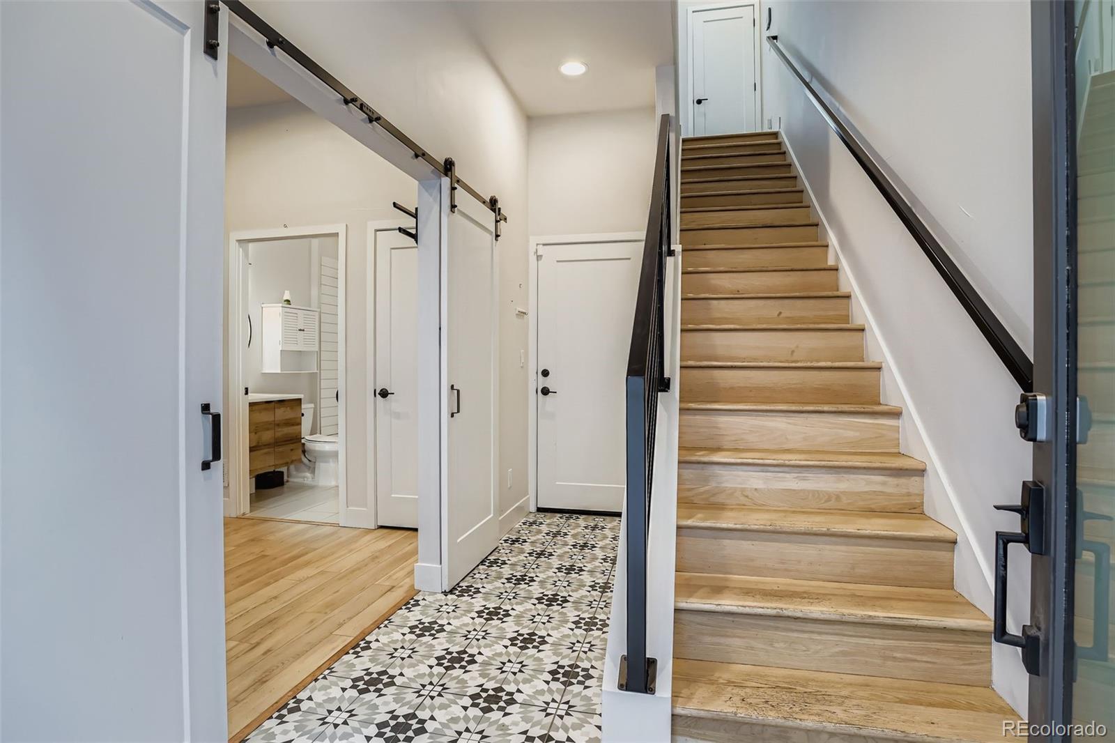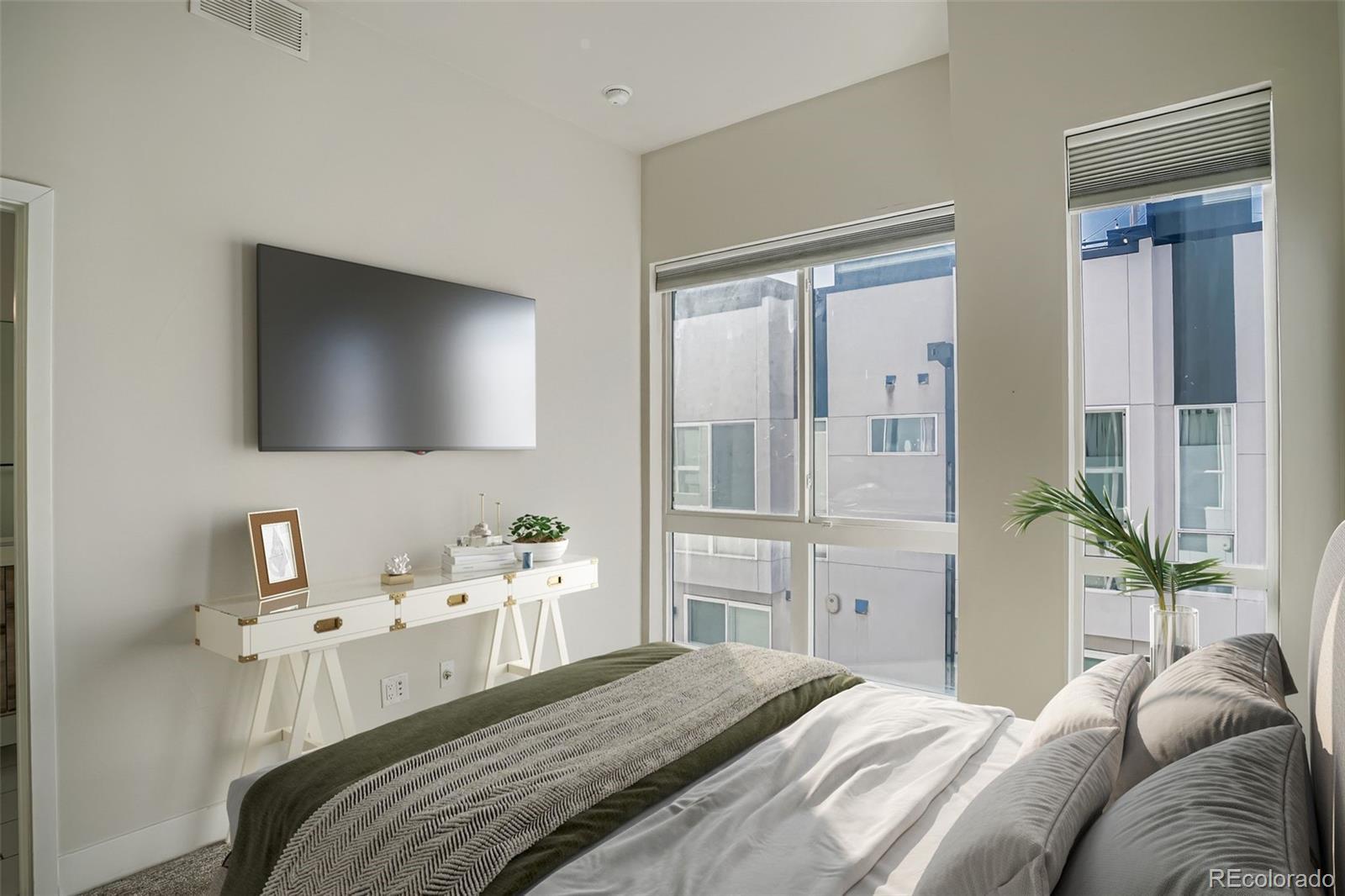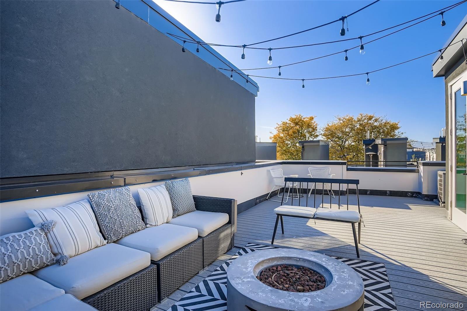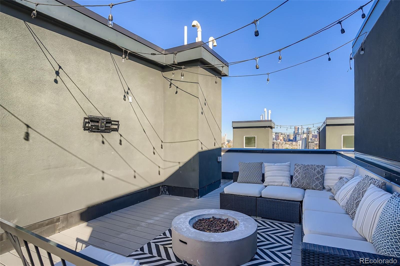 Discover this rare gem perfectly situated between Sloan’s Lake and Downtown Denver, designed for those who value style, convenience, and elevated living. Step inside to soaring ceilings, light oak floors, and abundant natural light. The lower level features a private bedroom or office with en suite bath and barn doors. Upstairs, the open-concept kitchen and living area extend to a spacious balcony. The kitchen impresses with premium cabinetry, a large island, stainless steel appliances, quartz countertops, and new pendant lighting for everyday living and entertaining. The upper-level primary suite features a huge walk-in closet, three-quarter bath, and laundry nearby. A secondary bedroom and full bath down the hall provide additional space for family or guests. The crown jewel is the private rooftop deck, higher than neighboring buildings, offering 360-degree panoramic views of the city skyline and mountains. Complete with a gas line, water hookup, and balcony furniture with a propane tank fire pit, it’s perfect for entertaining or relaxing under bistro lights while enjoying fireworks or sunsets. An attached, insulated one-and-a-half-car garage provides storage, and the home includes modern smart features such as a Google Nest camera, Google Nest thermostat, smart lock with fingerprint access, and a security system. Within walking distance to Empower Field and Sloan’s Lake, enjoy trails, parks, and nearby restaurants and cafes. Minutes from the Platte River Trail, Highway 6, and I-25, with easy access to downtown, the Highlands, and the mountains. This row-home offers freedom from an HOA with a Party Wall agreement for shared maintenance.