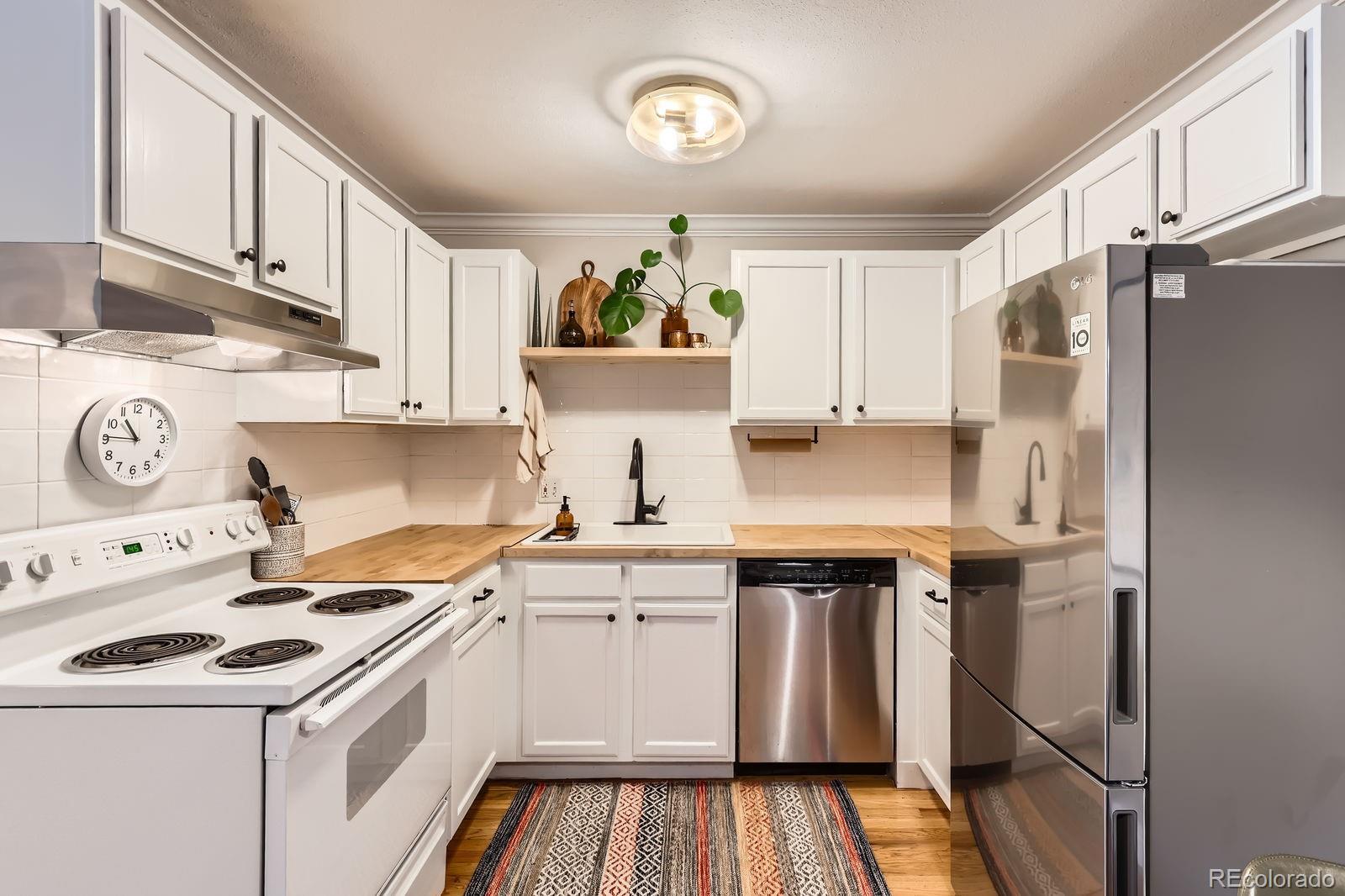 Step inside and instantly feel at home in this stunning corner-unit condo, featuring abundant natural light from windows on both the north and east sides. The updated kitchen is a true highlight, boasting gorgeous butcher block countertops, a fresh tile backsplash, freshly painted cabinets, a new faucet, and a modern, clean aesthetic throughout. Both bathrooms have been stylishly renovated, offering a sleek, contemporary feel. Thoughtful updates are found in every corner—from the fresh paint and professionally cleaned newer carpets to the modern light fixtures, chic baseboard heat covers, and upgraded door hardware throughout. This condo isn’t just move-in ready—it’s move-in perfect. Step outside and you’re instantly immersed in one of Denver’s most vibrant, walkable neighborhoods. Just minutes from iconic spots like the Fillmore Auditorium, Ogden Theatre, The Corner Beet, CorePower Yoga, Whole Foods, Hudson Hill, Thump Coffee and so many more cafes, restaurants, and entertainment options. Whether you're on foot, bike, or hopping in the car, adventure is always close by. Lovingly maintained by a meticulous owner, this home is a rare find and a true gem in the city. Don't miss your chance to own a stylish, low-maintenance home right in the heart of it all!