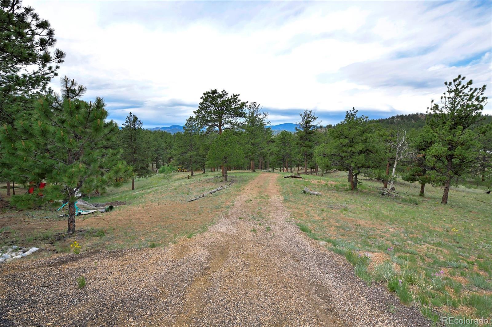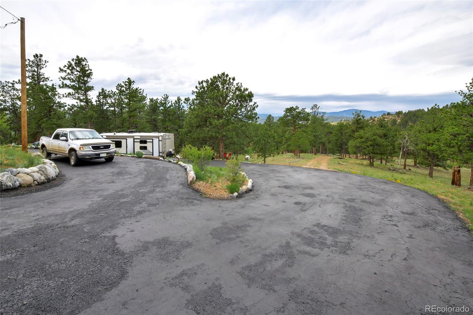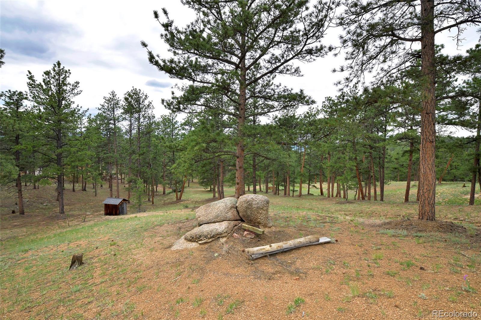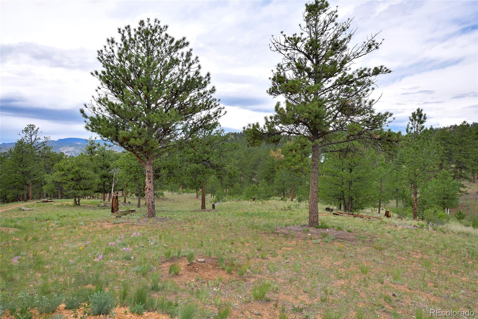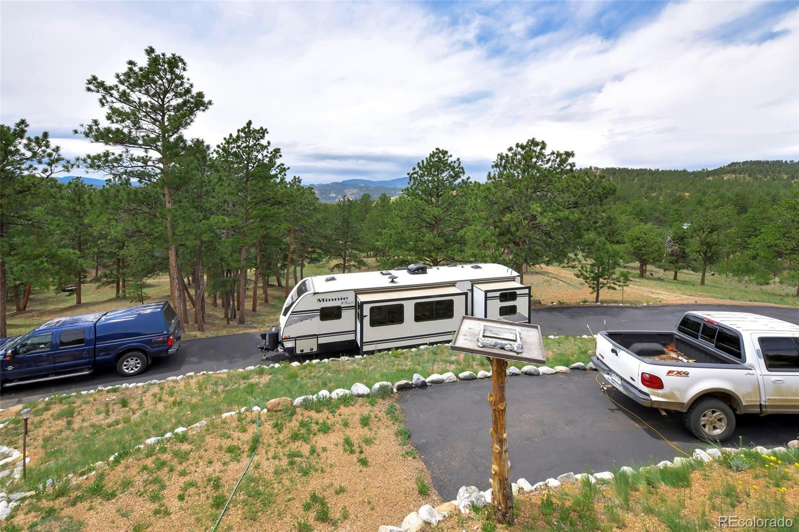 Welcome to this charming retreat nestled in the central Colorado mountains. This delightful home is the epitome of cozy mountain living. Set on five acres of meticulously mitigated mountain land, the property offers a rare blend of seclusion and natural beauty, making it an ideal haven for those who cherish tranquility and outdoor living. The home itself is a testament to thoughtful design and comfort. As you step inside, you'll be greeted by large windows that frame stunning views of the surrounding mountains and allow natural light into the living spaces. The open floor plan creates a seamless flow between all the living spaces making the most of the compact yet efficient layout. The kitchen is well-equipped with ample counter space, and custom cabinetry with inlayed Cripple Creek turquoise. One of the standout features of this property is the wrap-around deck, perfect for enjoying breathtaking scenery. Whether you're sipping your morning coffee or simply relaxing with a good book, the deck offers a versatile outdoor space that enhances the living experience. In addition to the main house, the property includes several out sheds, offering plenty of storage and potential for various uses. The property has a circular asphalted driveway around the cabin. There is a permanent full-time connection for a full-size RV– providing room for friends and family to come, visit and enjoy the mountains with you. The five-acre lot has been carefully mitigated to maintain the health and beauty of the mountain landscape. This extensive mitigation not only preserves the natural ecosystem but also provides peace of mind, ensuring the property is well-protected against environmental hazards. The land is dotted with pine, aspen and Colorado wild-flowers around the many trails on the property.