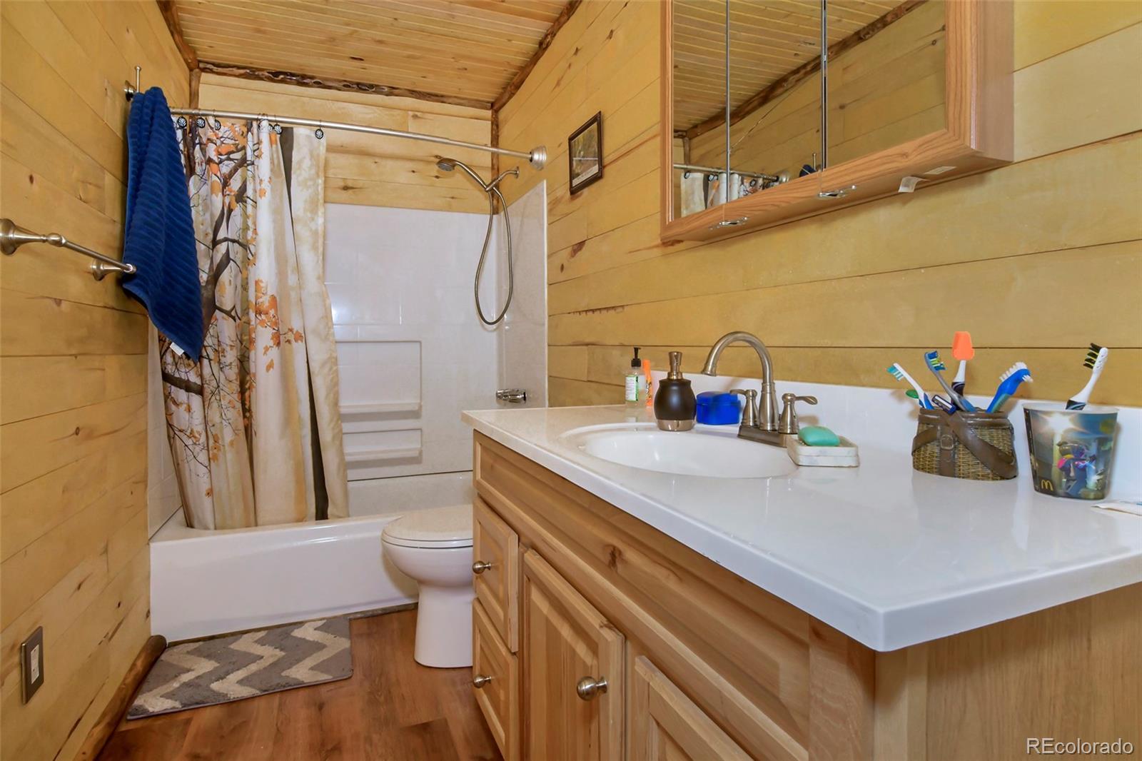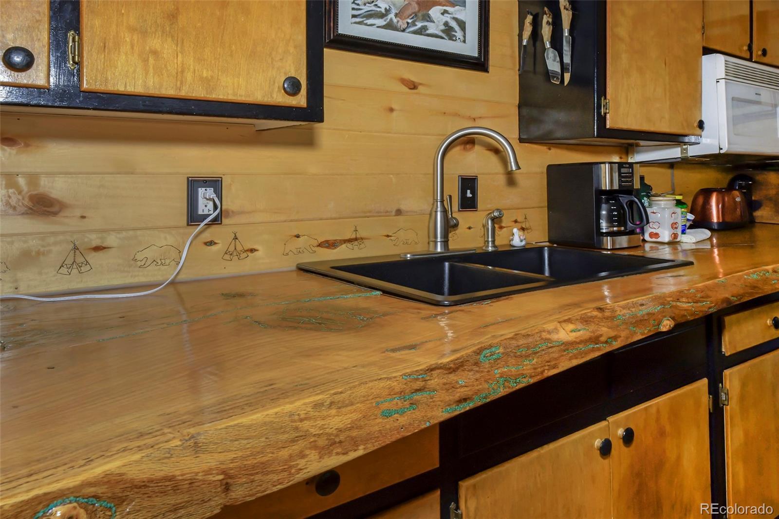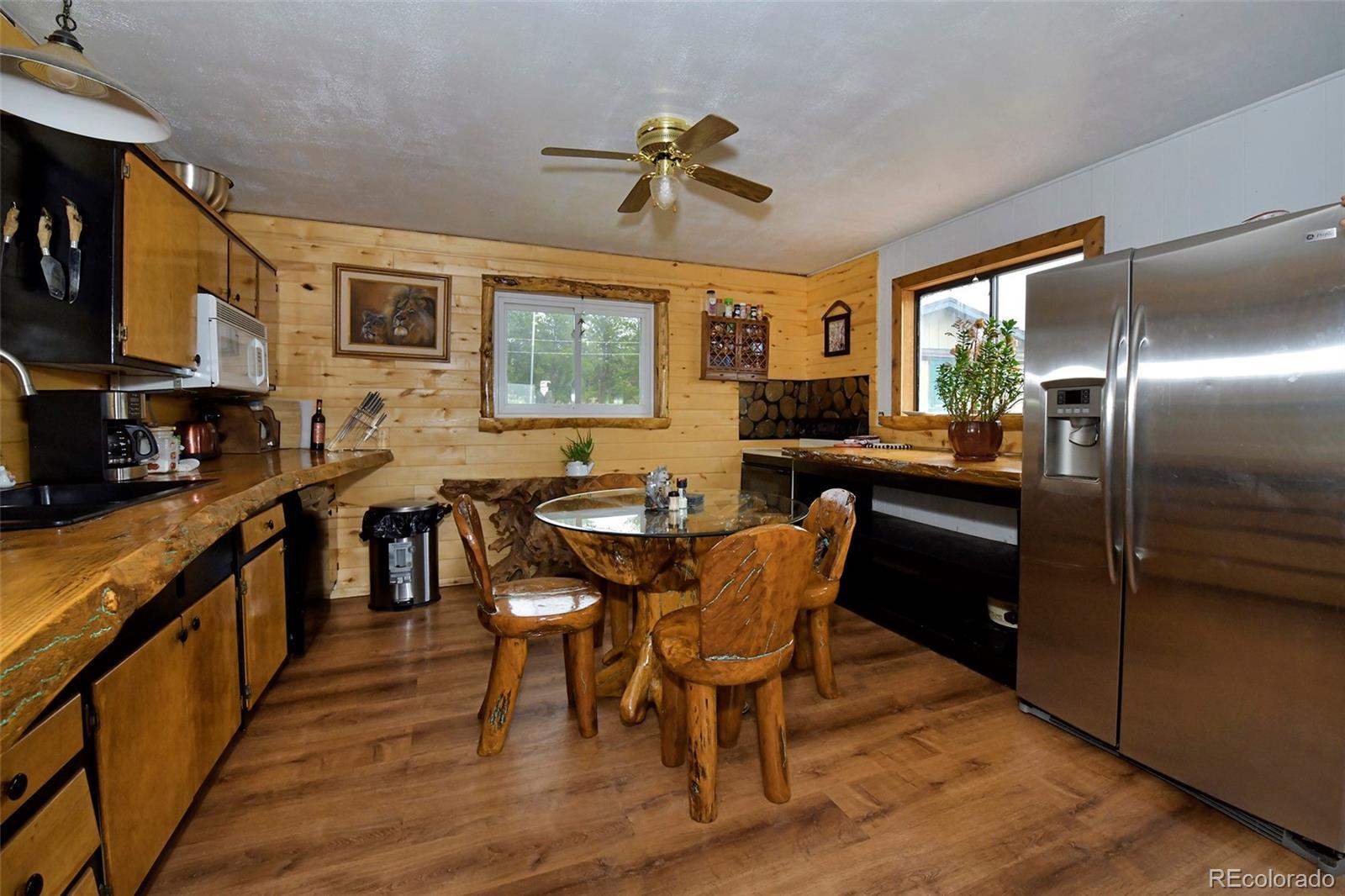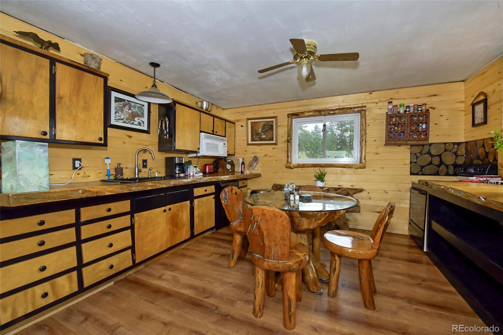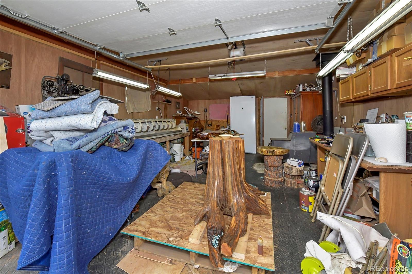 Welcome to this charming retreat nestled in the central Colorado mountains. This delightful home is the epitome of cozy mountain living. Set on five acres of meticulously mitigated mountain land, the property offers a rare blend of seclusion and natural beauty, making it an ideal haven for those who cherish tranquility and outdoor living. The home itself is a testament to thoughtful design and comfort. As you step inside, you'll be greeted by large windows that frame stunning views of the surrounding mountains and allow natural light into the living spaces. The open floor plan creates a seamless flow between all the living spaces making the most of the compact yet efficient layout. The kitchen is well-equipped with ample counter space, and custom cabinetry with inlayed Cripple Creek turquoise. One of the standout features of this property is the wrap-around deck, perfect for enjoying breathtaking scenery. Whether you're sipping your morning coffee or simply relaxing with a good book, the deck offers a versatile outdoor space that enhances the living experience. In addition to the main house, the property includes several out sheds, offering plenty of storage and potential for various uses. The property has a circular asphalted driveway around the cabin. There is a permanent full-time connection for a full-size RV– providing room for friends and family to come, visit and enjoy the mountains with you. The five-acre lot has been carefully mitigated to maintain the health and beauty of the mountain landscape. This extensive mitigation not only preserves the natural ecosystem but also provides peace of mind, ensuring the property is well-protected against environmental hazards. The land is dotted with pine, aspen and Colorado wild-flowers around the many trails on the property.