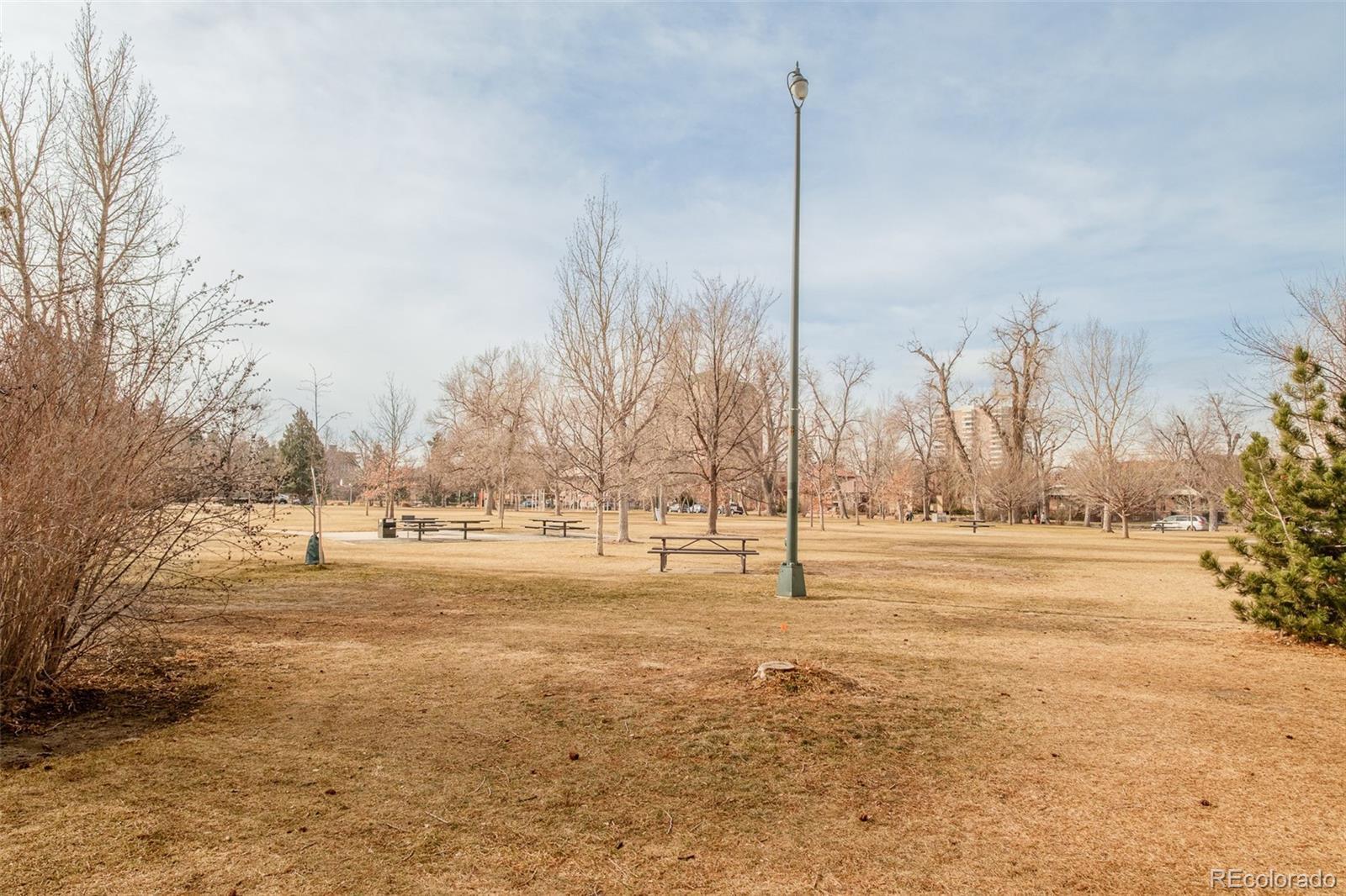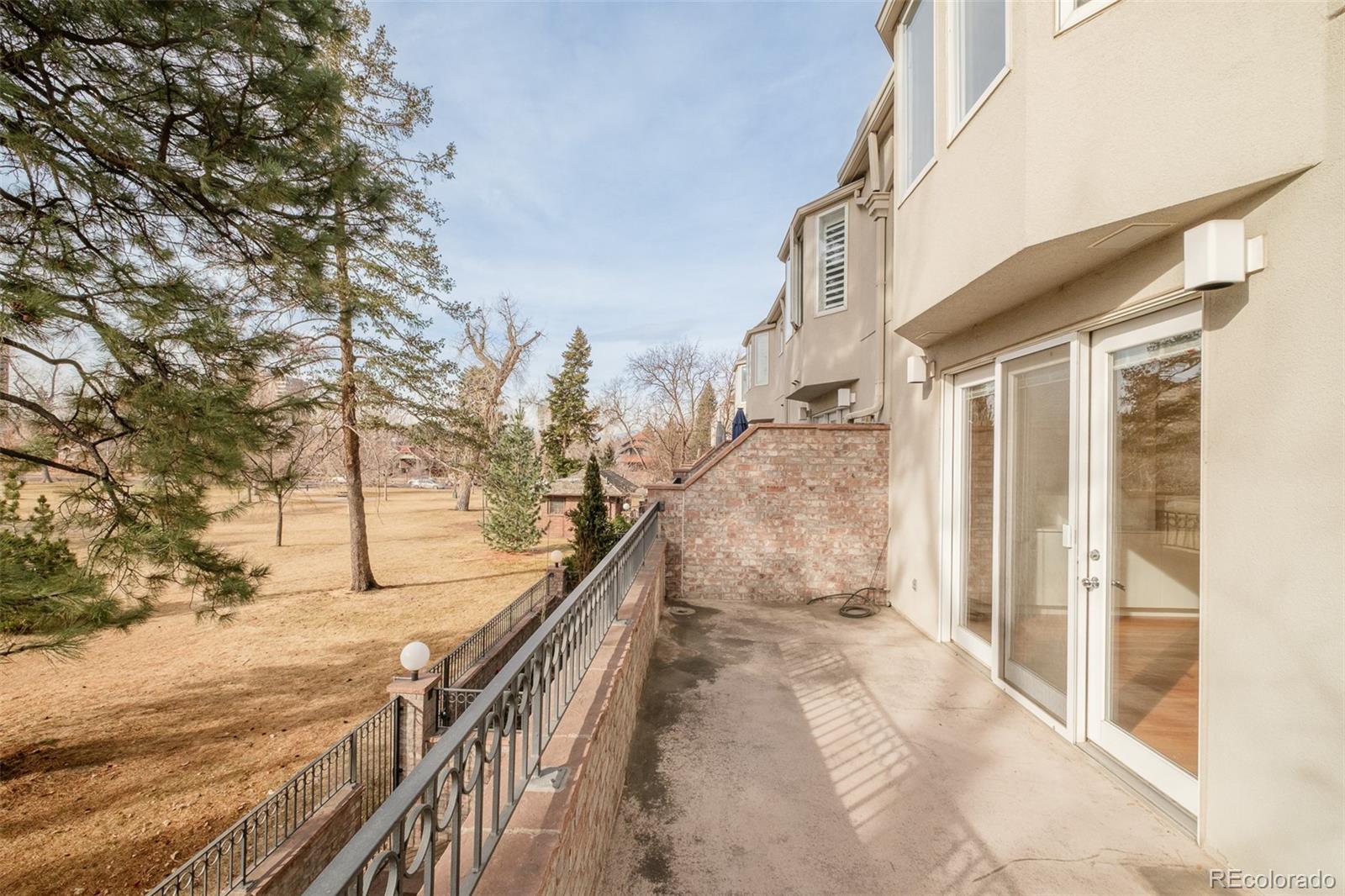 Perfectly poised along the open green of Alamo Placita Park, this coveted END UNIT townhome offers rare, unobstructed park frontage — one of only a handful with true front-row views. Verdant vistas set the tone for elevated living in an unbeatable setting. Built in 1994 and thoughtfully maintained, the residence is refreshed with all new carpet and paint, enhancing its timeless appeal. A newly installed elevator services all three levels. Formal living and dining rooms create a refined introduction, while an open kitchen flows seamlessly into the family room, where built-ins and expansive windows frame lush park views. A mirrored powder bath adds polish. Sliding doors open to a private patio overlooking the park — a seamless extension of the living space. Upstairs, the primary suite is a tranquil retreat with sweeping views, an en-suite bath and walk-in closet. Two additional bedrooms offer flexibility, including one ideal for a home office with direct elevator access. A secondary bath features a new walk-in tub. The finished lower level presents a rec room or office with built-ins and walk-out patio, an additional bedroom and utility space. An attached two-car garage completes the home. Moments from Cherry Creek North and neighborhood favorites such as Syrup, Pablo’s Coffee and Angelo’s Tavern, this residence delivers refined comfort in a truly rare park-front setting.