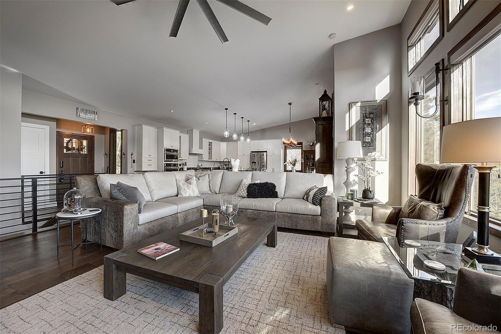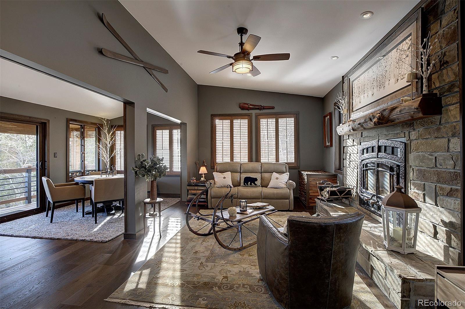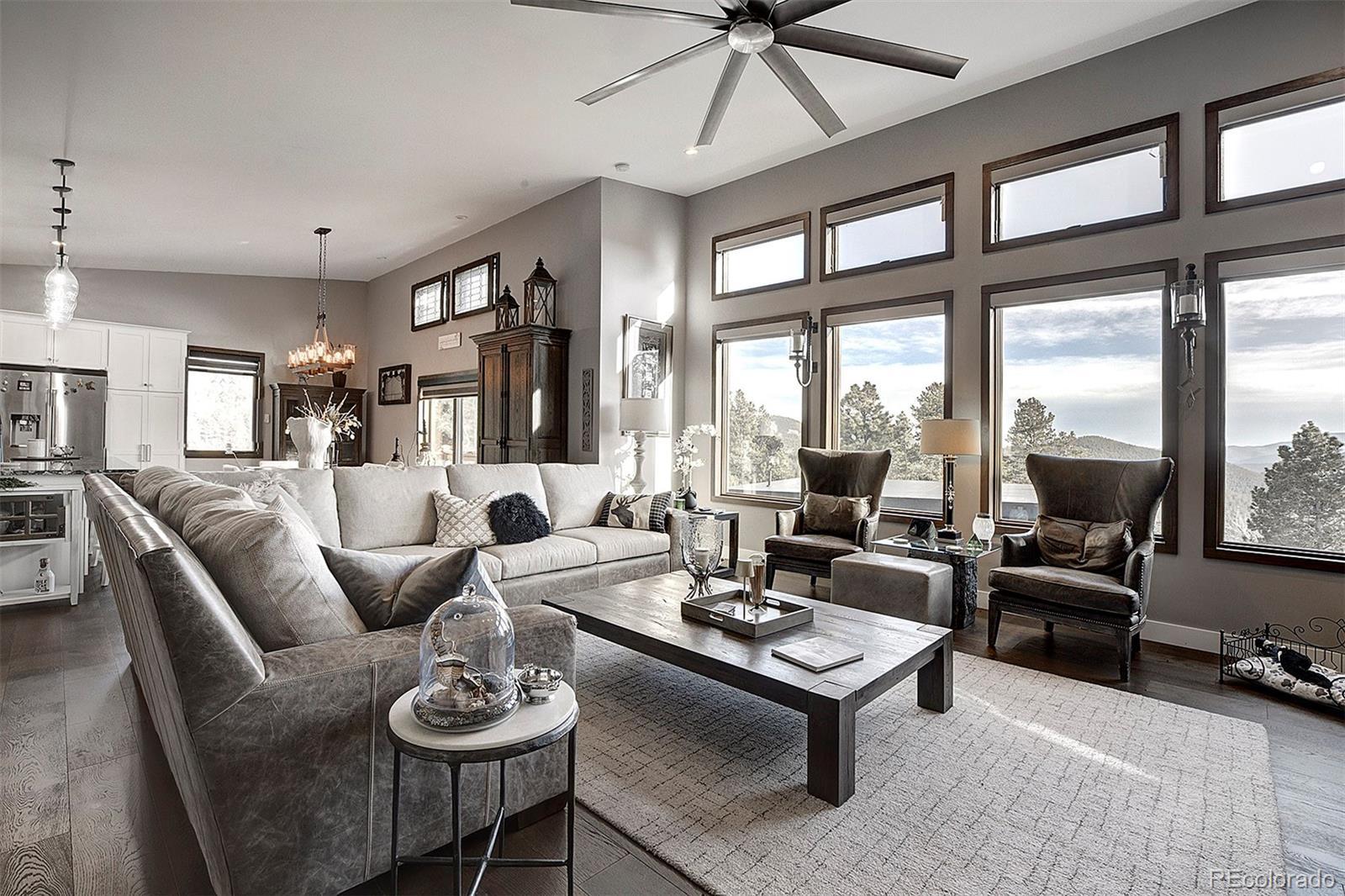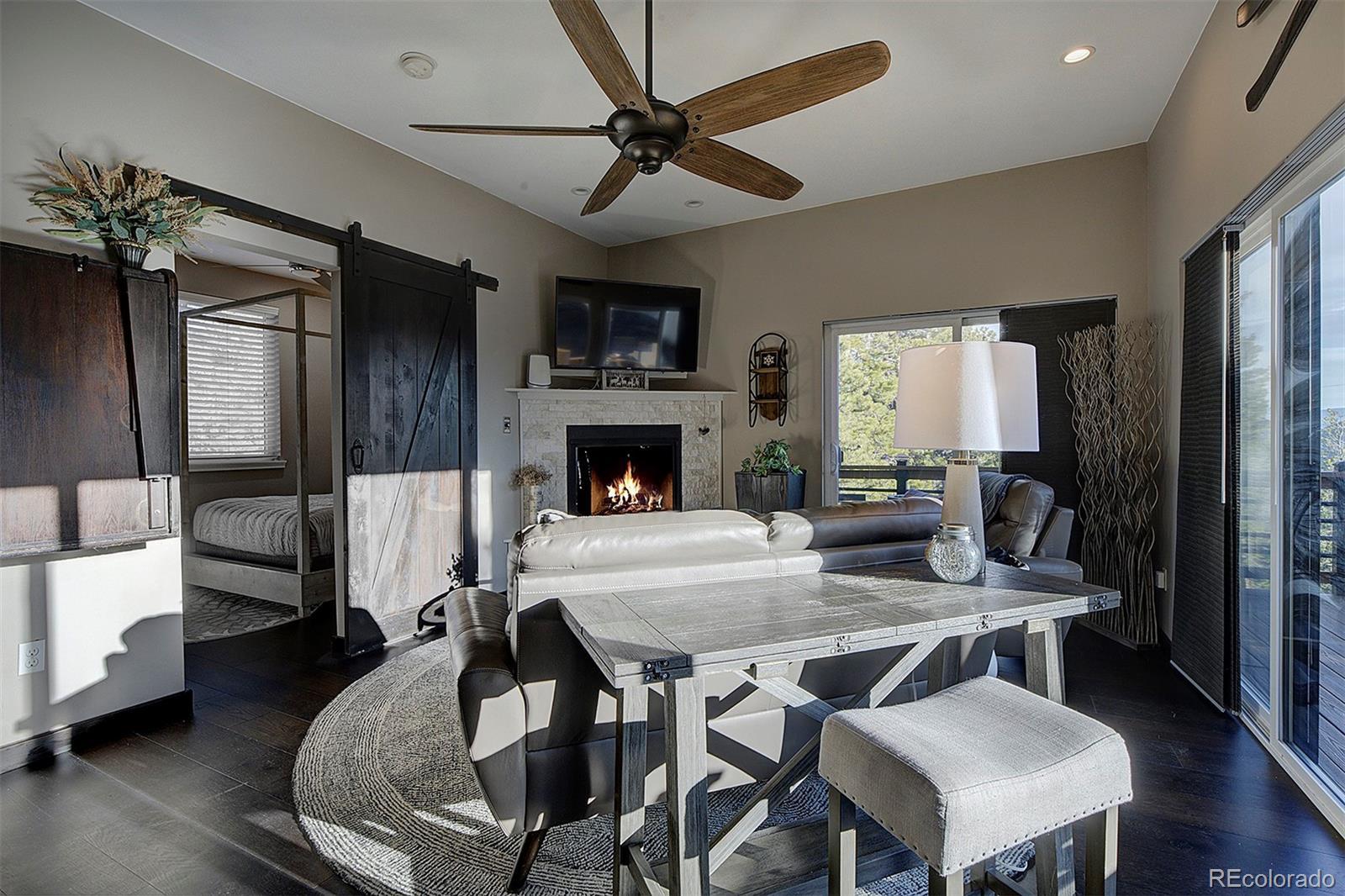 Tucked against protected open space with the Arapaho National Forest just across the street, this exceptional mountain retreat offers rare privacy, panoramic Continental Divide views, and a beautifully appointed guest residence that mirrors the quality of the main home—all without the constraints of an HOA. The main residence is a study in thoughtful craftsmanship and comfort. Warm hardwood floors, custom cabinetry, cast river rock countertops, and Jenn-Air appliances set an elevated tone, while wood-cased solar windows frame ever-changing alpine scenery. In-floor radiant heat, on-demand hot water, advanced water filtration, and remote-controlled blinds ensure modern ease throughout. The lower-level primary suite and private office both walk out to serene outdoor spaces with expansive views, and a wood-burning fireplace anchors the home with classic mountain charm. A heated, finished two-car attached garage with epoxy floors, metal roof, and James Hardie Siding completes the main home’s refined functionality. Above the heated two-car detached garage, the 2015 one bed/one bath ADU feels like a private alpine suite, with hardwood floors, a gas fireplace, barn doors, a generous pantry, and a spa-grade hot tub. Thoughtfully designed and impeccably finished, it's an ideal setting for guests or extended family, while its strong short-term rental history is an added advantage for owners who choose to leverage it. That it is already booked well into the season underscores the property’s proven desirability. A commercial well and advanced septic system serve both residences, with separate gas metering and shared electric. The STR license is not transferable; however, the infrastructure and performance history are firmly in place for a seamless transition. Additional amenities include a greenhouse, versatile shed, high-speed internet, and close proximity to skiing, dining, and gaming. This is mountain living, elevated—and intelligently invested.
