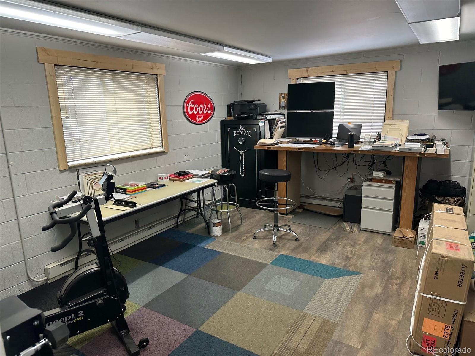 This heated 7200 sq ft warehouse has an office, one studio apartment, a shop bathroom, one utility/break room and one storage room. Well-lit with LED fixtures, easy year-round access, this building is currently occupied by powder coating and wood finish companies. Could be boat storage, mechanic, fabrication shop, bus barn, warehouse, fleet storage, retail or a new business location. This building has conceptual approval from the town of Granby and the building department for the addition of six 1,000 sq ft. 2 beds, one bath, kitchen, dining, living room units to be built on top of the structure. Conveniently located two blocks from main street Granby, this building has endless possibilities. Large exterior fenced yard for more vehicle or additional storage. Set on nine city lots which total just under 1/2 acre. The lot is in the central business district with zero lot line set backs, which allows for additional structures to be built. Buyers should check with the town of Granby for viable business options.