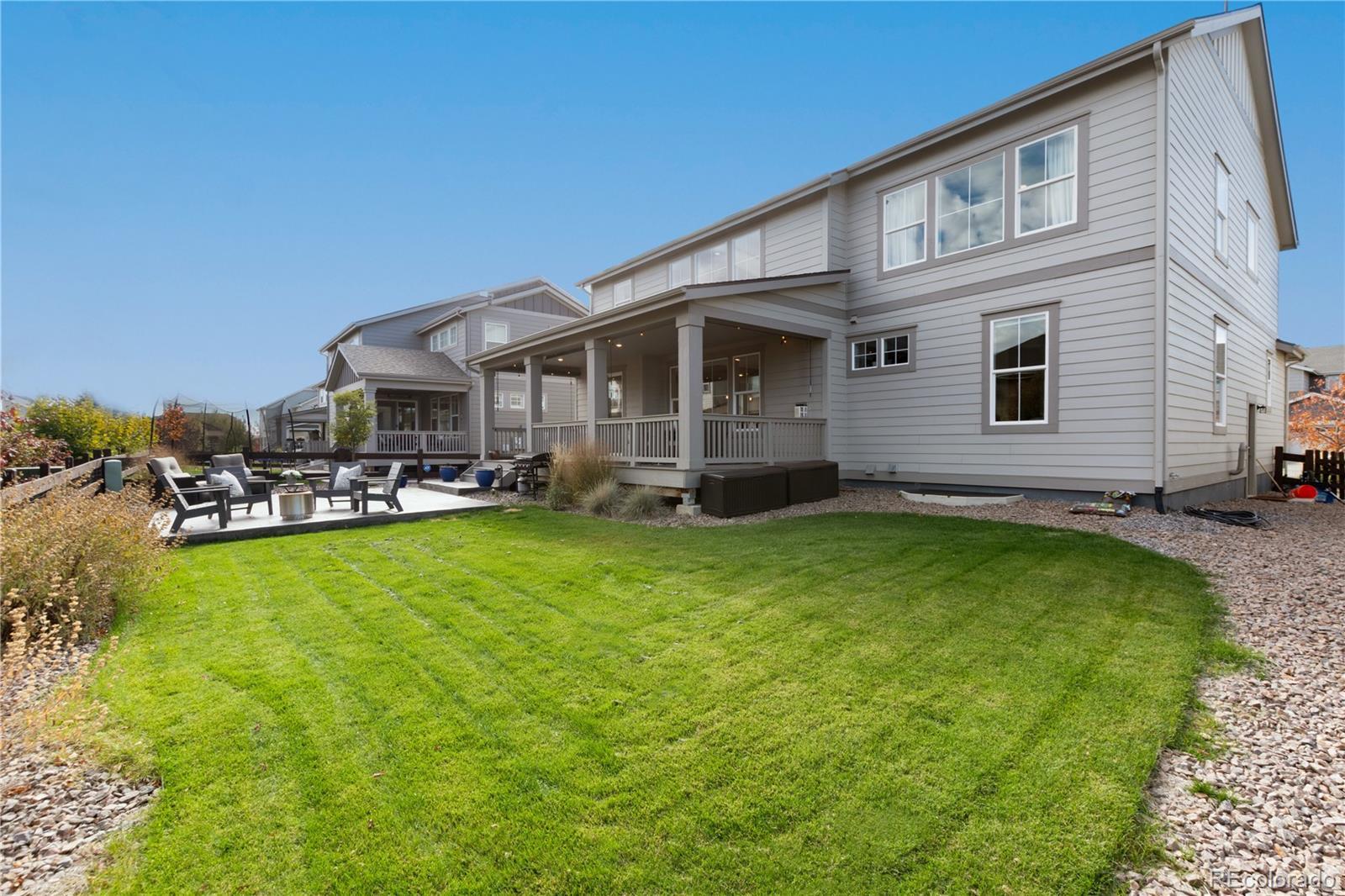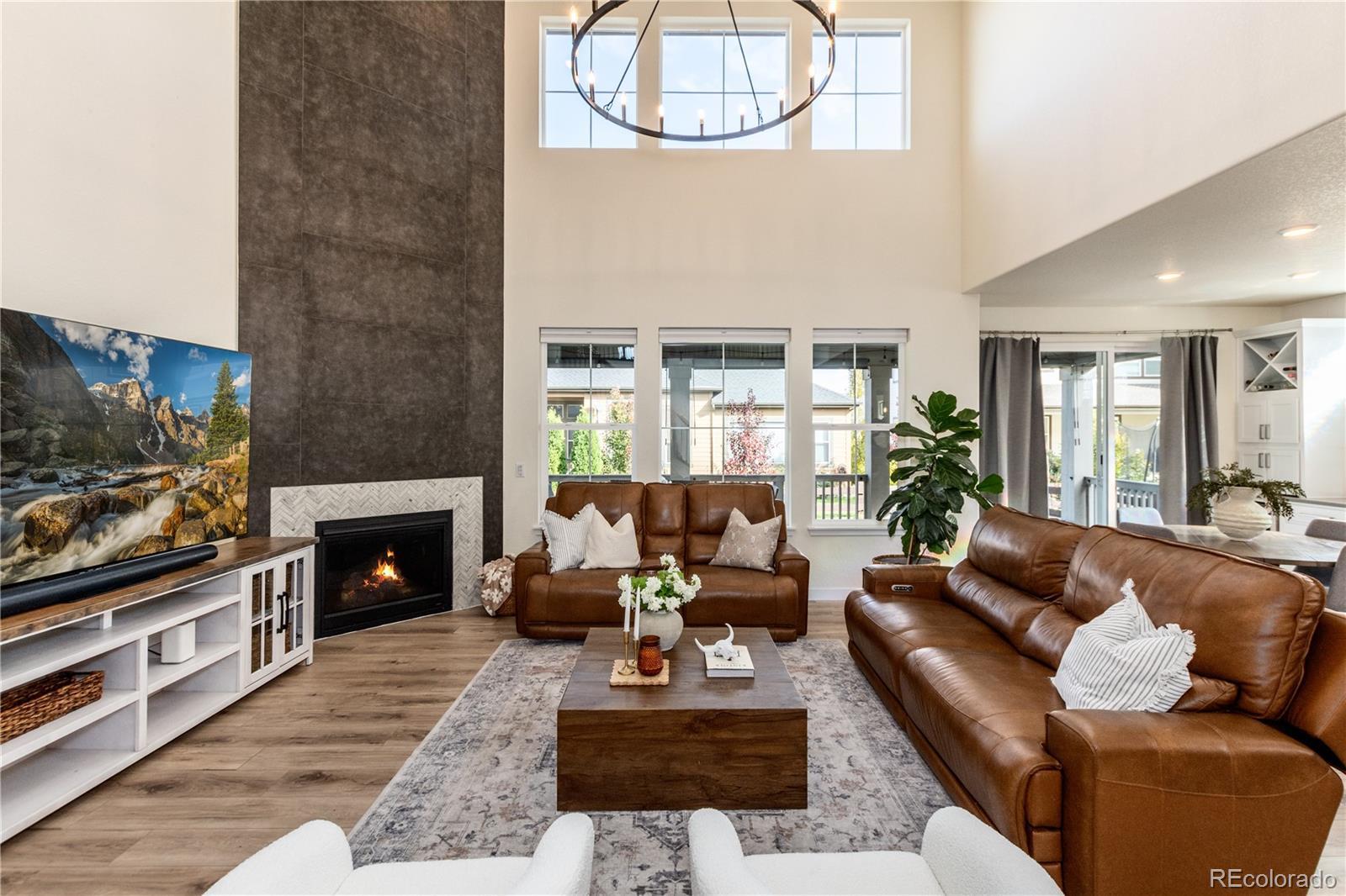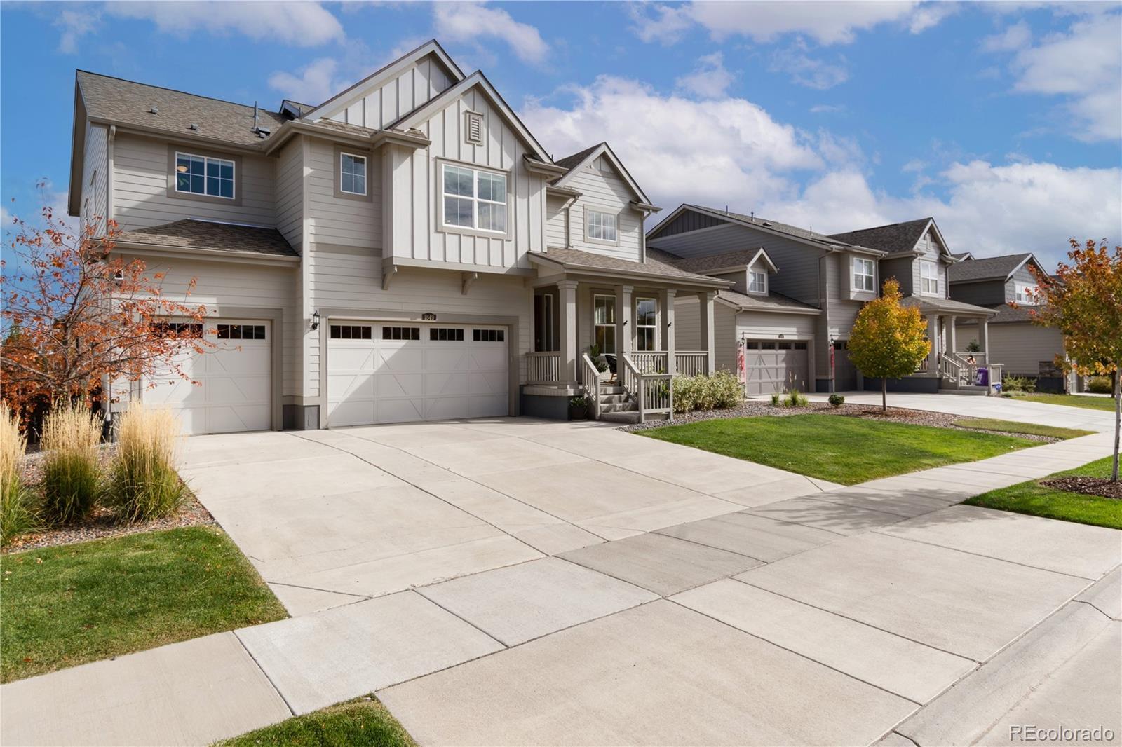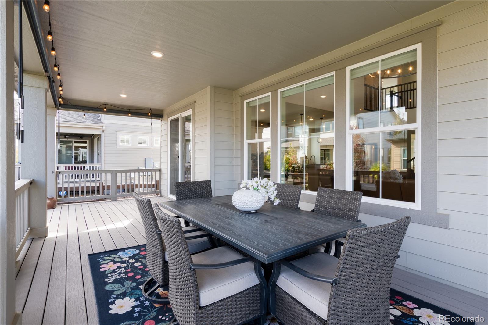 Welcome home to this spacious and thoughtfully designed 5 BDRM, 4 BATH home in the highly sought-after Compass neighborhood of Erie. Step inside to find a welcoming entry and formal dining room that lead into a chef’s kitchen, complete with an oversized island and open flow into the stunning two-story family room with a cozy gas fireplace.The main floor offers a versatile bedroom and full bath, ideal for guests or a home office. Upstairs, you’ll find a large loft with its own bathroom, plus a luxurious primary suite featuring a five-piece bath and a walk-in closet with custom built-ins that conveniently connects to the laundry room. Two additional bedrooms share a well-appointed Jack-and-Jill bath. The finished basement expands your living space with a large recreation room, wet bar, and an additional bedroom. It’s plumbed and ready for a future bathroom, perfect for growing families or entertaining guests. Enjoy Colorado living at its best from the welcoming front porch, an ideal spot to relax with coffee and watch Erie’s famous hot air balloons drift by. The backyard offers even more outdoor living with a covered deck featuring custom shades for privacy, plus an extended stamped-concrete patio perfect for gatherings. The oversized three-car garage is finished with epoxy floors, and additional updates include new flooring, two furnaces, and a radon mitigation system. Located in one of Erie’s most desirable communities—just minutes from parks, trails, top-rated schools, and charming downtown Erie—this home perfectly blends luxury, comfort, and small-town charm.