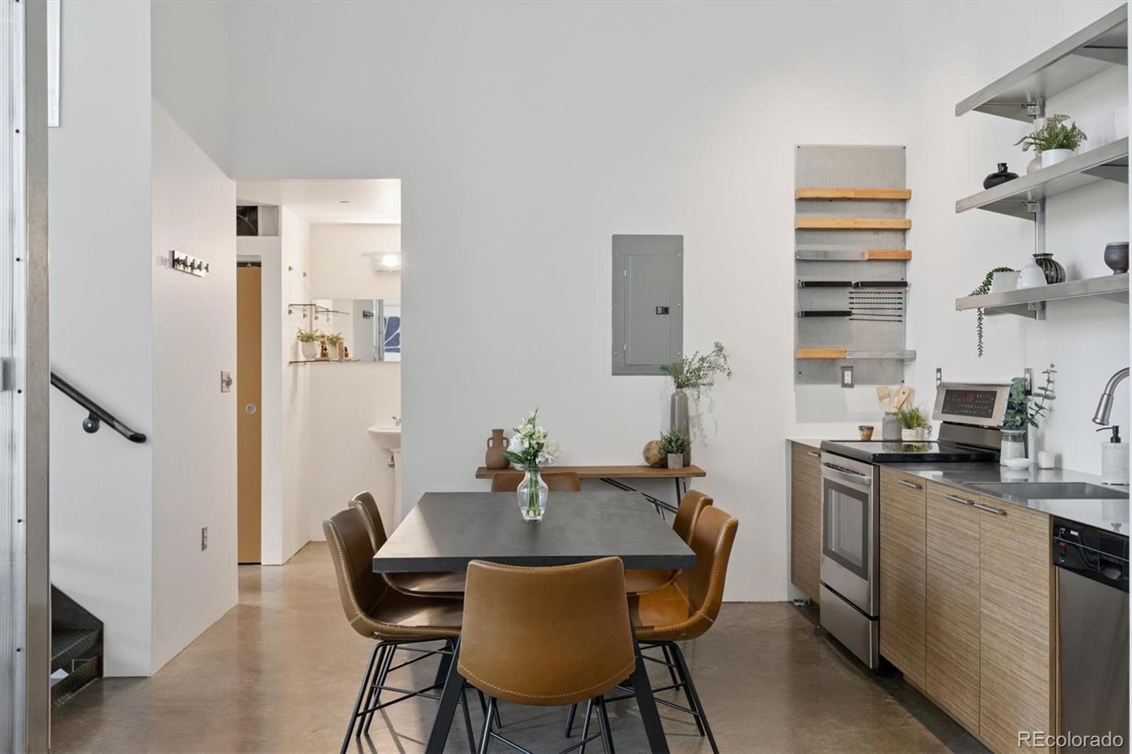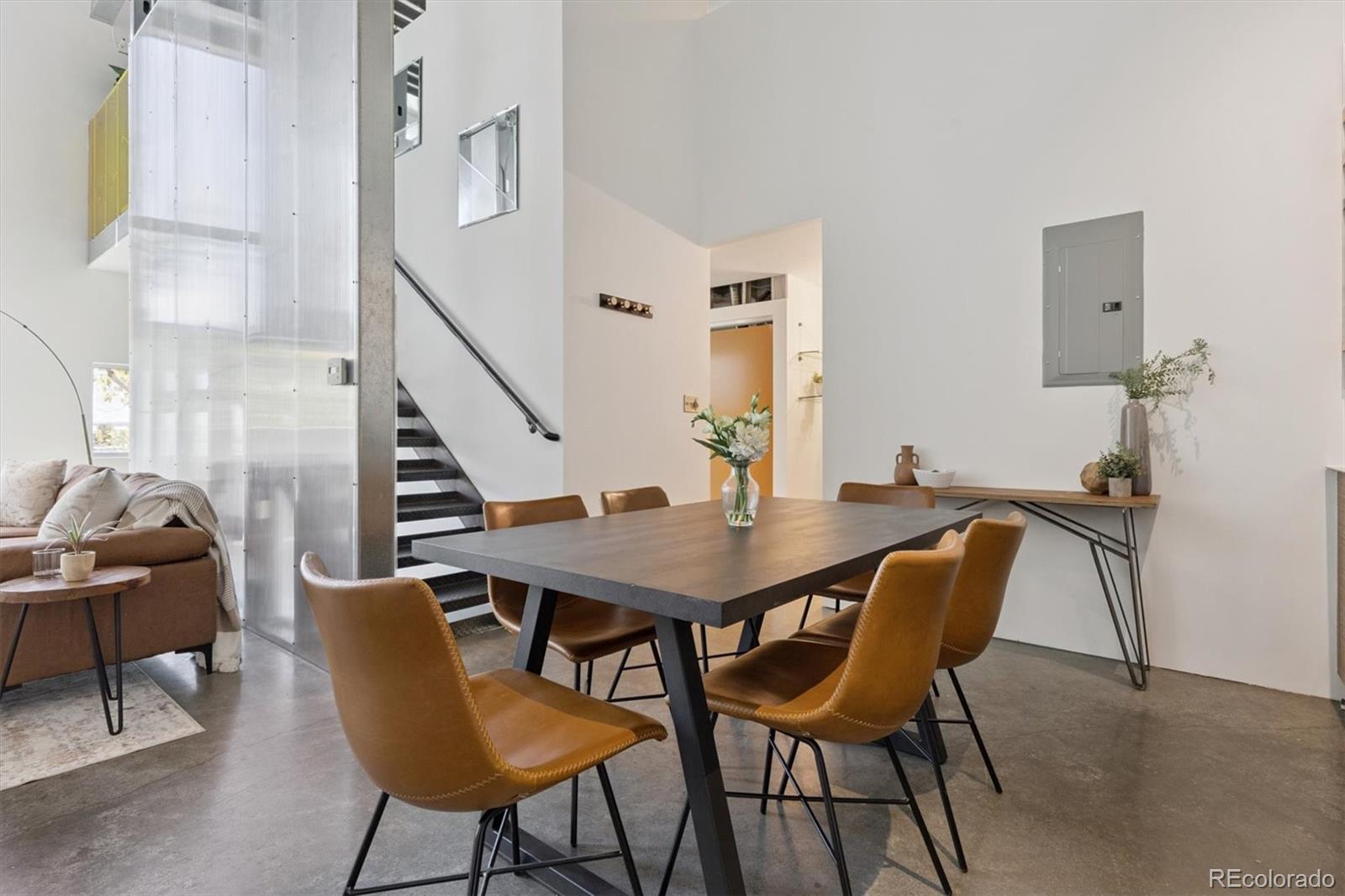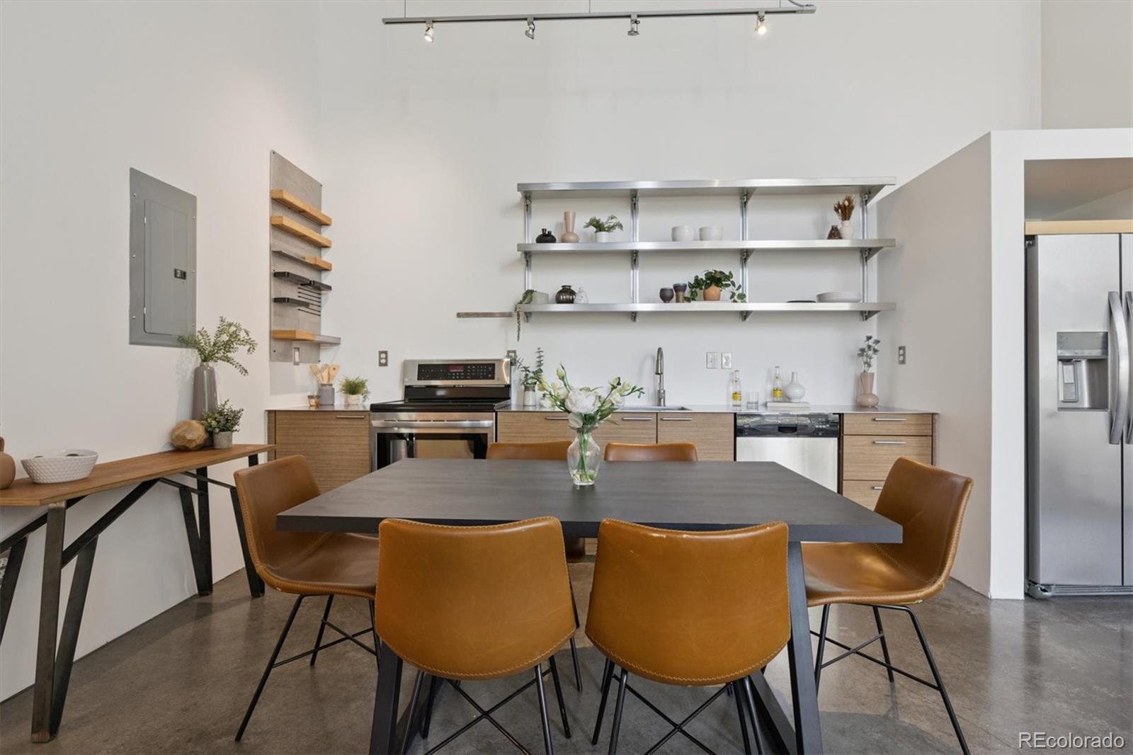 Open and airy modern industrial live/work space located within the multi-award winning TAXI community. This top floor loft boasts unique architectural features such as a 25' high ceiling, polished concrete floors and large custom picture view windows. This west facing unit has abundant natural light and includes views of the front range's iconic peaks and colorful sunsets. This open concept dwelling has 2 large bedroom spaces, which have been meticulously designed for multi-use functionality. There are 2 full ammenity bathrooms, featuring one with a deep soaker tub. The Live/Work building and property has been meticulously maintained and includes a full suite of appliances including washer and dryer. Walk out your front door and take advantage of all that the RiNo Art District and TAXI community has to offer. The community is located across from the South Platte River Bicycle Trail System, the new RiNo Art Park and a short walking distance to the A Line Light Rail with quick access to Union Station and DIA. The community itself is a mixed-use community of creative residents, innovators, entrepreneurs and businesses collaborating to shape industries such as sustainability, tech, design, architecture, social enterprise and the arts. As an owner at the TAXI community, you will have access to an amazing array of amenities, including Zero Hour Coffee Shop & Restaurant, co-working space, galleries, picnic/BBQ area, skateboard park, community garden and bike maintenance station. The TAXI community also has ongoing parties, events, and lectures. Additional Community Pool and Gym access available too. Please reach out to the listing agent for a full list of updates and to learn more about the home and community. This loft can be used for a residence, business, or live/work. Other similar units available. Please reach out to Listing agents for current details.