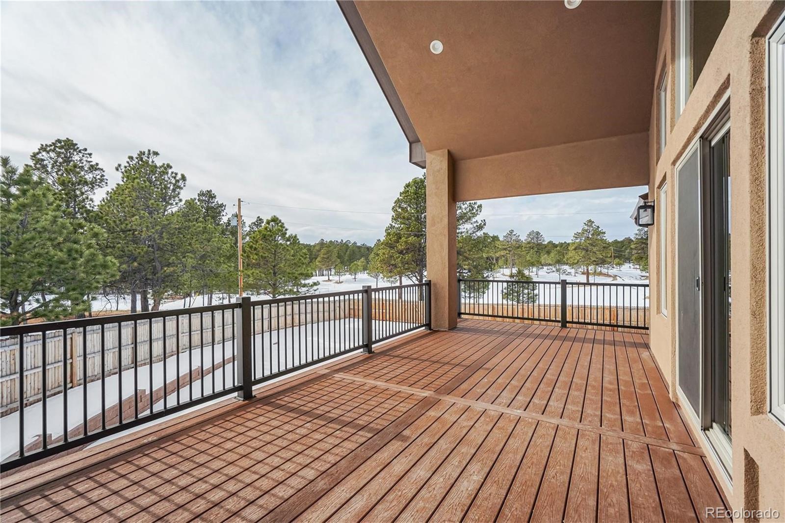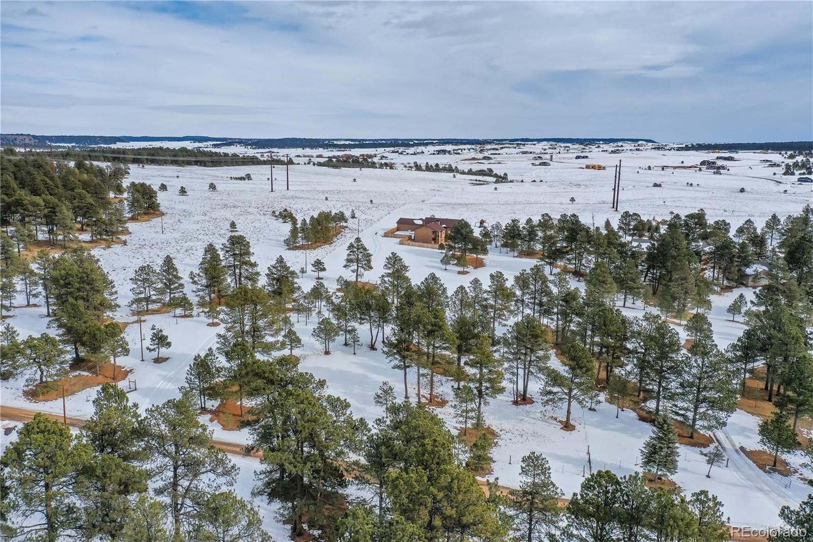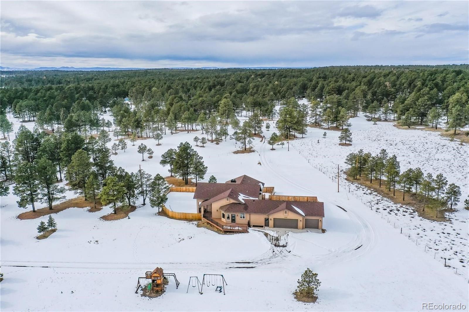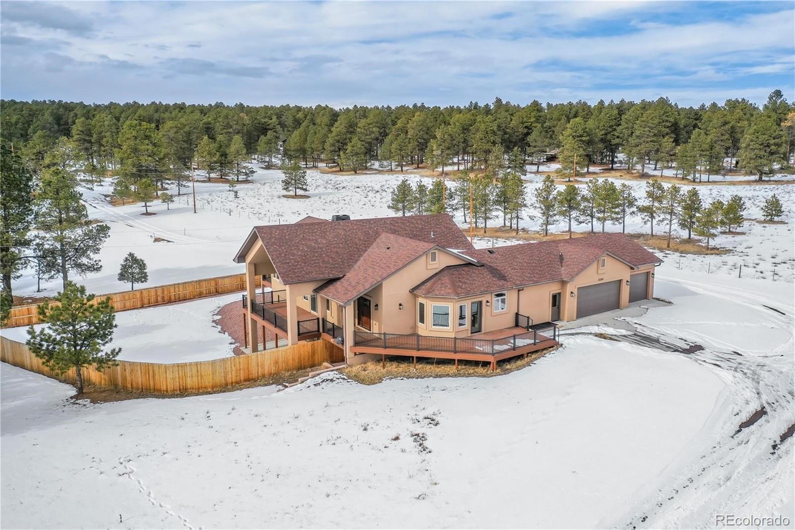 Built in 2020!! Custom rancher with over 5,000 square feet in desirable Black Forest w/ 5 acres of gorgeous mature pines and lush meadows surrounded by larger acreage properties. 6 bedrooms, 6 baths, huge 3 car finished attached garage with over 1,100 sq ft, finished walk-out basement, alder doors w/ beautiful stain throughout and a huge composite and metal deck spanning the entire length of the home. Gorgeous high end kitchen with 2 sinks, 2 dishwashers, a commercial grade refrigerator, 8 burner gas cook-top with custom hood, Quartz counters, farmhouse sink, huge island, double oven, 10x8 pantry and high end cabinetry. The property has no covenants or HOA so horses, chickens, RV parking and outbuildings are allowed. The property has natural gas and has a propane automatic generator in the event of power loss. Central air conditioning, radon mitigation system, Quartz counters throughout. Two laundry rooms both with sinks and tons of storage - one on the main level and one in the lower level. Dedicated dog wash shower. 5 of the 6 bedrooms are ensuite and have walk-in closets. The main level has the primary suite as well as secondary suite with private bath. The main primary suite has vaulted ceilings, a private composite deck, 12x9 walk-in closet and a spa like bath with shower, standalone tub, double vanity with two back-lit mirrors. Expansive great room with vaulted beamed ceilings, a wall of windows, a walk-out to the covered composite deck, gas fireplace w/ brick surround, custom built-ins with Quartz counters. Dining area with bay window and dedicated coffee bar with Quartz counters and matching cabinetry. Large mud room off of the garage with built-ins for storage and seating. Two large privacy fenced backyards. Walk-out lower level spacious great room w/ shiplap. High speed internet. Quick commute to Colorado Springs or Denver. Why wait for a new home when this one is ready and basically new? See this home quickly!!