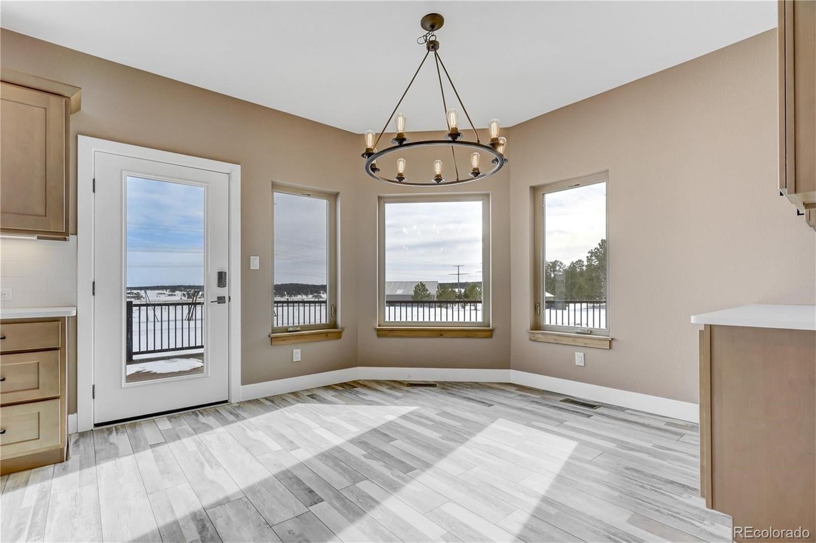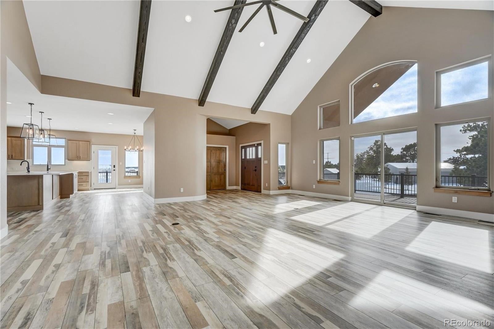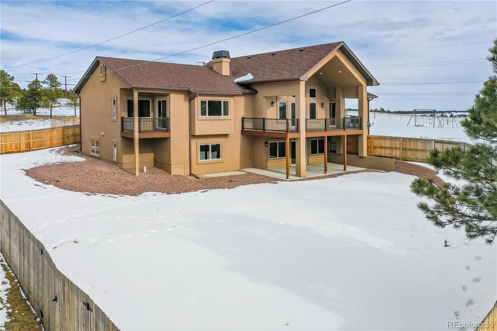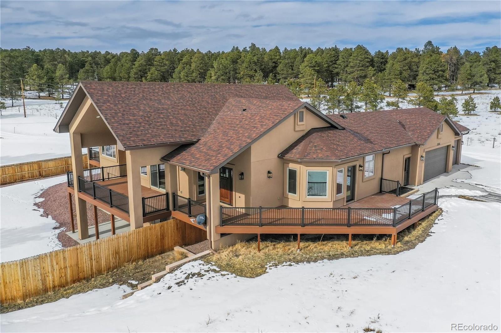 Built in 2020!! Custom rancher with over 5,000 square feet in desirable Black Forest w/ 5 acres of gorgeous mature pines and lush meadows surrounded by larger acreage properties. 6 bedrooms, 6 baths, huge 3 car finished attached garage with over 1,100 sq ft, finished walk-out basement, alder doors w/ beautiful stain throughout and a huge composite and metal deck spanning the entire length of the home. Gorgeous high end kitchen with 2 sinks, 2 dishwashers, a commercial grade refrigerator, 8 burner gas cook-top with custom hood, Quartz counters, farmhouse sink, huge island, double oven, 10x8 pantry and high end cabinetry. The property has no covenants or HOA so horses, chickens, RV parking and outbuildings are allowed. The property has natural gas and has a propane automatic generator in the event of power loss. Central air conditioning, radon mitigation system, Quartz counters throughout. Two laundry rooms both with sinks and tons of storage - one on the main level and one in the lower level. Dedicated dog wash shower. 5 of the 6 bedrooms are ensuite and have walk-in closets. The main level has the primary suite as well as secondary suite with private bath. The main primary suite has vaulted ceilings, a private composite deck, 12x9 walk-in closet and a spa like bath with shower, standalone tub, double vanity with two back-lit mirrors. Expansive great room with vaulted beamed ceilings, a wall of windows, a walk-out to the covered composite deck, gas fireplace w/ brick surround, custom built-ins with Quartz counters. Dining area with bay window and dedicated coffee bar with Quartz counters and matching cabinetry. Large mud room off of the garage with built-ins for storage and seating. Two large privacy fenced backyards. Walk-out lower level spacious great room w/ shiplap. High speed internet. Quick commute to Colorado Springs or Denver. Why wait for a new home when this one is ready and basically new? See this home quickly!!
