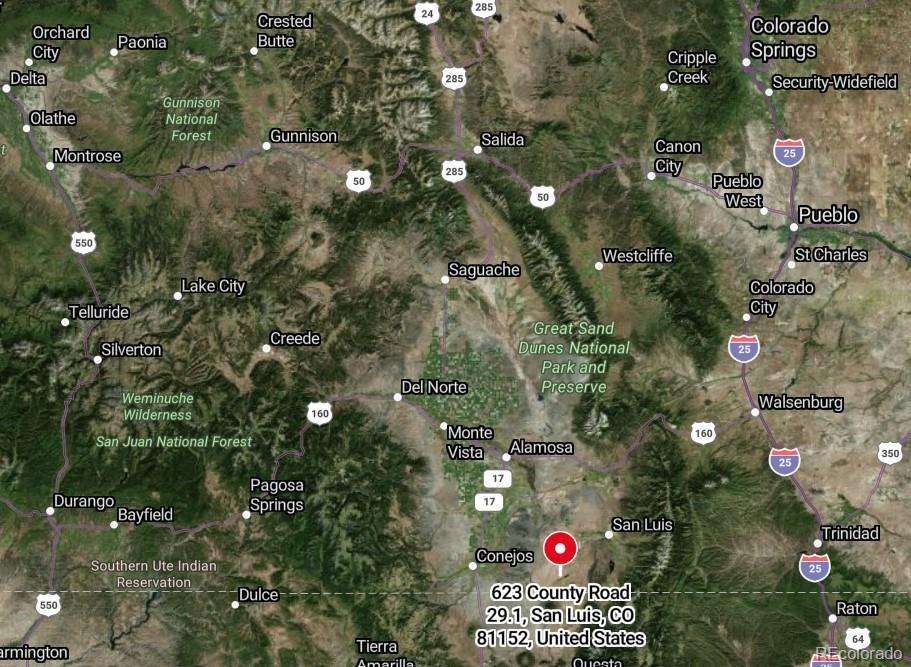 It's an oversized 20 acre piece of Colorado for your home where the antelope roam; where its quiet and off the beaten path! In the southern part of the San Luis Valley, this property is close to the NM border, where it's fun to drop down into Taos or Red River for breakfast and shopping or head north to the Fort Garland Museum, the Great Sand Dunes or several wildlife areas. Because this property is surrounded by the beauty of the Sangre de Cristo and the San Juan Mountain Ranges, be sure to bring your camera when you visit and be ready for a pronghorn antelope to dart by! Note there are no build times nor an HOA. County building codes apply.