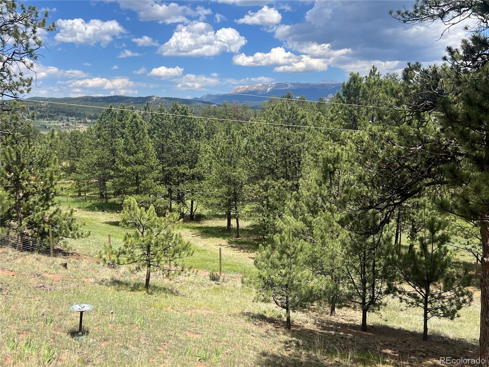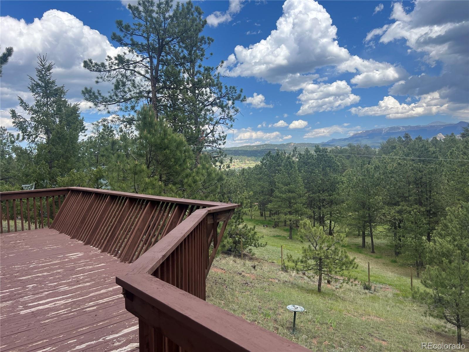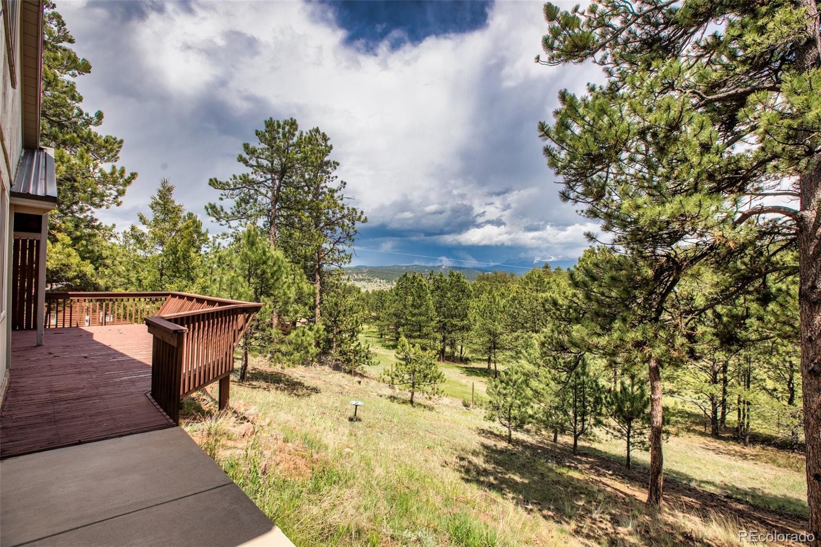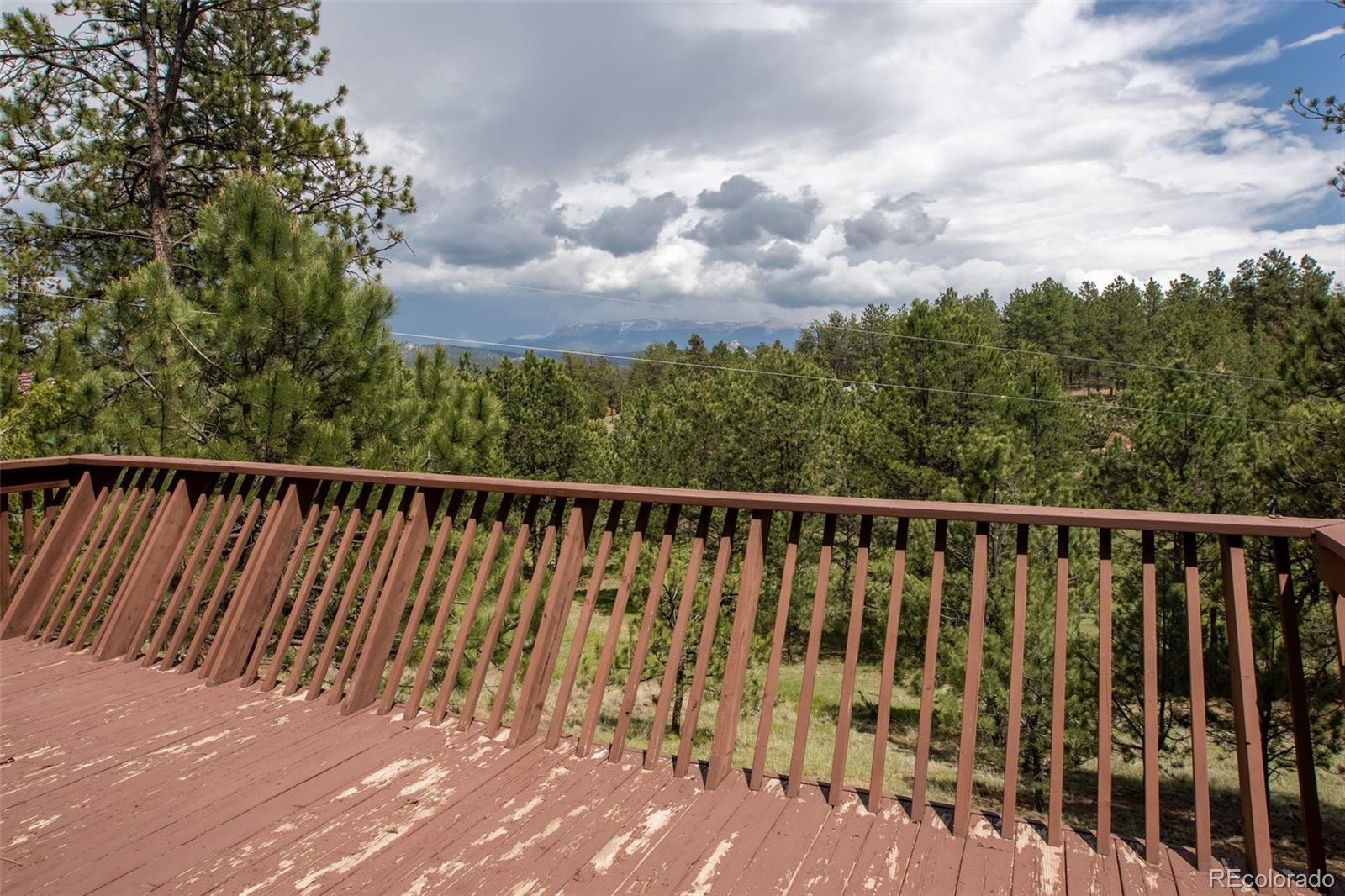 Lovely home on 1.93 treed acres! BIG Pikes Peak views from the deck, kitchen/dining area, living room and primary bedroom. Great floor plan with spacious rooms and lots of windows that provide plenty of natural lighting. There is tile flooring on the main level and all the bedrooms have carpet. Hardi board siding and a metal roof provide a low maintenance home. The two car attached garage is level with the home. The deck provides a private setting over looking the wooded lot and the mountains. This home was loved by a family for many years and is just waiting for a new buyer to love it. It's situated a ways off of the road providing privacy. The lot is all usable and has lots of mature pines. A recent appraisal was completed and is available for serious buyers