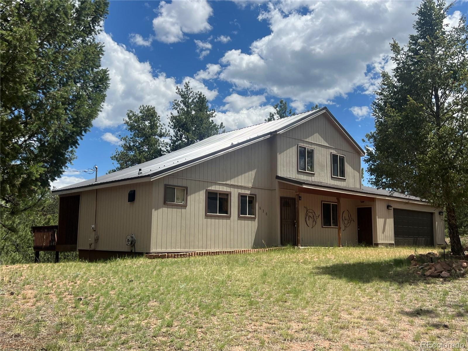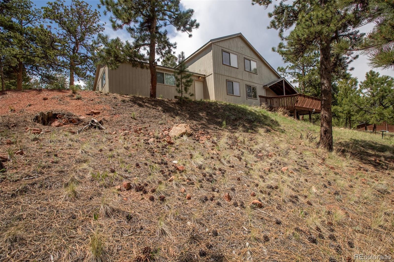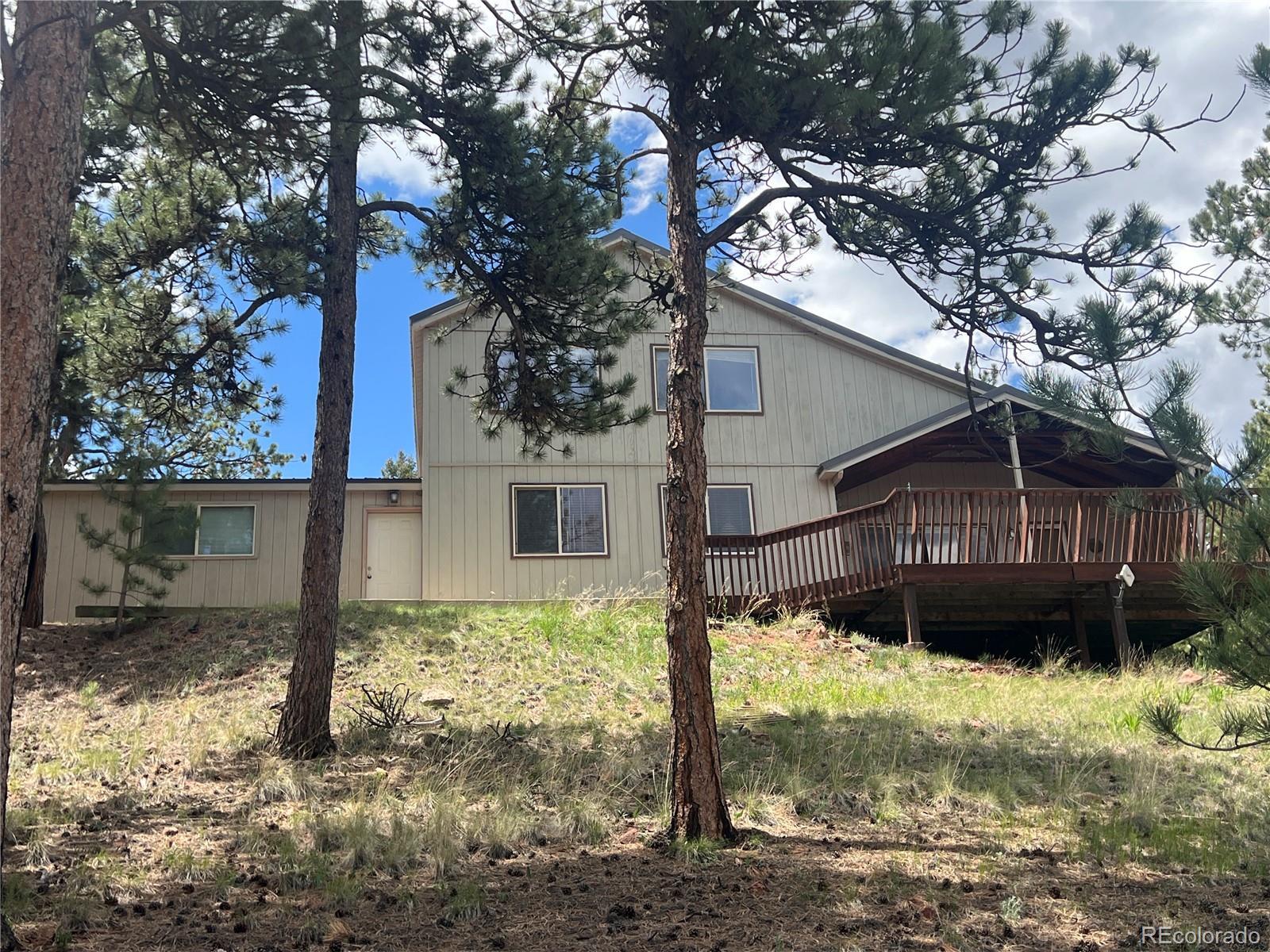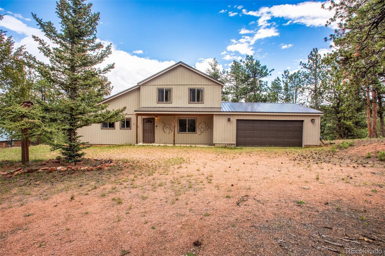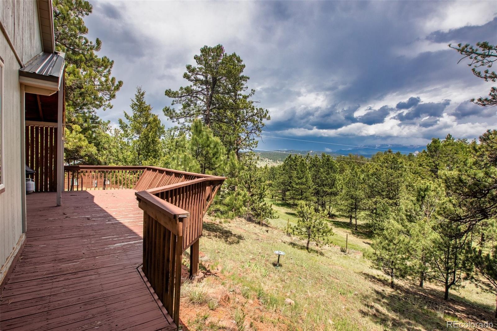 Lovely home on 1.93 treed acres! BIG Pikes Peak views from the deck, kitchen/dining area, living room and primary bedroom. Great floor plan with spacious rooms and lots of windows that provide plenty of natural lighting. There is tile flooring on the main level and all the bedrooms have carpet. Hardi board siding and a metal roof provide a low maintenance home. The two car attached garage is level with the home. The deck provides a private setting over looking the wooded lot and the mountains. This home was loved by a family for many years and is just waiting for a new buyer to love it. It's situated a ways off of the road providing privacy. The lot is all usable and has lots of mature pines. A recent appraisal was completed and is available for serious buyers
