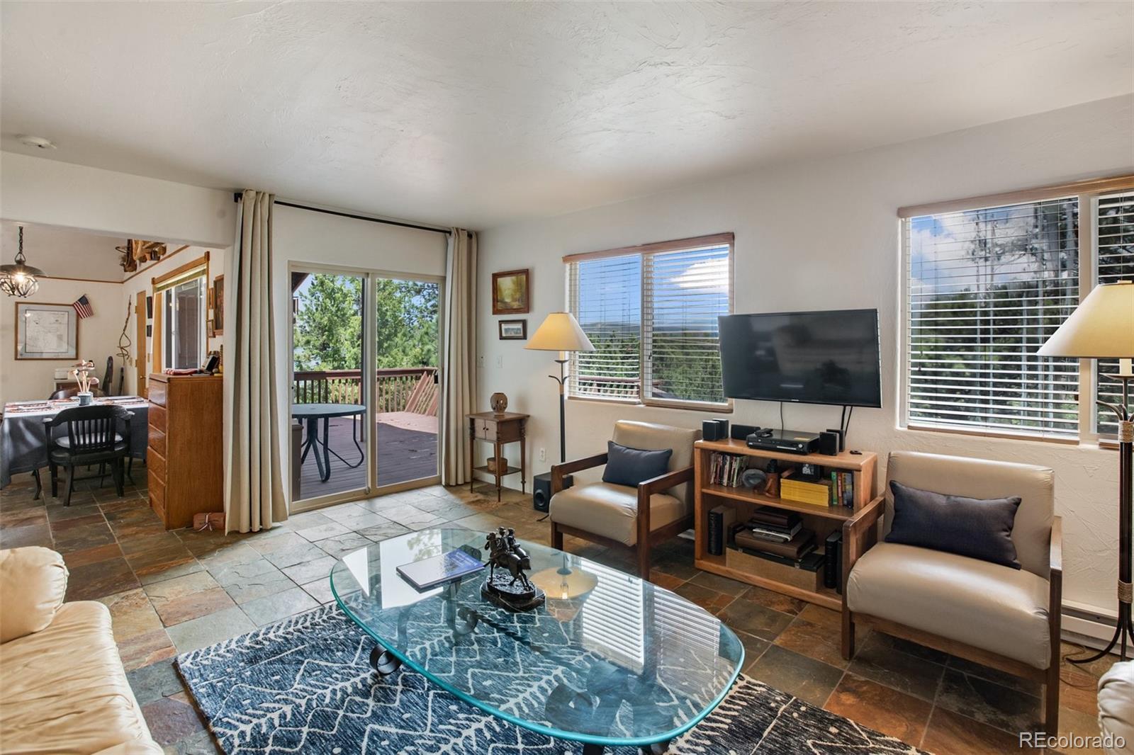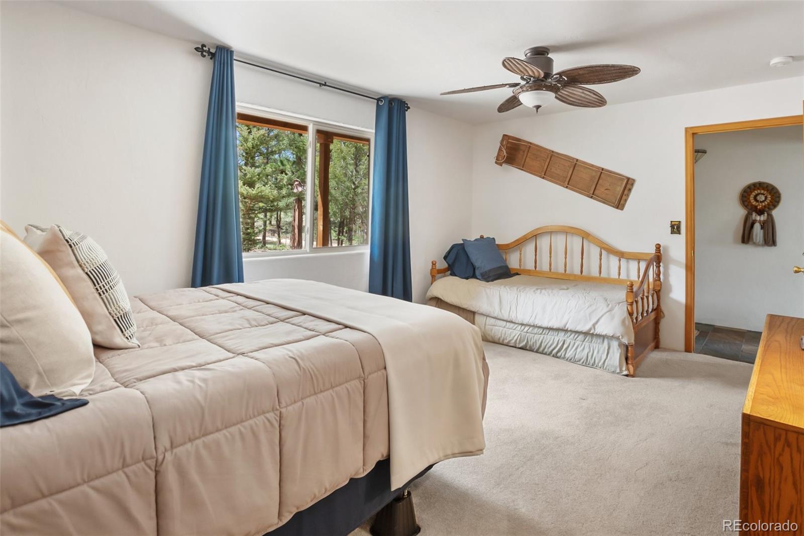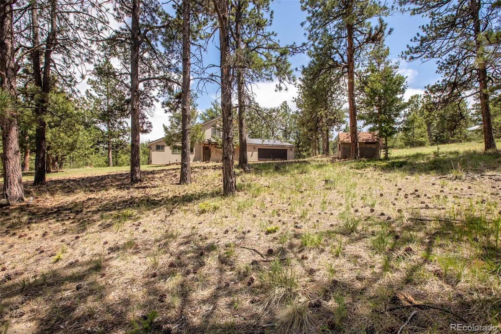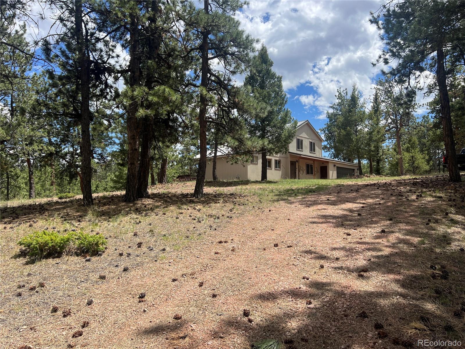 Lovely home on 1.93 treed acres! BIG Pikes Peak views from the deck, kitchen/dining area, living room and primary bedroom. Great floor plan with spacious rooms and lots of windows that provide plenty of natural lighting. There is tile flooring on the main level and all the bedrooms have carpet. Hardi board siding and a metal roof provide a low maintenance home. The two car attached garage is level with the home. The deck provides a private setting over looking the wooded lot and the mountains. This home was loved by a family for many years and is just waiting for a new buyer to love it. It's situated a ways off of the road providing privacy. The lot is all usable and has lots of mature pines. A recent appraisal was completed and is available for serious buyers