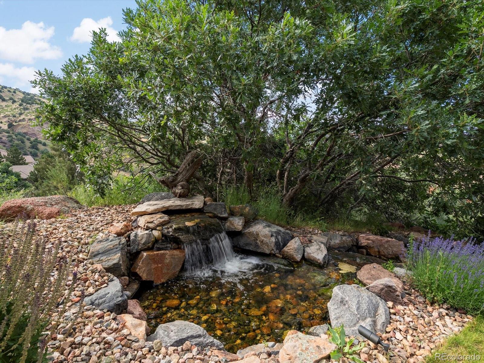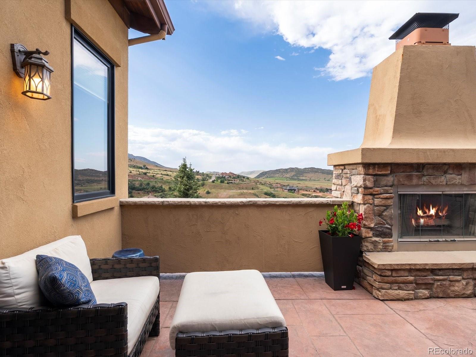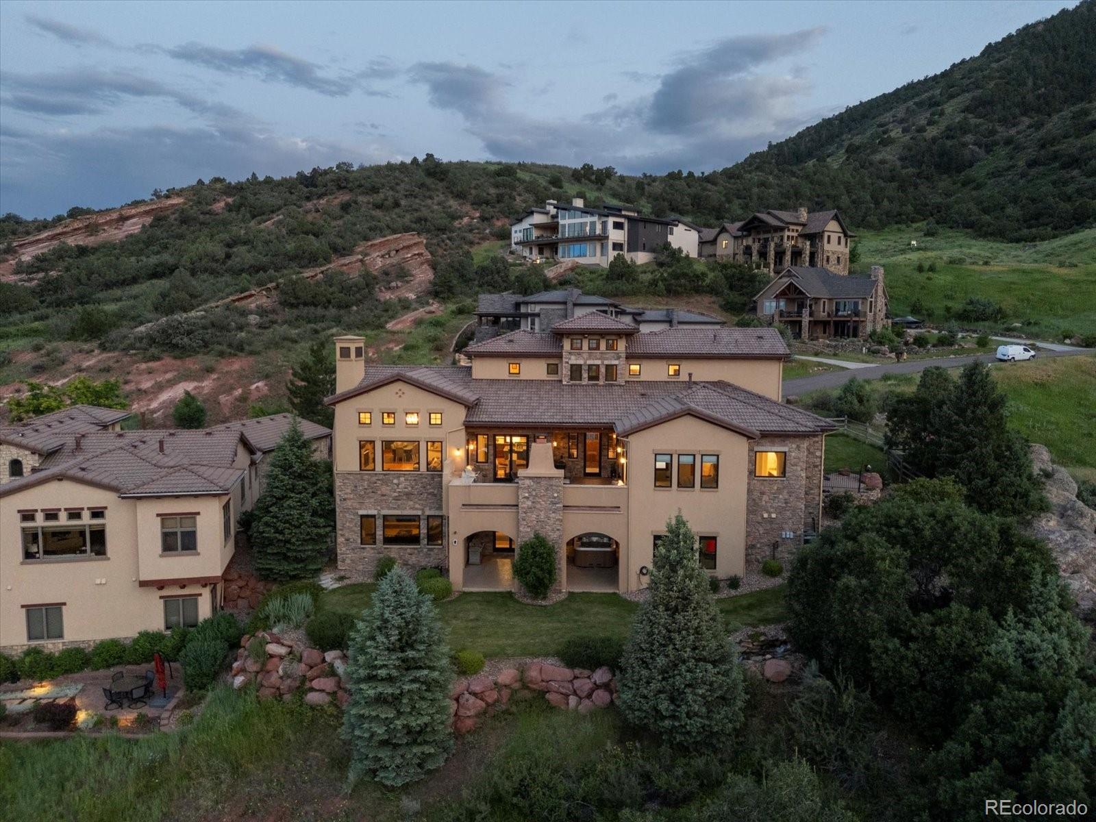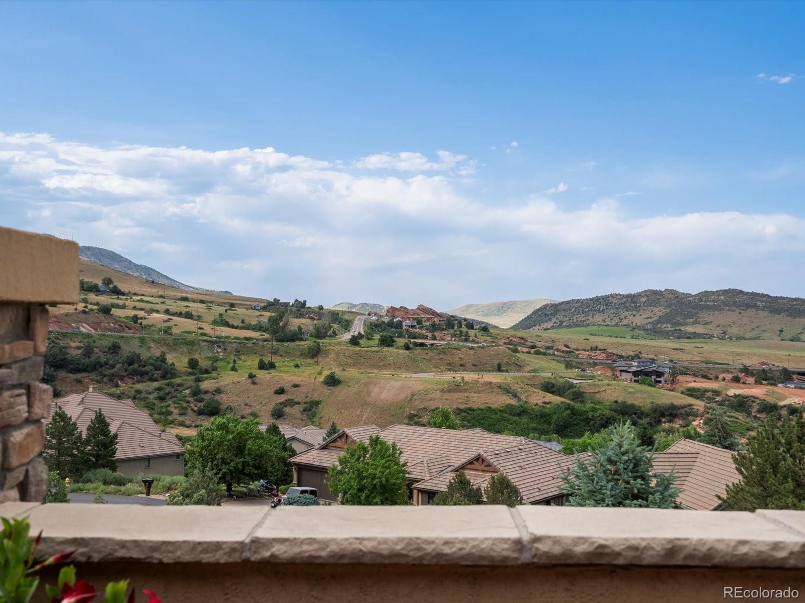 Tucked into a peaceful corner of the coveted Willow Springs North neighborhood, this expansive custom home lives like a ranch home and blends luxurious living with the natural beauty of the Colorado foothills. A short golf cart ride to Red Rocks Country Club and direct access to over 800 acres of private open space for hiking, biking, and horseback riding, this home offers both adventure and retreat. Enter through a private courtyard with a tranquil water feature into a light-filled interior with soaring ceilings, fresh paint, updated lighting, and beautiful wood and tile floors. The heart of the home is an open-concept kitchen and living room with massive windows framing mountain and city views, a brick gas fireplace, and seamless flow to the formal dining room and wet bar. The chef’s kitchen features alder cabinetry, granite counters, walk-in pantry, Sub-Zero fridge, Wolf gas stove, island with extra sink, and eat-in area that opens to a partially covered patio with built-in gas grill and fireplace. Perfect for relaxing sunsets and stunning downtown views. The main-floor primary suite includes a deck walkout, dual vanities, jetted tub, oversized shower, huge walk-in closet, and access to the partially fenced backyard with a waterfall feature and open space for privacy. A large office, laundry room, powder room, additional bedroom with en-suite bath, and mudroom off the heated 4-car garage with EV outlet complete the main level. Upstairs are 2 more bedrooms, each with en-suite baths, walk-in closets, and Juliet balconies, plus a loft with wood beams and views of the rock outcroppings and courtyard. The walk-out lower level features a spacious workout room, rec space, fireplace, wet bar, wine cellar, gym, ¾ bath, storage room, covered patio with hot tub, retractable shades, and TV hookups. Additional highlights: 5 furnaces with room-by-room thermostats, 2 hot water heaters, and whole-house Sonos audio. A rare retreat minutes from modern conveniences.
