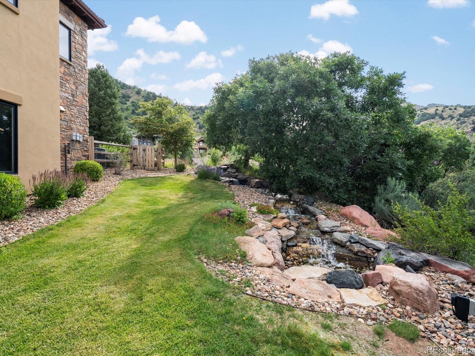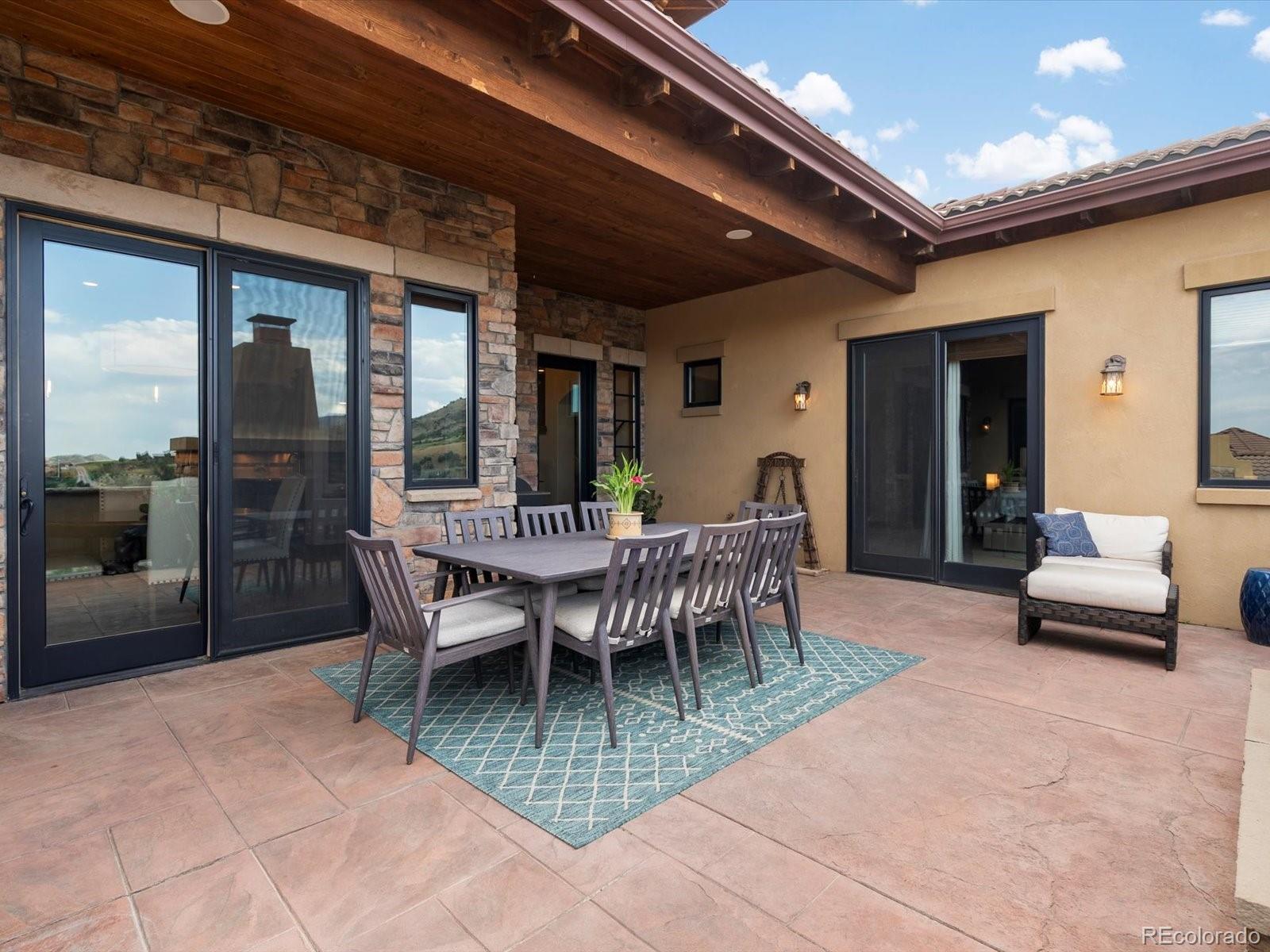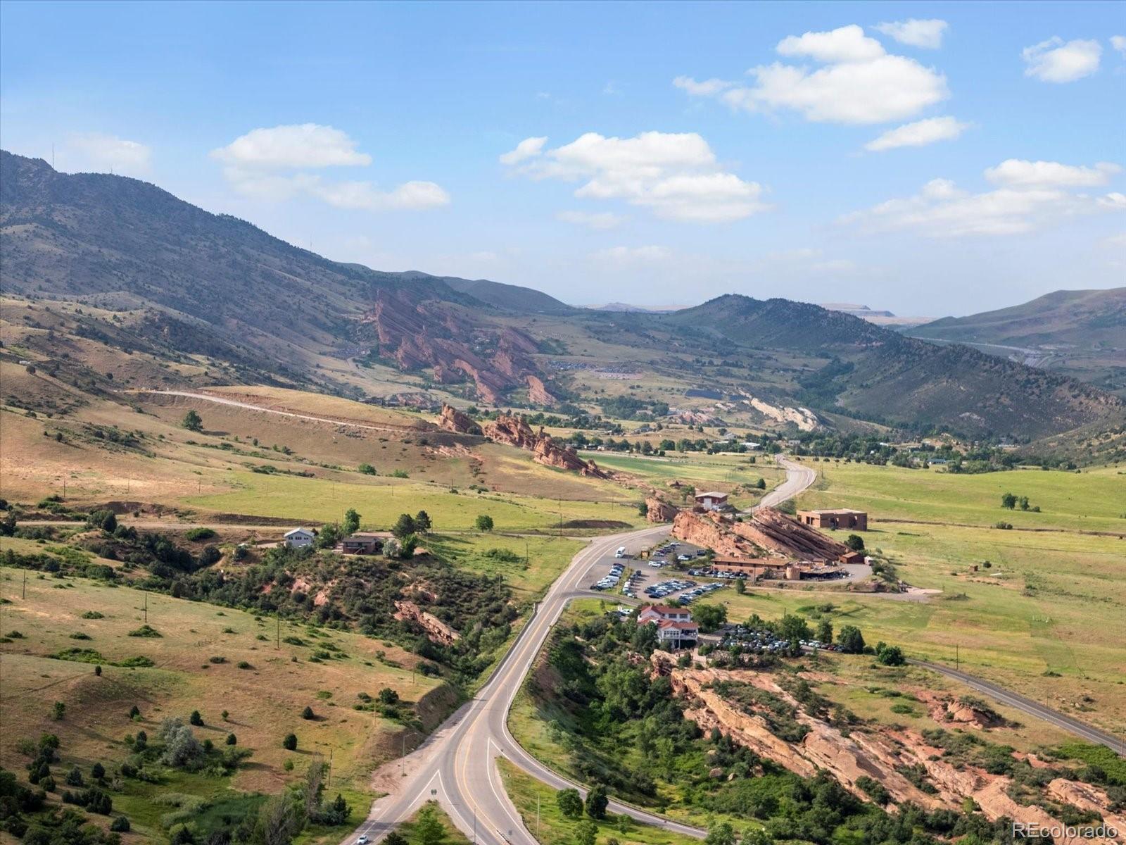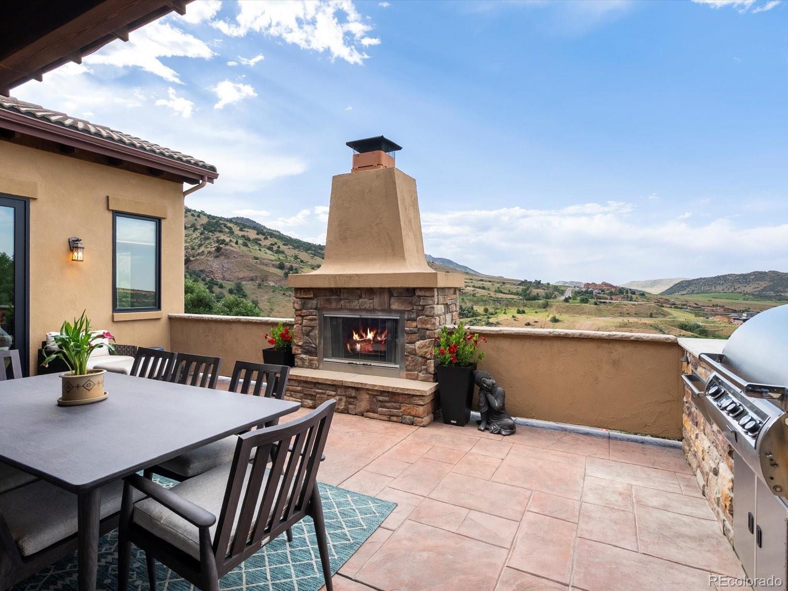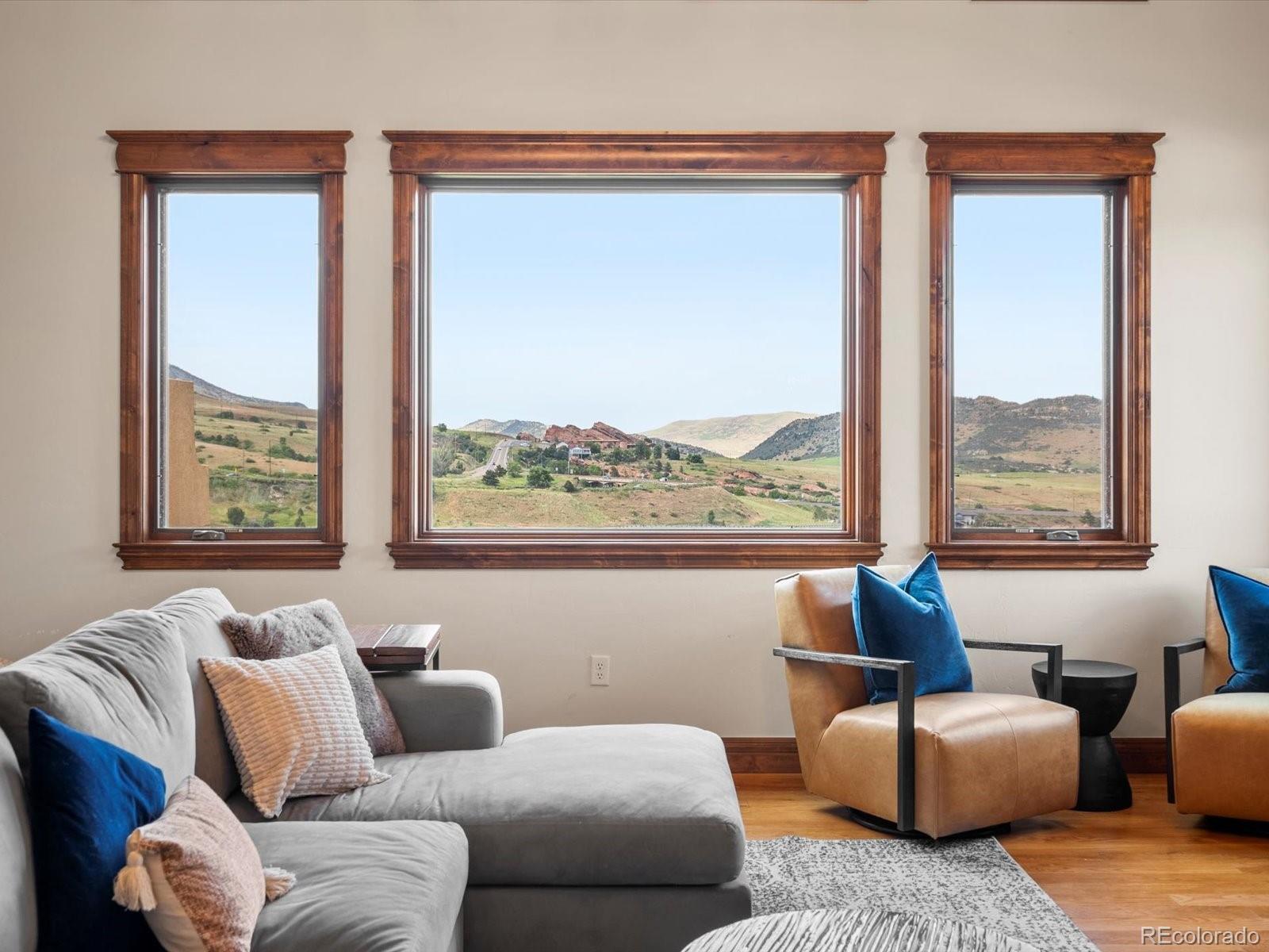 Tucked into a peaceful corner of the coveted Willow Springs North neighborhood, this expansive custom home lives like a ranch home and blends luxurious living with the natural beauty of the Colorado foothills. A short golf cart ride to Red Rocks Country Club and direct access to over 800 acres of private open space for hiking, biking, and horseback riding, this home offers both adventure and retreat. Enter through a private courtyard with a tranquil water feature into a light-filled interior with soaring ceilings, fresh paint, updated lighting, and beautiful wood and tile floors. The heart of the home is an open-concept kitchen and living room with massive windows framing mountain and city views, a brick gas fireplace, and seamless flow to the formal dining room and wet bar. The chef’s kitchen features alder cabinetry, granite counters, walk-in pantry, Sub-Zero fridge, Wolf gas stove, island with extra sink, and eat-in area that opens to a partially covered patio with built-in gas grill and fireplace. Perfect for relaxing sunsets and stunning downtown views. The main-floor primary suite includes a deck walkout, dual vanities, jetted tub, oversized shower, huge walk-in closet, and access to the partially fenced backyard with a waterfall feature and open space for privacy. A large office, laundry room, powder room, additional bedroom with en-suite bath, and mudroom off the heated 4-car garage with EV outlet complete the main level. Upstairs are 2 more bedrooms, each with en-suite baths, walk-in closets, and Juliet balconies, plus a loft with wood beams and views of the rock outcroppings and courtyard. The walk-out lower level features a spacious workout room, rec space, fireplace, wet bar, wine cellar, gym, ¾ bath, storage room, covered patio with hot tub, retractable shades, and TV hookups. Additional highlights: 5 furnaces with room-by-room thermostats, 2 hot water heaters, and whole-house Sonos audio. A rare retreat minutes from modern conveniences.