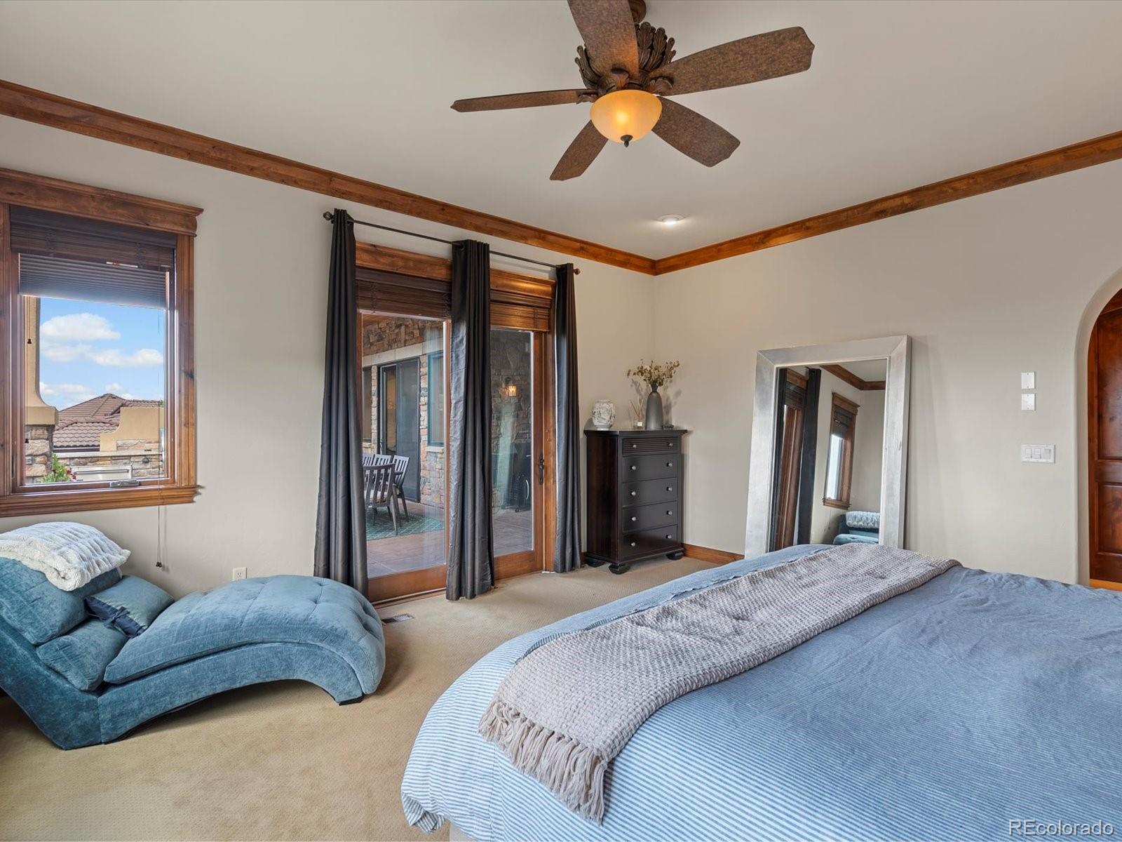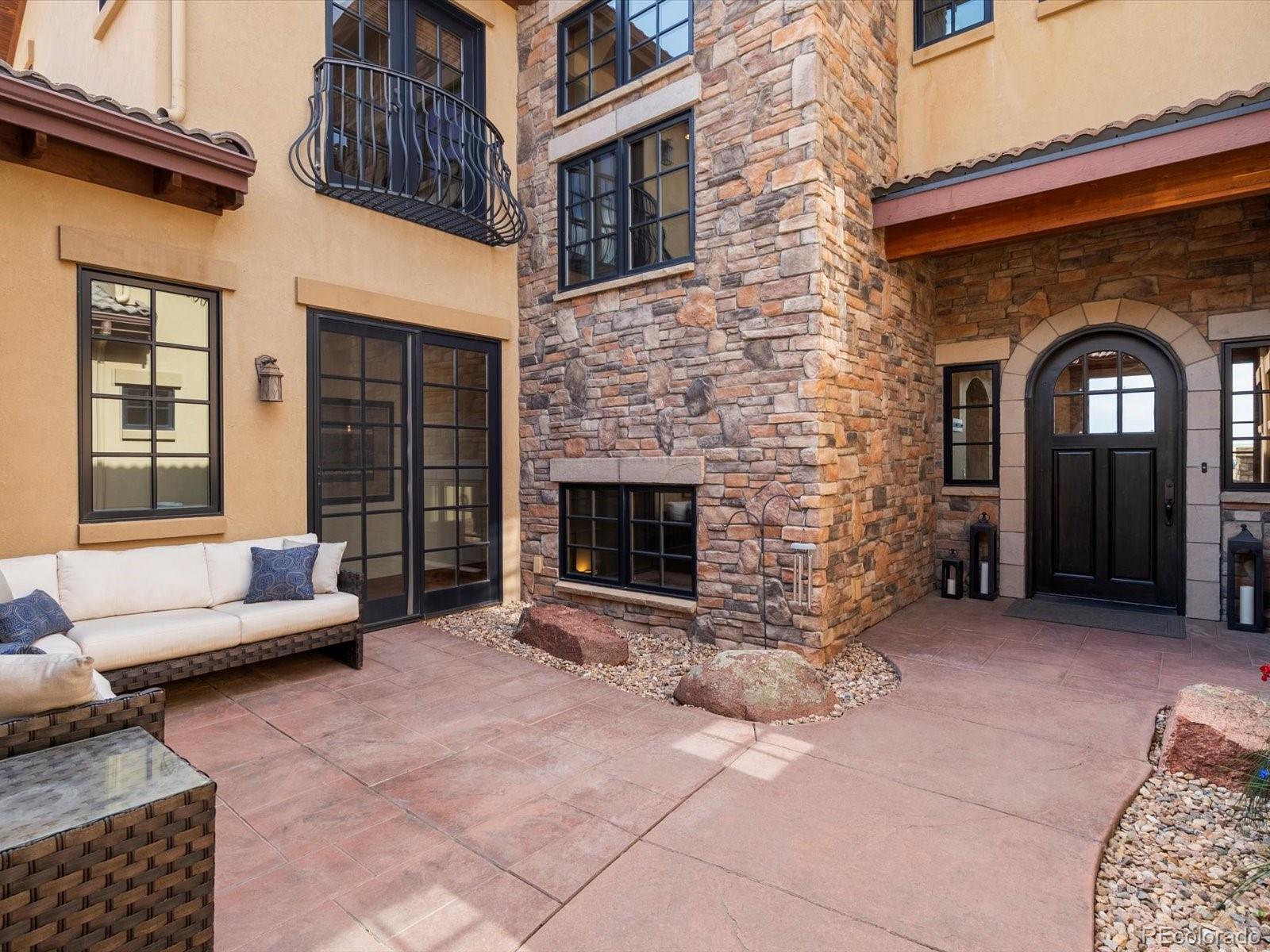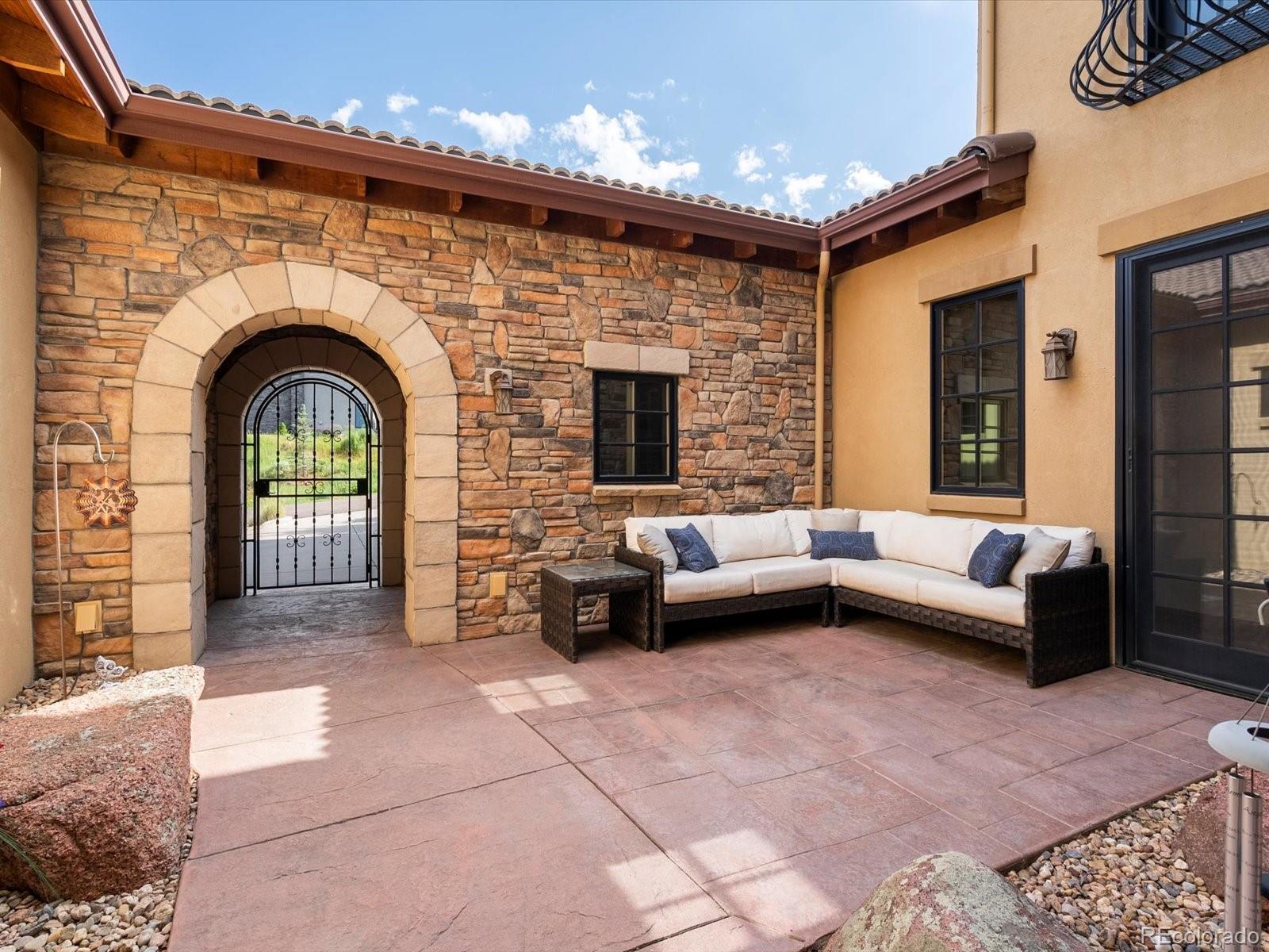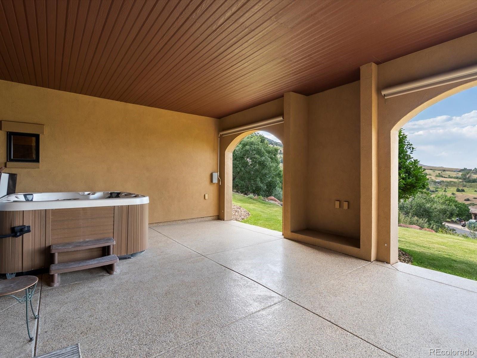 Tucked into a peaceful corner of the coveted Willow Springs North neighborhood, this expansive custom home lives like a ranch home and blends luxurious living with the natural beauty of the Colorado foothills. A short golf cart ride to Red Rocks Country Club and direct access to over 800 acres of private open space for hiking, biking, and horseback riding, this home offers both adventure and retreat. Enter through a private courtyard with a tranquil water feature into a light-filled interior with soaring ceilings, fresh paint, updated lighting, and beautiful wood and tile floors. The heart of the home is an open-concept kitchen and living room with massive windows framing mountain and city views, a brick gas fireplace, and seamless flow to the formal dining room and wet bar. The chef’s kitchen features alder cabinetry, granite counters, walk-in pantry, Sub-Zero fridge, Wolf gas stove, island with extra sink, and eat-in area that opens to a partially covered patio with built-in gas grill and fireplace. Perfect for relaxing sunsets and stunning downtown views. The main-floor primary suite includes a deck walkout, dual vanities, jetted tub, oversized shower, huge walk-in closet, and access to the partially fenced backyard with a waterfall feature and open space for privacy. A large office, laundry room, powder room, additional bedroom with en-suite bath, and mudroom off the heated 4-car garage with EV outlet complete the main level. Upstairs are 2 more bedrooms, each with en-suite baths, walk-in closets, and Juliet balconies, plus a loft with wood beams and views of the rock outcroppings and courtyard. The walk-out lower level features a spacious workout room, rec space, fireplace, wet bar, wine cellar, gym, ¾ bath, storage room, covered patio with hot tub, retractable shades, and TV hookups. Additional highlights: 5 furnaces with room-by-room thermostats, 2 hot water heaters, and whole-house Sonos audio. A rare retreat minutes from modern conveniences.