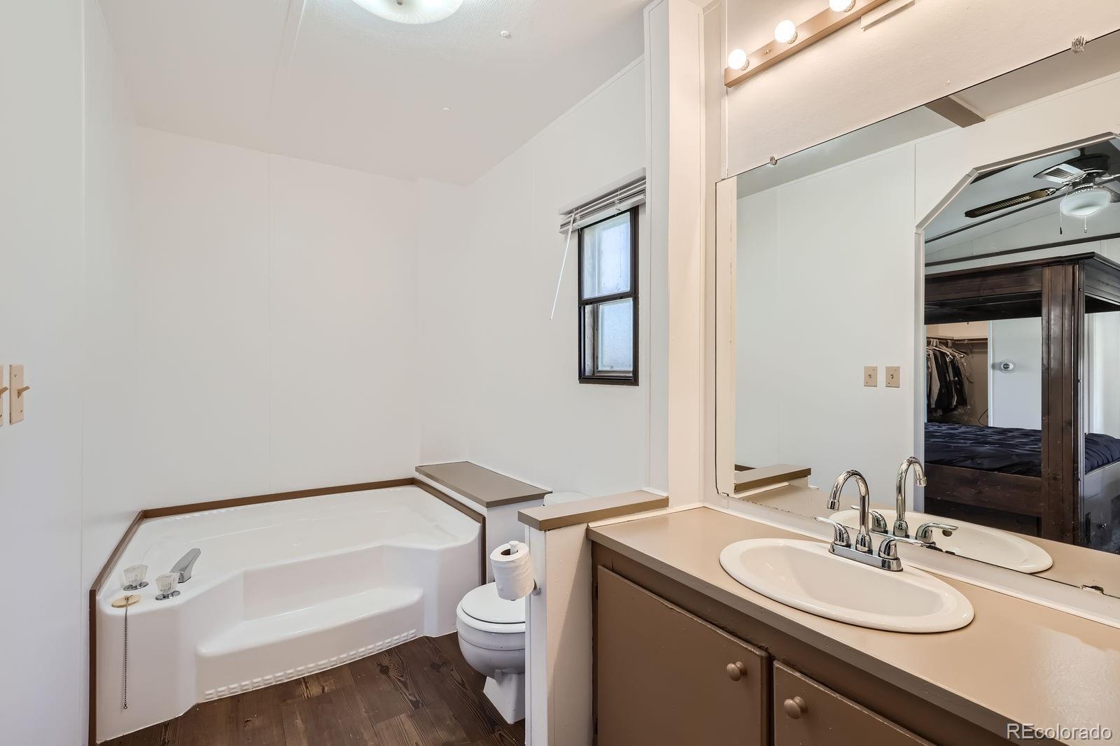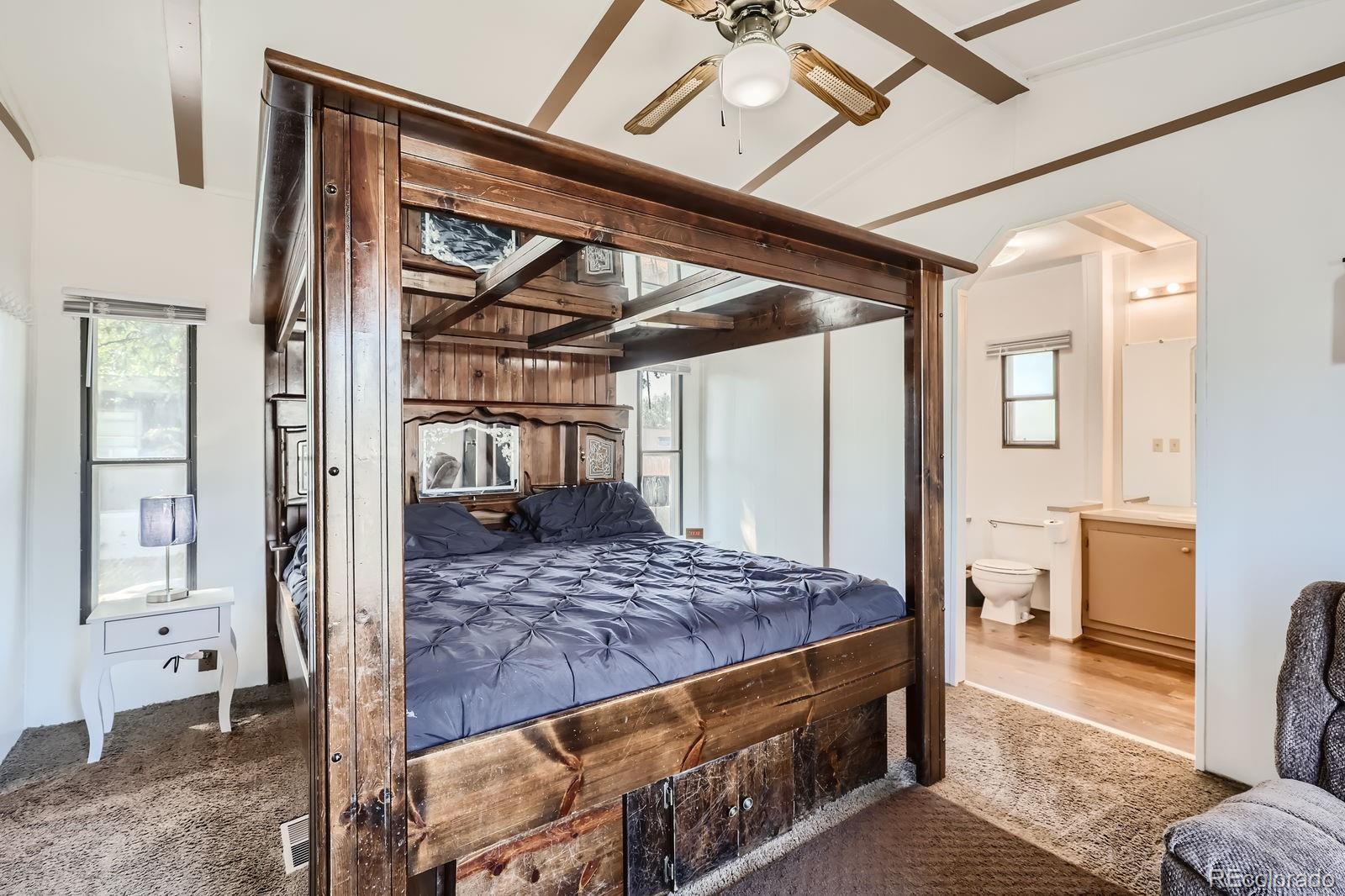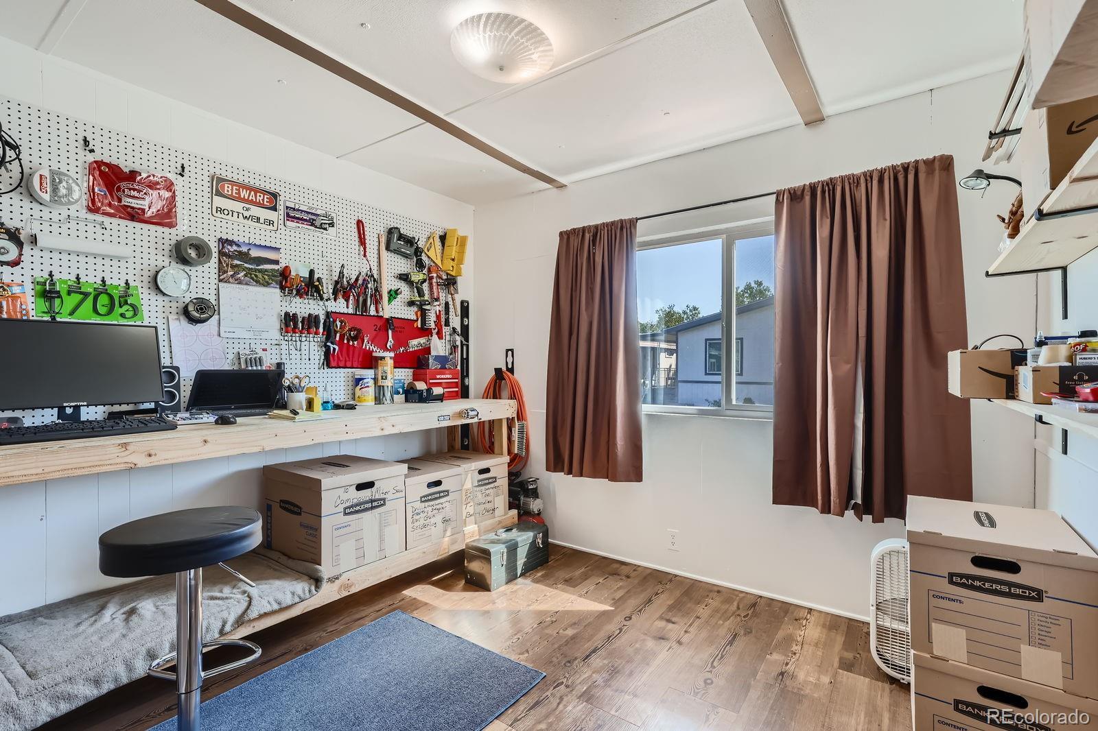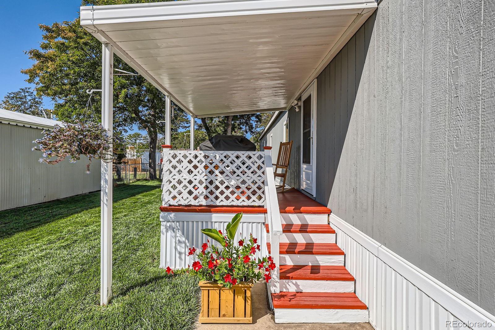 You won’t want to miss this well-maintained 3 bedroom 2 bathroom home located in Hillcrest Village Mobile Home Park. This home offers a new roof, water heater, wood siding and vinyl skirting. Newer furnace, swamp cooler, copper waterlines and heat tape. Enjoy the low maintenance living that this home offers with an airy open layout, with plenty of space. The open-concept kitchen overlooks the living room with ample storage space, eat in kitchen and newer appliances. Relax in the living room or out on the covered from porch. You’ll love how spacious the primary bedroom is with a walk in closet and 5 piece bath with large soaking tub. 2 additional bedrooms can also serve as a home office or flex space, full bathroom and a laundry area with shelving. 2 car tandem garage and storage shed that can be used as a work shop or for storage. Enjoy the easy access to I-70 and I-225, Denver International Airport, Downtown Denver, VA Hospital, Anschutz Medical Campus and Children's Hospital. Minutes from shopping and restaurants. This home is truly a gem. Don't let this one get away. Call today for a private showing.
