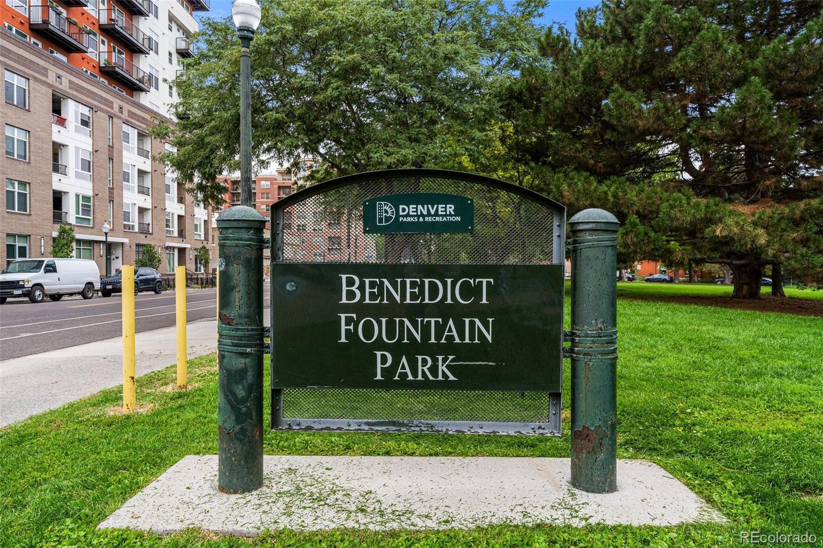 Welcome to this thoughtfully updated 2-bedroom, 2-bath condo that perfectly balances modern style, everyday comfort, and city convenience. Inside, you'll find a spacious open-concept layout featuring in-unit laundry and a bright, functional kitchen with sleek granite countertops, stainless steel appliances, and plenty of room to cook and entertain. The inviting living area opens seamlessly to a private balcony — ideal for morning coffee or evening wind-downs. The primary suite is a peaceful retreat, complete with a generous en suite bathroom and ample closet space. A second bedroom offers versatility, whether you need space for guests, a home office, or your own creative hideaway. Located just steps from Benedict Fountain Park and close to downtown, you'll enjoy the charm and walkability of city living with quick access to I-25 for an easy commute. With additional perks like a fitness center, business lounge, and dedicated parking, this condo truly checks every box.