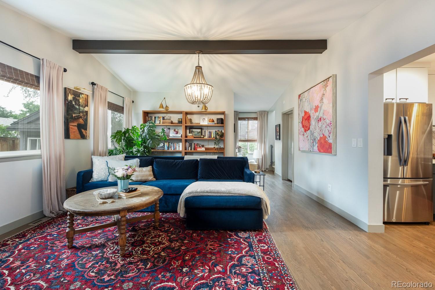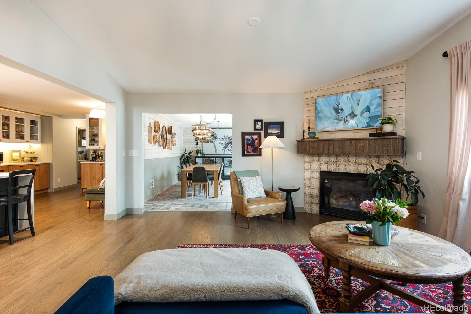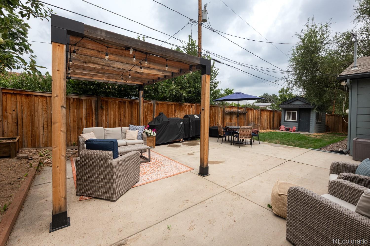 Beautifully updated 5 bedroom, 4 bathroom home in the highly sought-after University Hills neighborhood of Denver. Thoughtfully renovated with professional touches, designer colors, and stylish finishes throughout—this home is pure elegance. The main floor features a spacious primary suite with a 5-piece bath, including dual vanities, a soaking tub, and separate shower. The bright and open kitchen includes an island, marble tile backsplash, stainless steel appliances with gas stove and hood, a separate coffee and wet bar, and generous pantry space. The kitchen flows seamlessly into the vaulted-ceiling living area with a cozy gas fireplace—perfect for everyday living and entertaining. A formal dining room leads out to a private backyard oasis with a pergola covered patio adorned in twinkle lights and ideal for entertaining guests. Also on the main level are a versatile fifth bedroom (currently used as an office) and a very cozy mother-in-law suite, which could easily be converted back to a one car garage if desired. Upstairs, you'll find two large bedrooms, a full bath with an oversized soaking tub, and a generous second living space with access to a sunny balcony ideal for relaxing. Modern systems include two HVAC units and two tankless water heaters, providing year-round comfort and efficiency. All of this in a prime location near top-rated schools, shopping, dining, the High Line Canal Trail and everything Denver has to offer! This is a rare opportunity to own a move-in-ready home with style, space, and flexibility all for under $1M in University Hills.