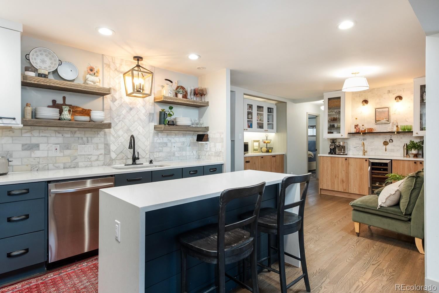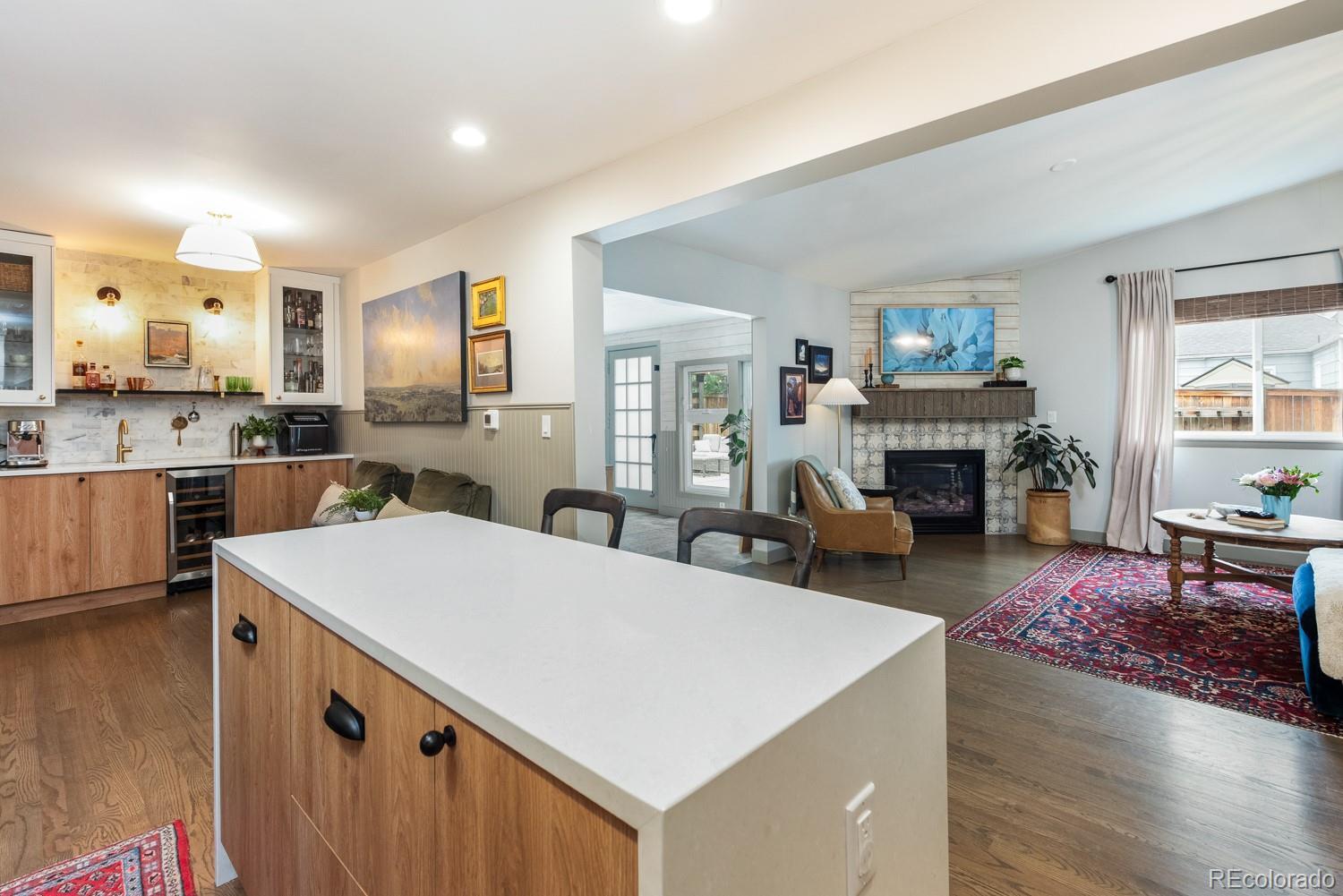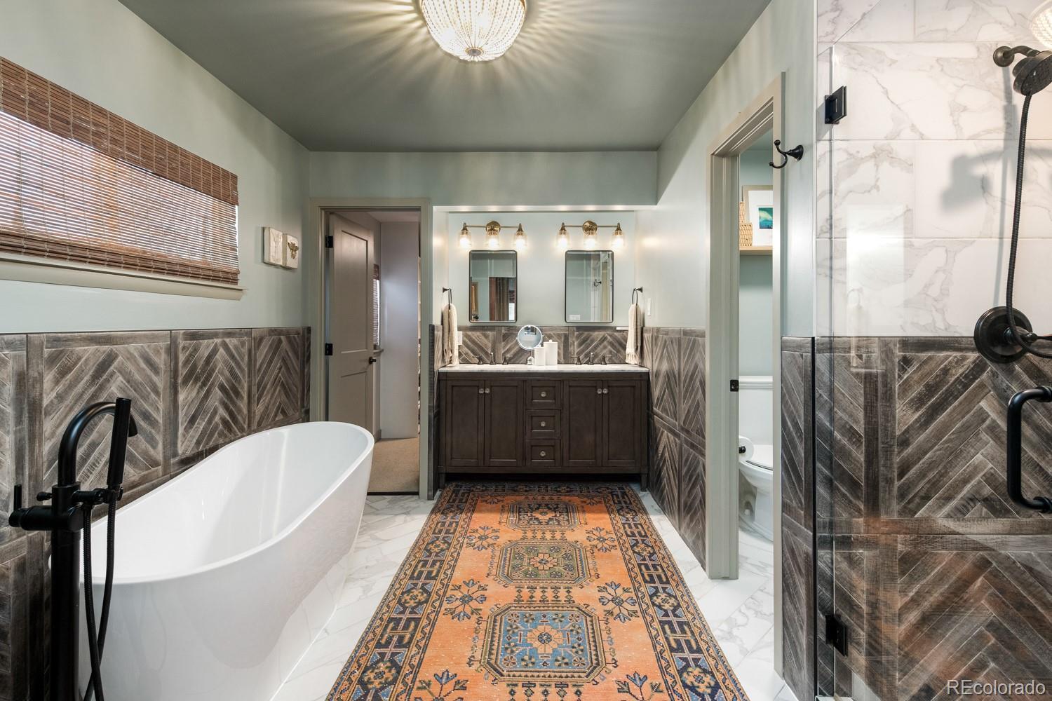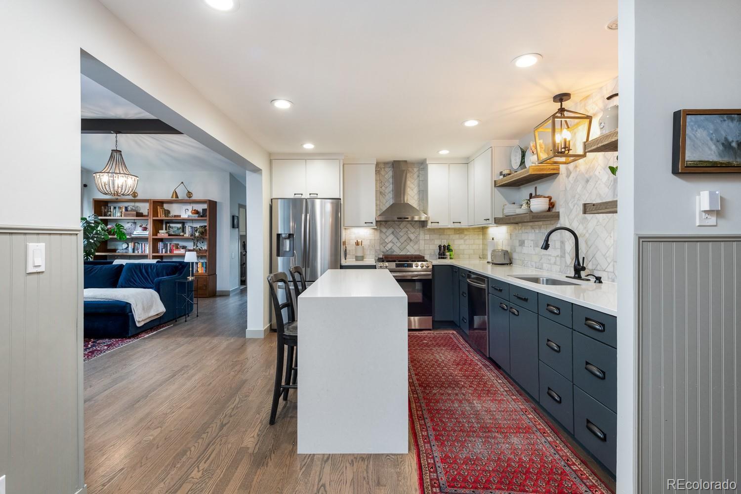 Beautifully updated 5 bedroom, 4 bathroom home in the highly sought-after University Hills neighborhood of Denver. Thoughtfully renovated with professional touches, designer colors, and stylish finishes throughout—this home is pure elegance. The main floor features a spacious primary suite with a 5-piece bath, including dual vanities, a soaking tub, and separate shower. The bright and open kitchen includes an island, marble tile backsplash, stainless steel appliances with gas stove and hood, a separate coffee and wet bar, and generous pantry space. The kitchen flows seamlessly into the vaulted-ceiling living area with a cozy gas fireplace—perfect for everyday living and entertaining. A formal dining room leads out to a private backyard oasis with a pergola covered patio adorned in twinkle lights and ideal for entertaining guests. Also on the main level are a versatile fifth bedroom (currently used as an office) and a very cozy mother-in-law suite, which could easily be converted back to a one car garage if desired. Upstairs, you'll find two large bedrooms, a full bath with an oversized soaking tub, and a generous second living space with access to a sunny balcony ideal for relaxing. Modern systems include two HVAC units and two tankless water heaters, providing year-round comfort and efficiency. All of this in a prime location near top-rated schools, shopping, dining, the High Line Canal Trail and everything Denver has to offer! This is a rare opportunity to own a move-in-ready home with style, space, and flexibility all for under $1M in University Hills.