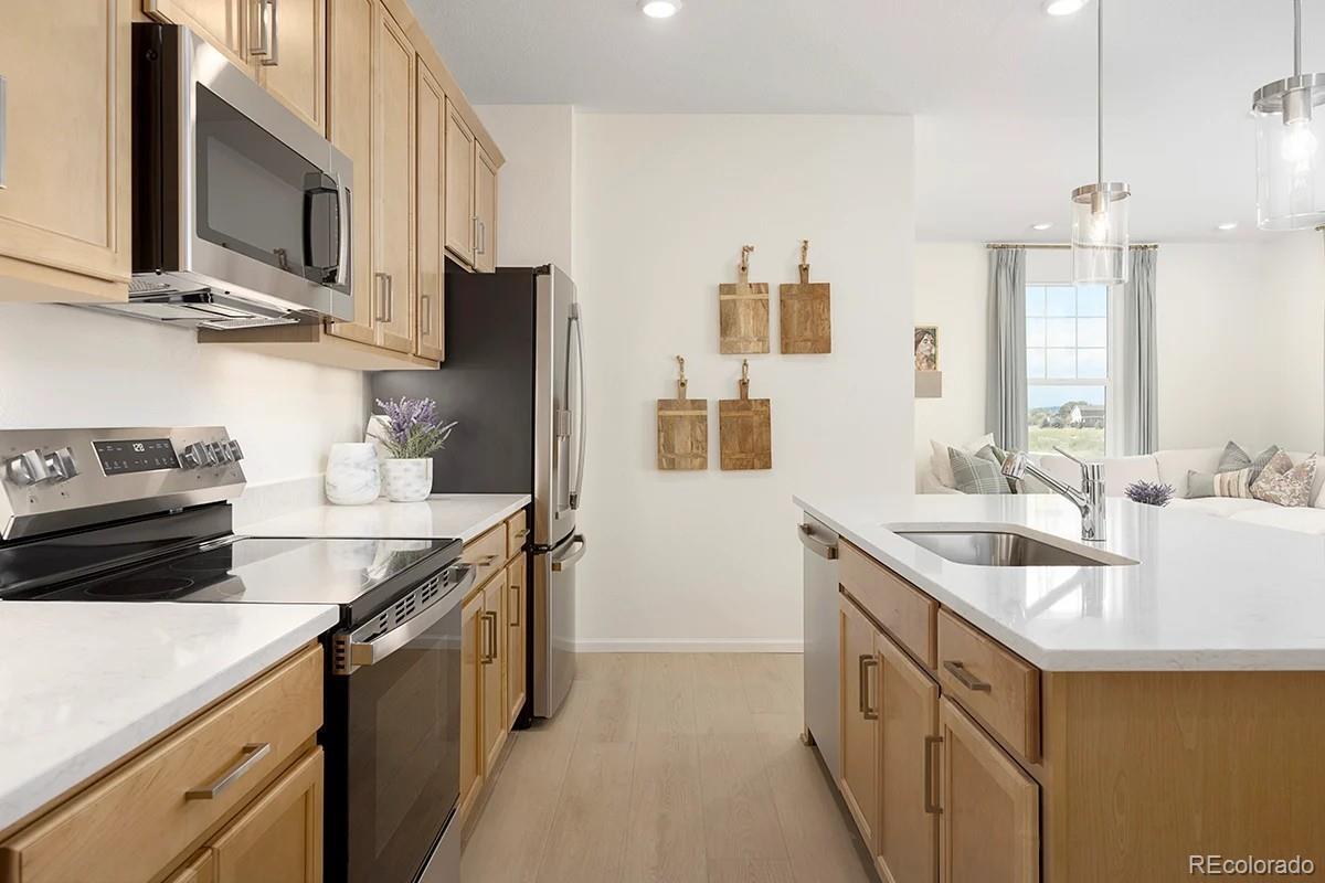 Welcome to your brand new, beautifully designed 3-bedroom, 2.5-bathroom KB Home paired-home in the charming Farmlore community. This thoughtfully crafted home offers the perfect blend of style, comfort, and low-maintenance living with quality finishes and an open floorplan. The spacious kitchen is a true treat, featuring a gas range, wood cabinets, stunning quartz countertops and a large center island that make both cooking and hosting a joy. The open concept layout seamlessly connects the kitchen, dining and living areas, tied together with tons of natural light and luxury vinyl plank flooring that adds warmth and durability throughout the main level. Upstairs, you'll find three bedrooms plus a loft, including a bright and airy primary suite with an en-suite bathroom with a walk-in shower and ample closet space. Outside, your private, fenced side yard is the perfect space for pets, grilling, or simply soaking up the sun. This new construction home offers contemporary design, Energy Star certification, and everyday convenience. Farmlore itself offers more than just beautiful homes; it's a community designed for an enriching lifestyle. You're steps away from parks, shopping, a future recreation center and a reimagined barn that will turn into an event/amenities space for the neighbors. Don’t miss your chance to own this stylish, move-in-ready home. Call or stop by to schedule your tour today! Team Lassen represents the seller/builder as a Transaction Broker.
