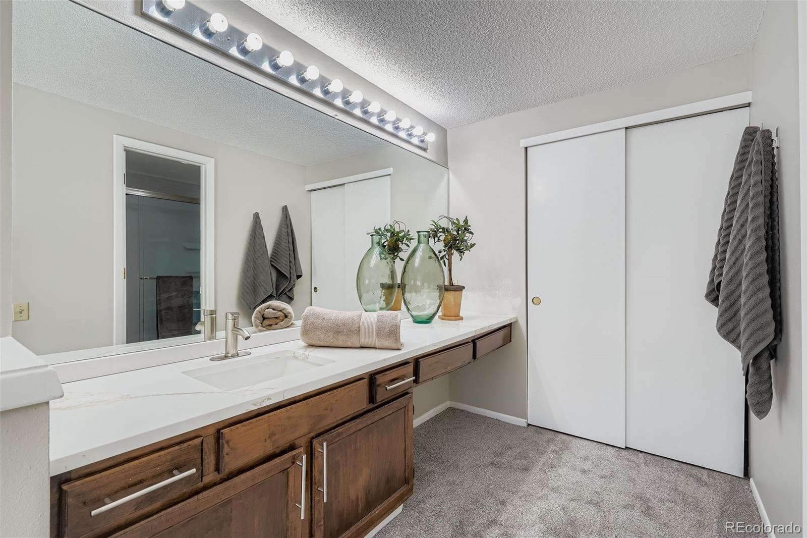 Lovely remodeled home with new interior paint, carpet, flooring & some lighting, quartz countertops, & new family room in basement for extra privacy. You'll enjoy the private fenced patio in the front, facing a beautiful greenbelt. When you enter the living room will wow you with those high vaulted ceilings, open to the formal/casual dining and open kitchen with ample cabinets, ss appliances & new quartz counters. We do have a powder room for guests on main level which also walks out to the 2 car garage with opener. Upstairs you'll find 3 good size bedrooms with new carpet & some new windows. You'll find the main bathroom with newly tiled floor & quartz counters, master suite is huge with a private bath that's very functional with nice size quartz countertop. Northpark is a great neighborhood with pool, hot tub, tennis and park areas. Easy access to I-25 & other main streets where you'll find local stores. Enjoy & please contact us with any questions you may have, your going to love this mature Northpark neighborhood.