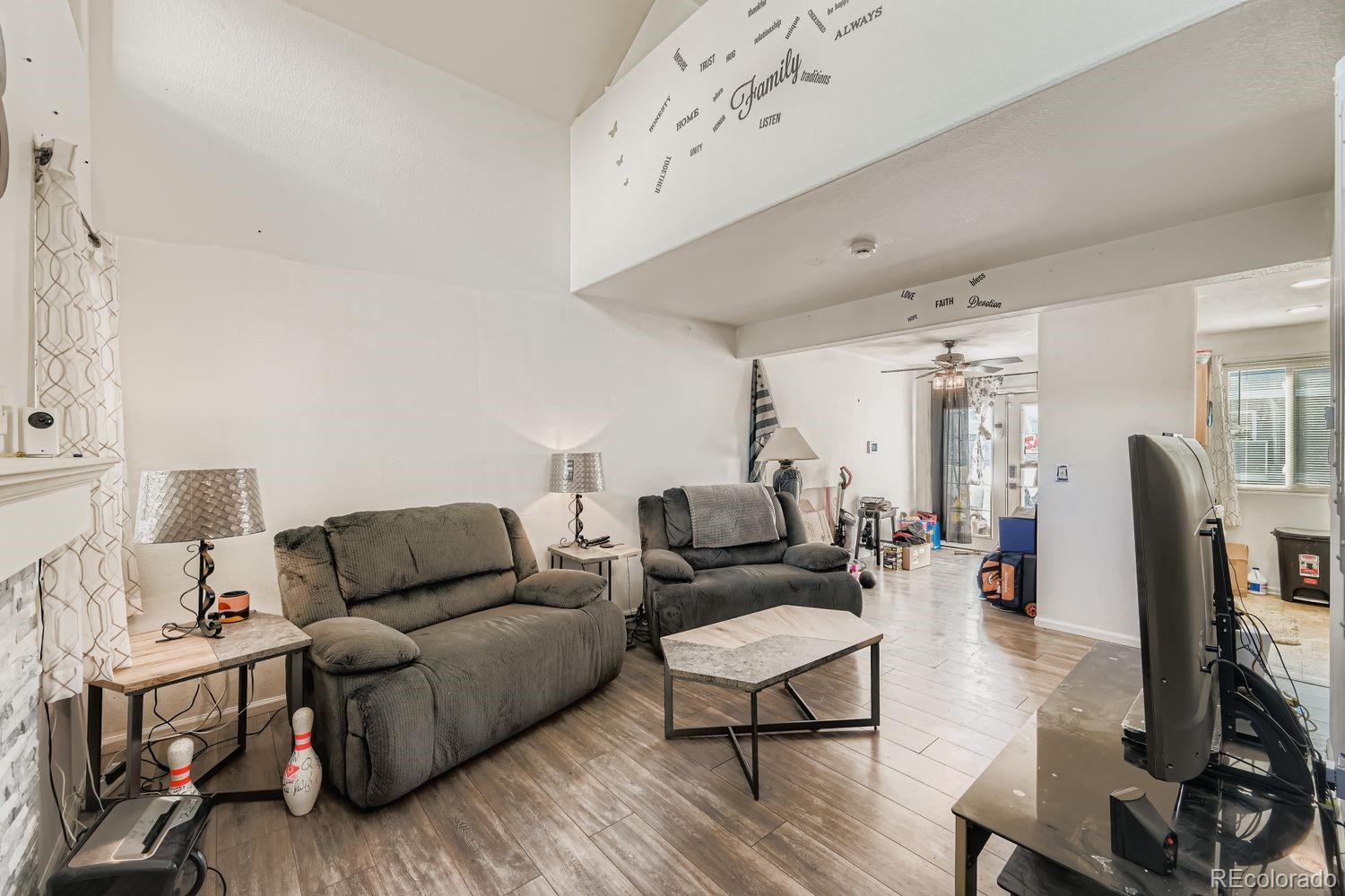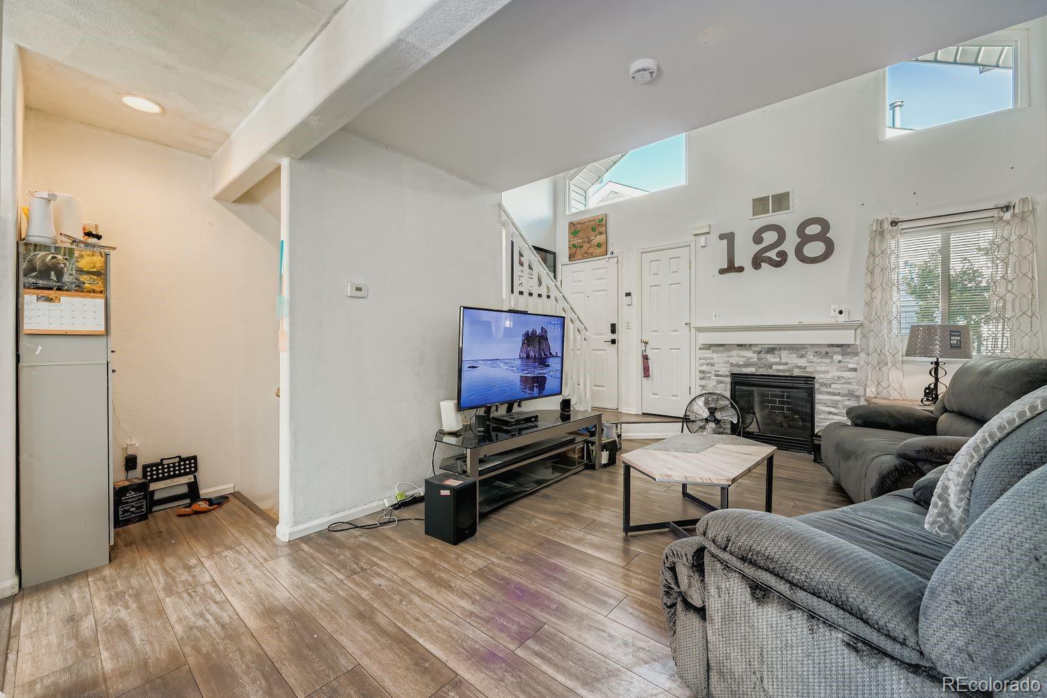 Discover the perfect blend of comfort and convenience in this beautifully maintained 2-bedroom, 2-bath townhome in Aurora. Ideally situated near the recreation center, neighborhood park, and scenic trails, this home offers an inviting lifestyle surrounded by outdoor amenities. Inside, you’ll find an open floor plan with vinyl plank flooring on the main level, a vaulted two-story ceiling, and a cozy gas fireplace in the living room. The kitchen features a bar top for casual dining, while the adjoining dining area connects seamlessly to both the kitchen and living room, creating an open and spacious feel. The upper-level bedroom offers a beautifully remodeled full bath, and the basement includes a large bedroom, a 3/4 bath, and a laundry area with extra room for storage. Enjoy your private balcony and two dedicated parking spaces right behind the unit. With quick access to Cherry Creek Reservoir, major highways, Nine Mile Station, and nearby shopping and dining, this home offers it all. 3.25% FHA loan assumption option available for qualified buyers.