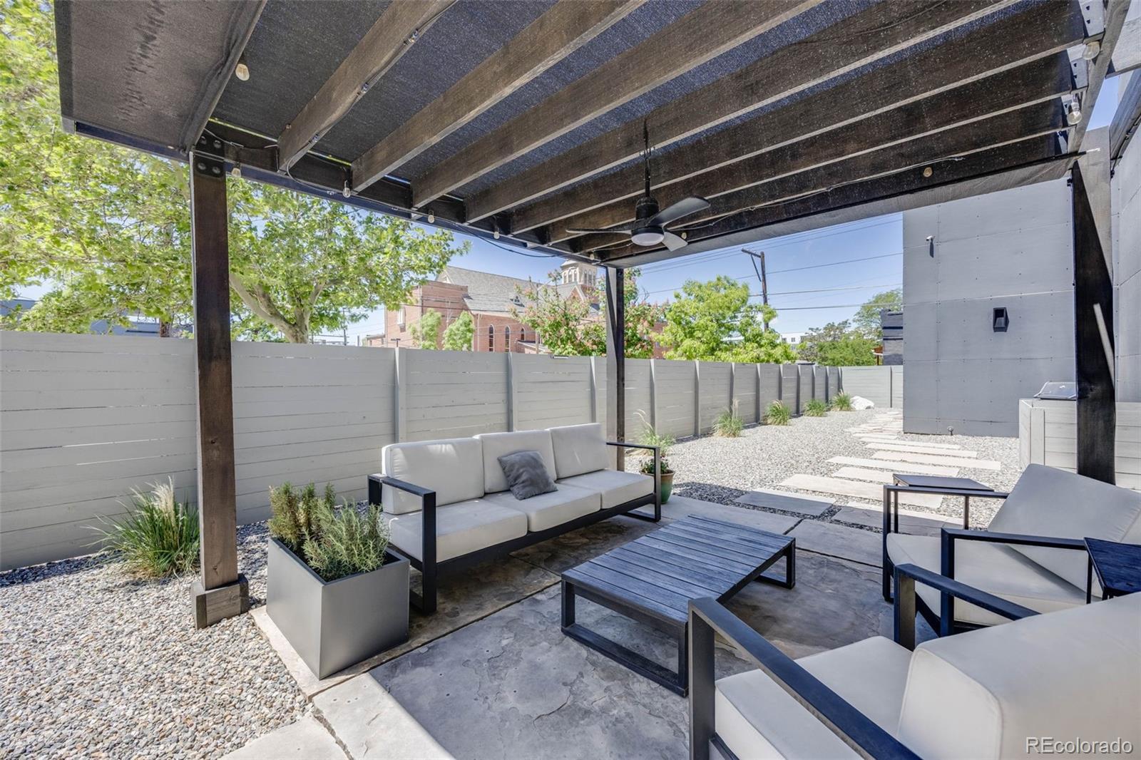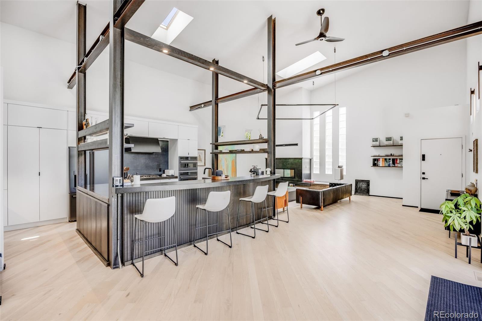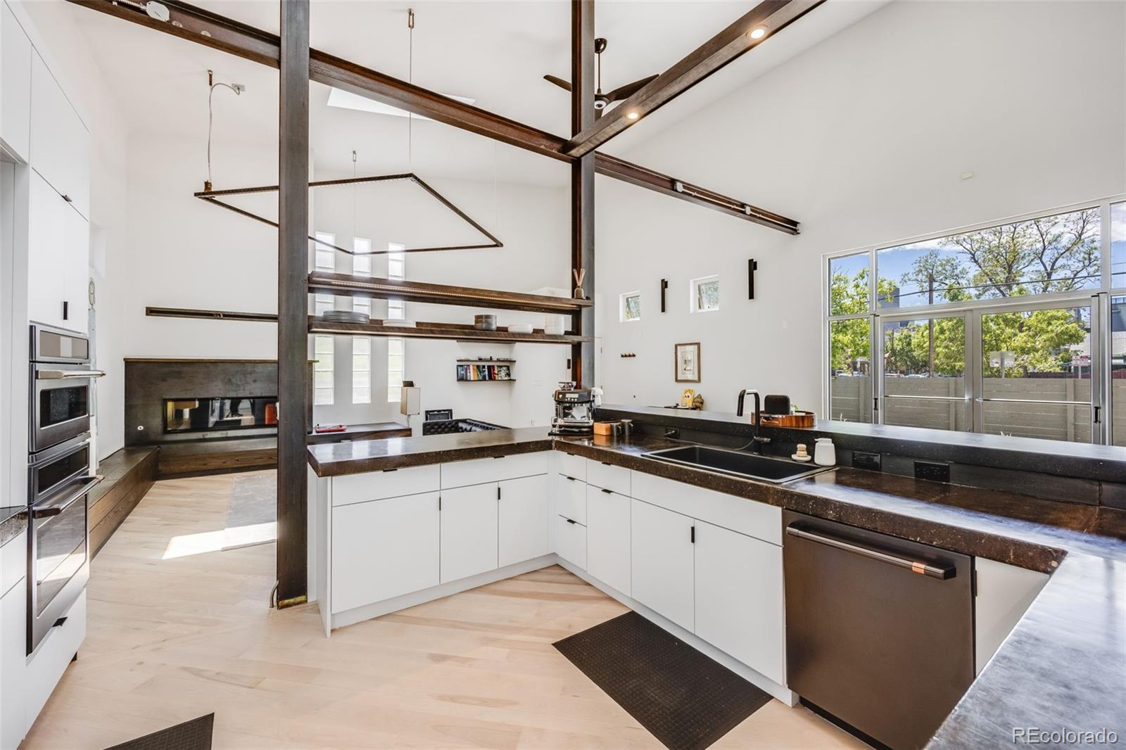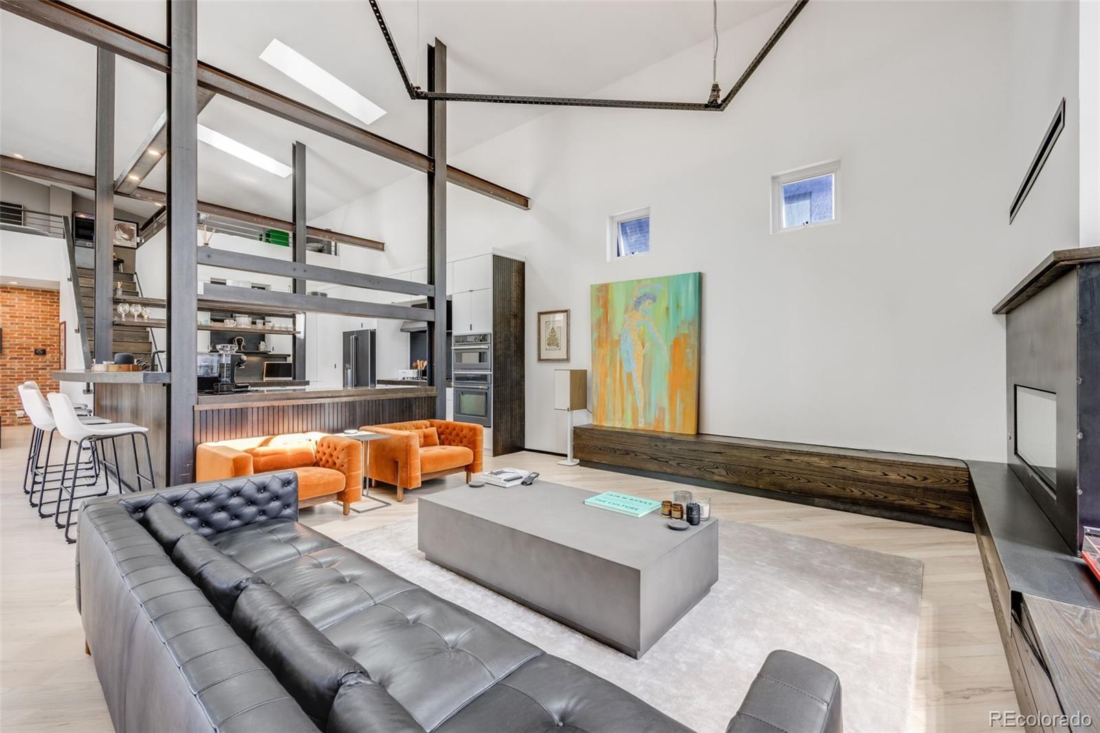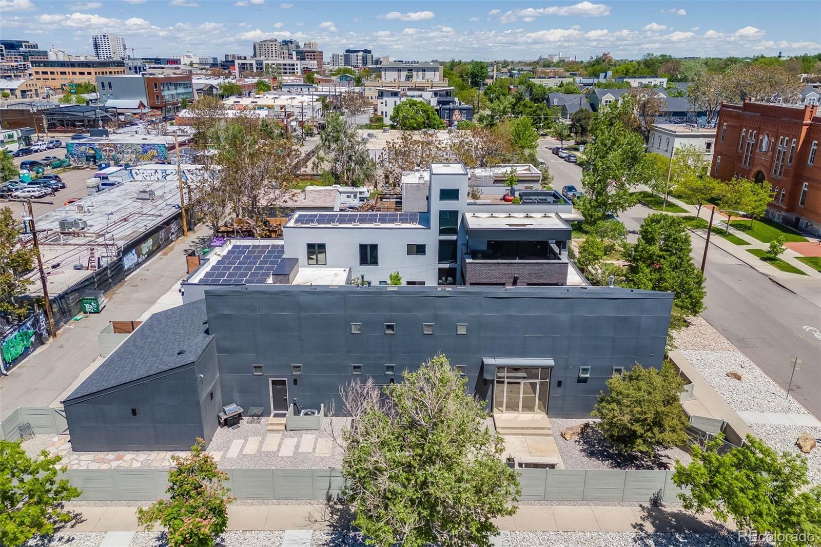 BRUTALIST ARCHITECTURE GEM - Incredible RiNo / Five Points / Curtis Park / Downtown opportunity. 3 bedroom that lives like a 4 bedroom in loft, recently complete remodel on a double corner lot. New cabinetry throughout with Cafe appliances including Advantium microwave/air fryer. New nearly everything: Refrigerator, dishwasher, cooktop with hood, extra deep sink in kitchen and laundry, washer and dryer, furnace, A/C core, tankless water heater, silent gas fireplace, tile and wood flooring, and SO MUCH MORE. New high end smart lighting, new landscaping low maintenance yard including fence, pergola, exterior cement board siding and rare oversized 3-car garage with EV charger. Primary and guest bathrooms have dual shower heads and primary with jetted tub. 20+ foot ceilings with ample natural light from high wall windows and skylights. 3 New smart Big Ass Fans. Insulation R40 ceilings and R30 walls, plus an extra layer of sound dampening Dynamat. Roof replaced in 2023, the home was built with security and safety in mind using steel reinforced doors and metal security doors and outside windows with custom steel covers inside. UNIQUE AND RARE FIND NOT TO BE MISSED!