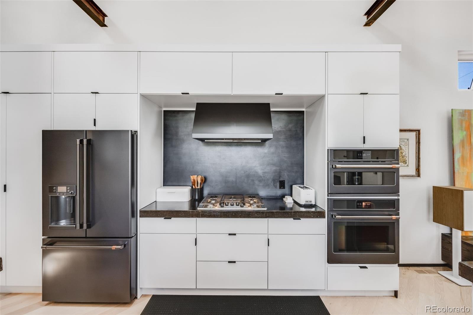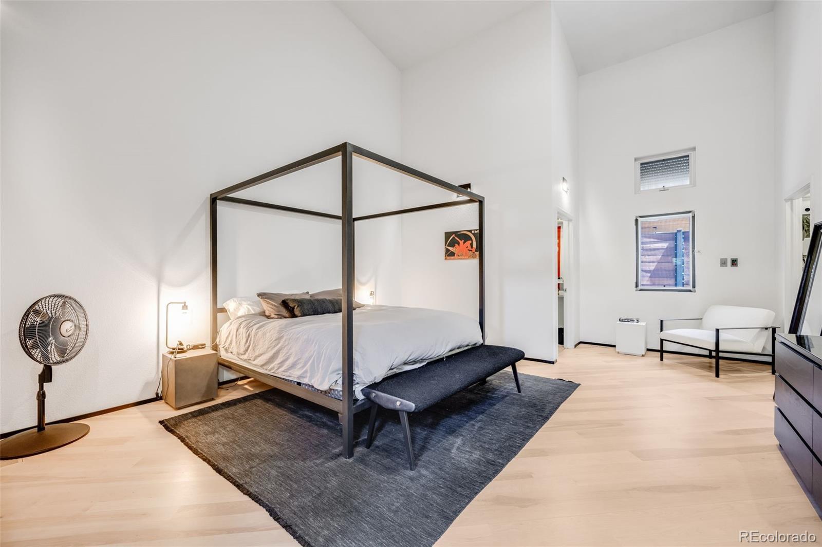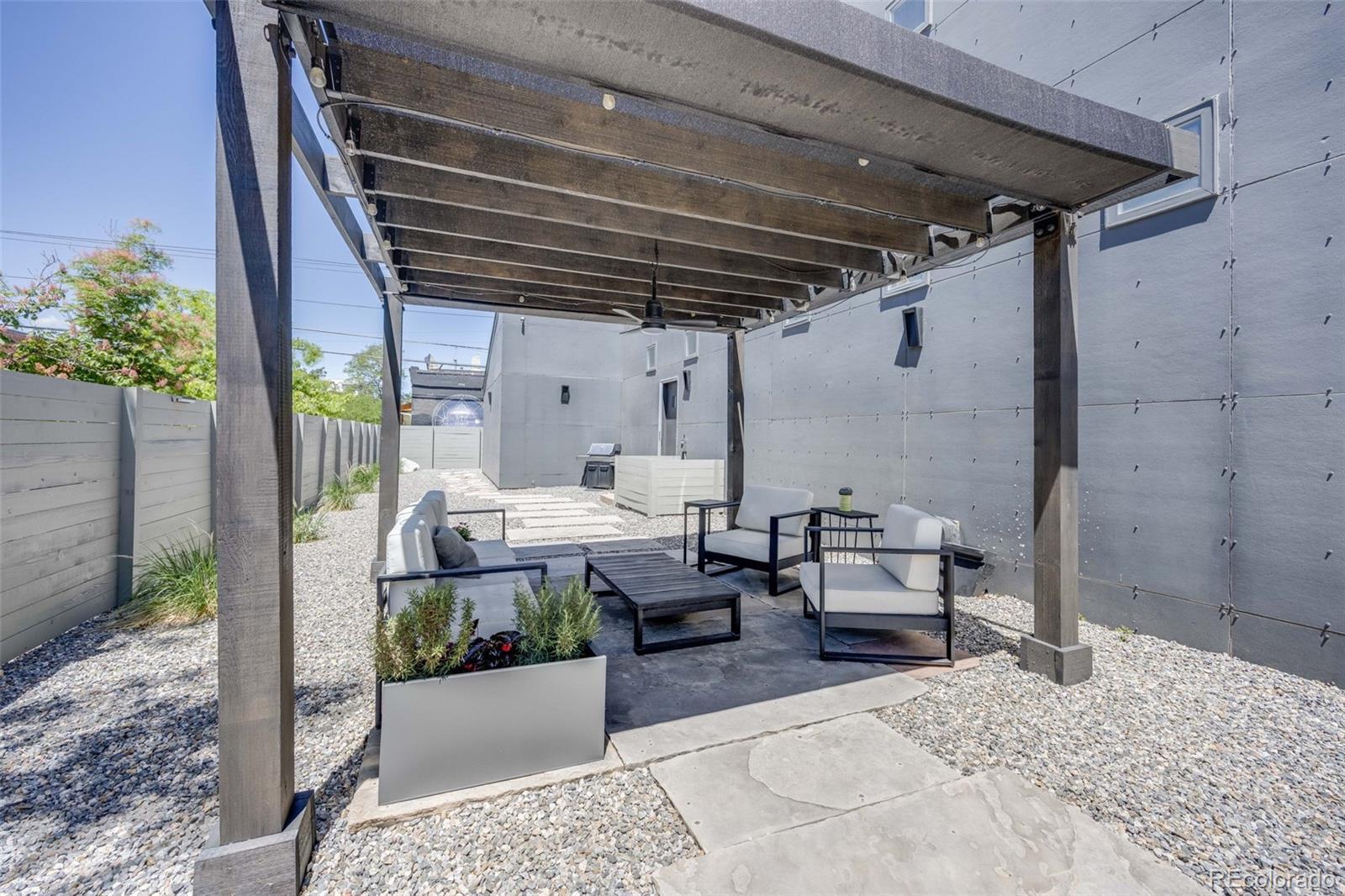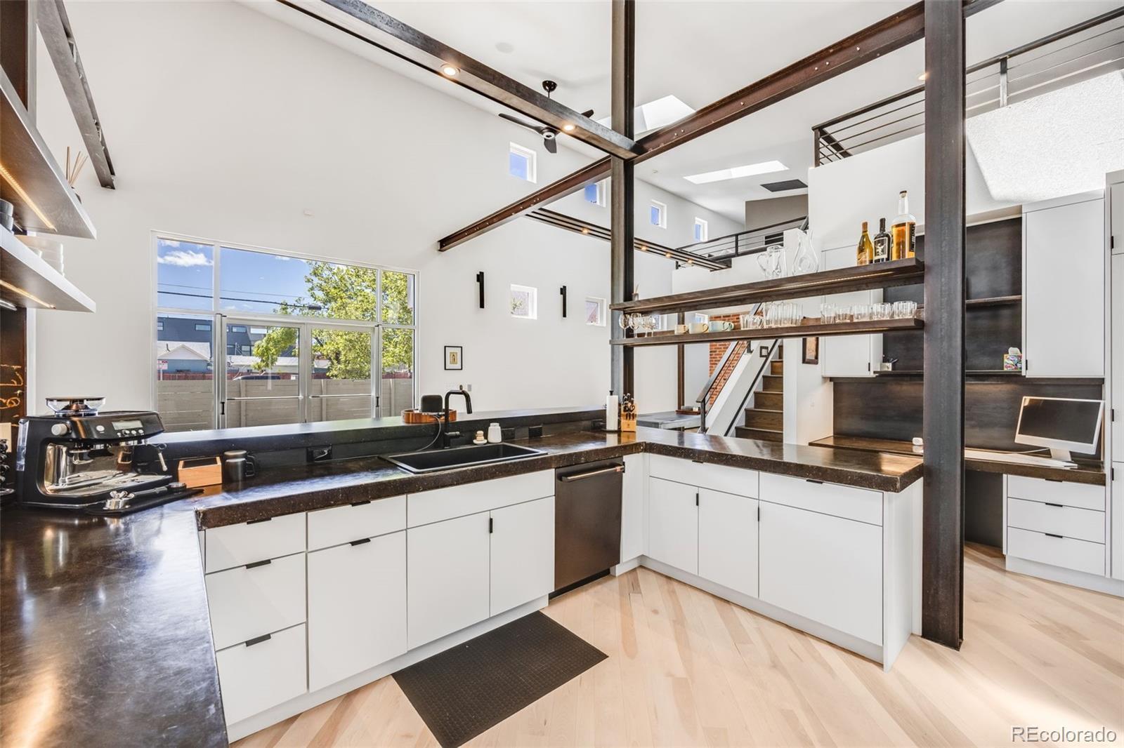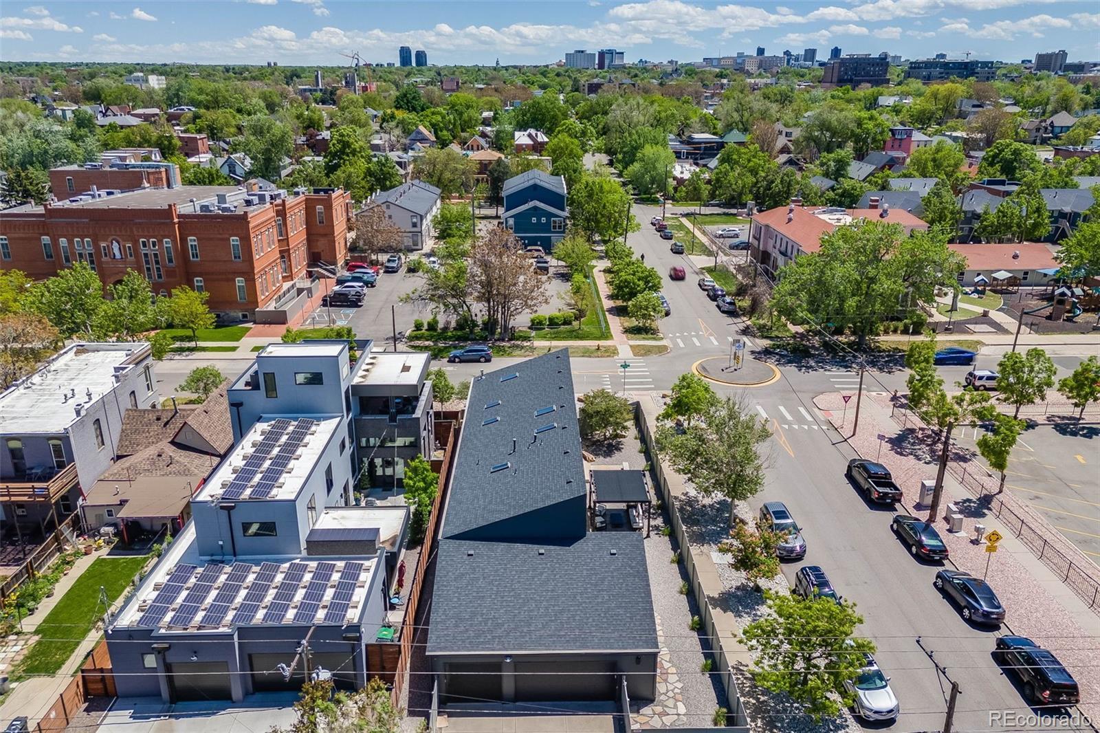 BRUTALIST ARCHITECTURE GEM - Incredible RiNo / Five Points / Curtis Park / Downtown opportunity. 3 bedroom that lives like a 4 bedroom in loft, recently complete remodel on a double corner lot. New cabinetry throughout with Cafe appliances including Advantium microwave/air fryer. New nearly everything: Refrigerator, dishwasher, cooktop with hood, extra deep sink in kitchen and laundry, washer and dryer, furnace, A/C core, tankless water heater, silent gas fireplace, tile and wood flooring, and SO MUCH MORE. New high end smart lighting, new landscaping low maintenance yard including fence, pergola, exterior cement board siding and rare oversized 3-car garage with EV charger. Primary and guest bathrooms have dual shower heads and primary with jetted tub. 20+ foot ceilings with ample natural light from high wall windows and skylights. 3 New smart Big Ass Fans. Insulation R40 ceilings and R30 walls, plus an extra layer of sound dampening Dynamat. Roof replaced in 2023, the home was built with security and safety in mind using steel reinforced doors and metal security doors and outside windows with custom steel covers inside. UNIQUE AND RARE FIND NOT TO BE MISSED!